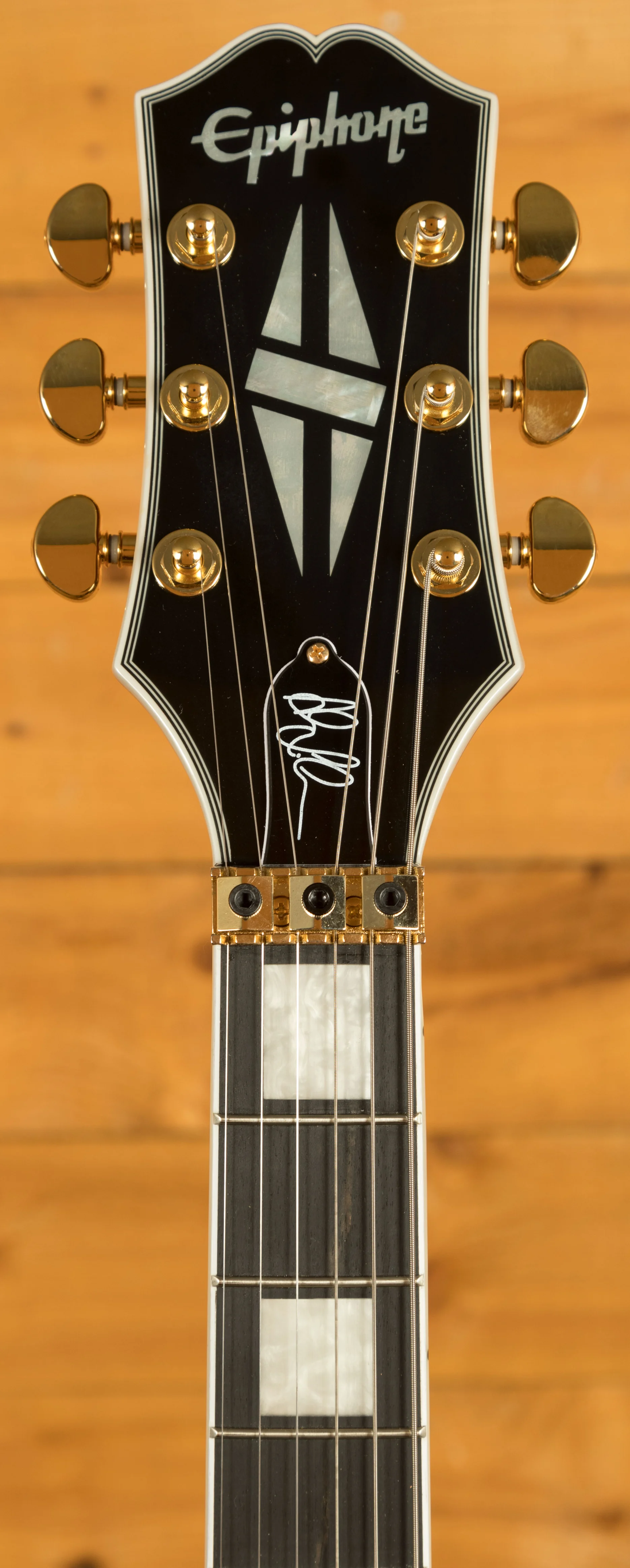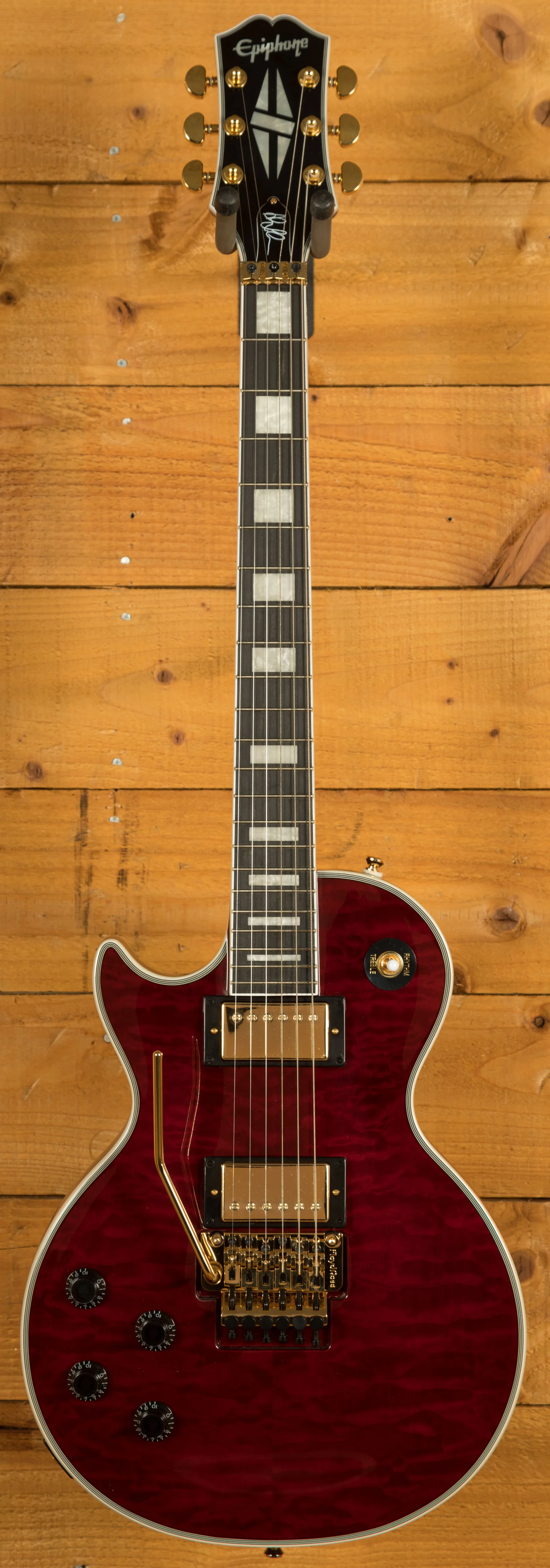 The Alex Lifeson Les Paul Custom Axcess Standard is loaded with a powerful Epiphone Ceramic Pro neck humbucker and an Epiphone Pro Bucker 3 bridge humbucker. This loadout is extremely punchy whilst remaining dynamic and touch sensitive. It even features push/pull coil splitting on the volume control. It is finished off with a 1000 series Floyd Rose Tremolo and a set of Grover Rotomatic tuners.