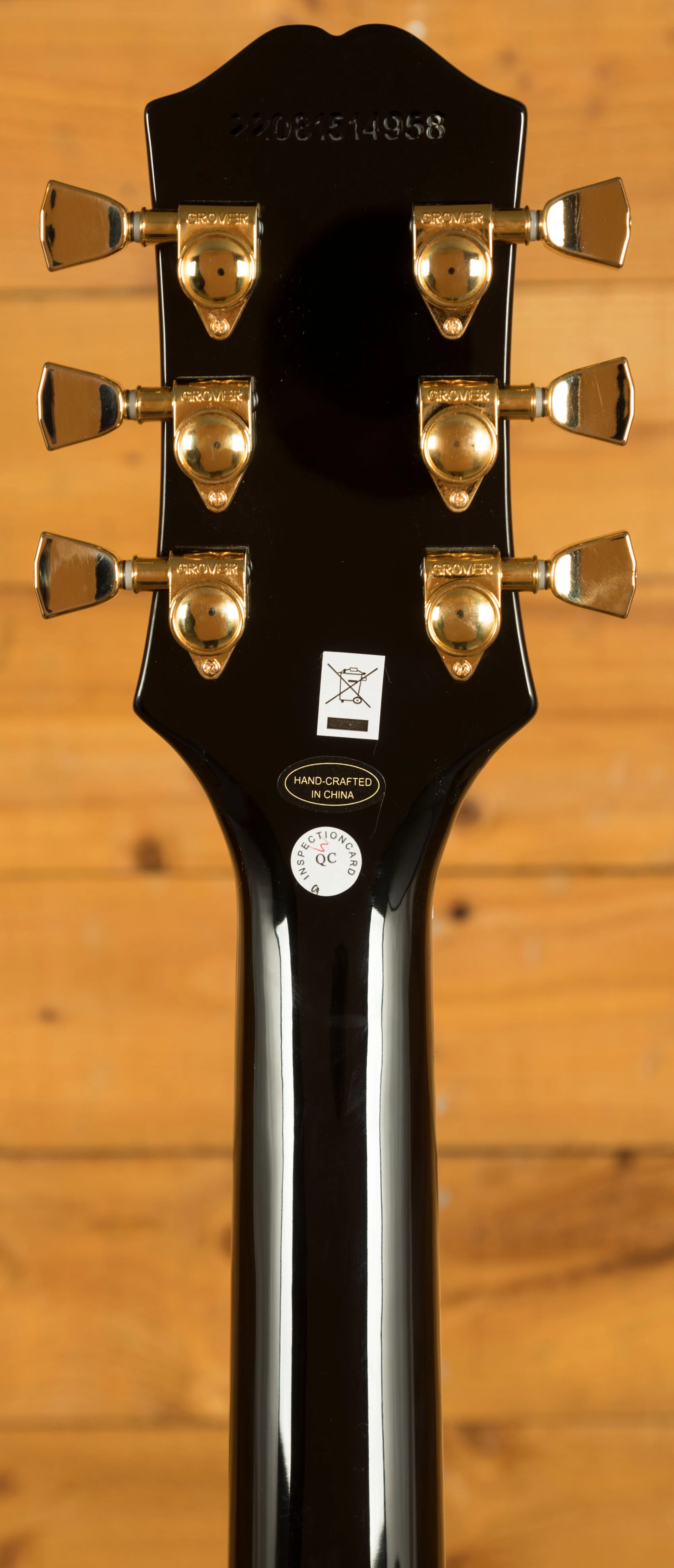 Prepare to be mesmerised by the captivating aesthetics of the Epiphone B.B. King Lucille. Adorned with stunning gold hardware, this guitar exudes elegance and sophistication. The inclusion of Grover Rotomatic tuners ensures impeccable tuning stability, allowing you to focus on your playing without any distractions. The Graph Tech nut guarantees optimal sustain and resonance, while the luscious ebony fretboard, embellished with pearloid block inlays, provides a smooth playing experience that is a joy to behold.
