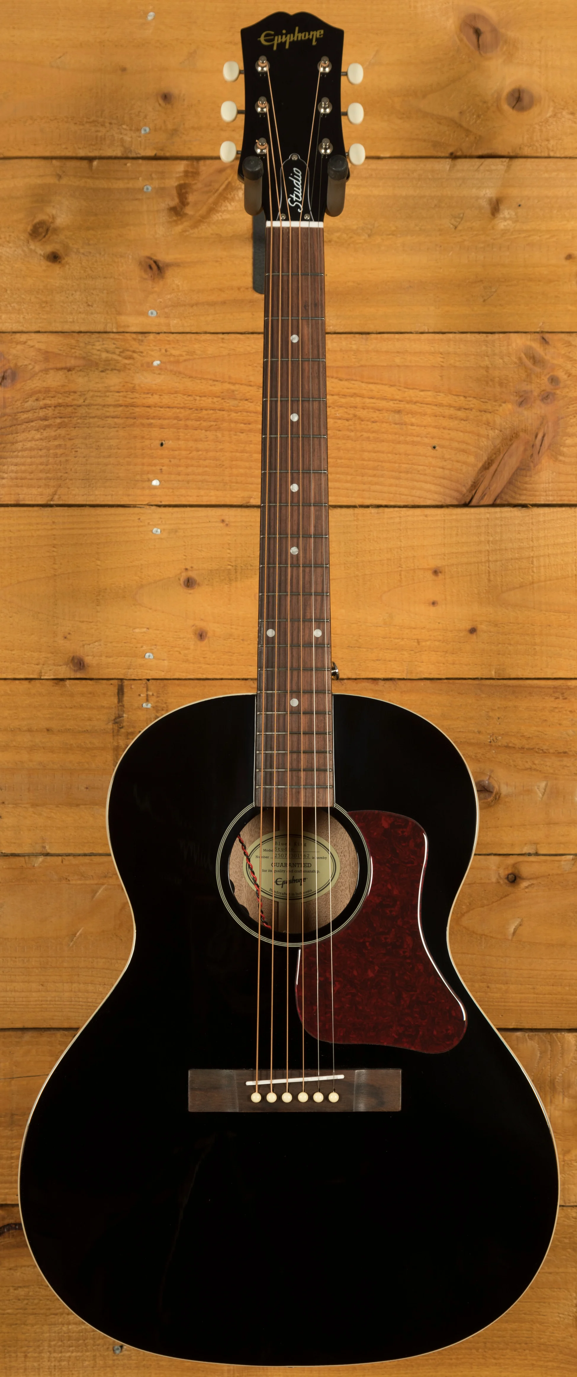 The Blues King Studio also includes thoughtful vintage inspired touches that help capture the charm of early acoustic designs. It features an L00 shaped dark tortoiseshell pickguard, classic three on a plate tuners with ivory style buttons, and a sixties Kalamazoo style headstock finished with a gold Epiphone logo. These details round out the guitar’s throwback character and give it a timeless look that feels right at home in any blues or folk setting.