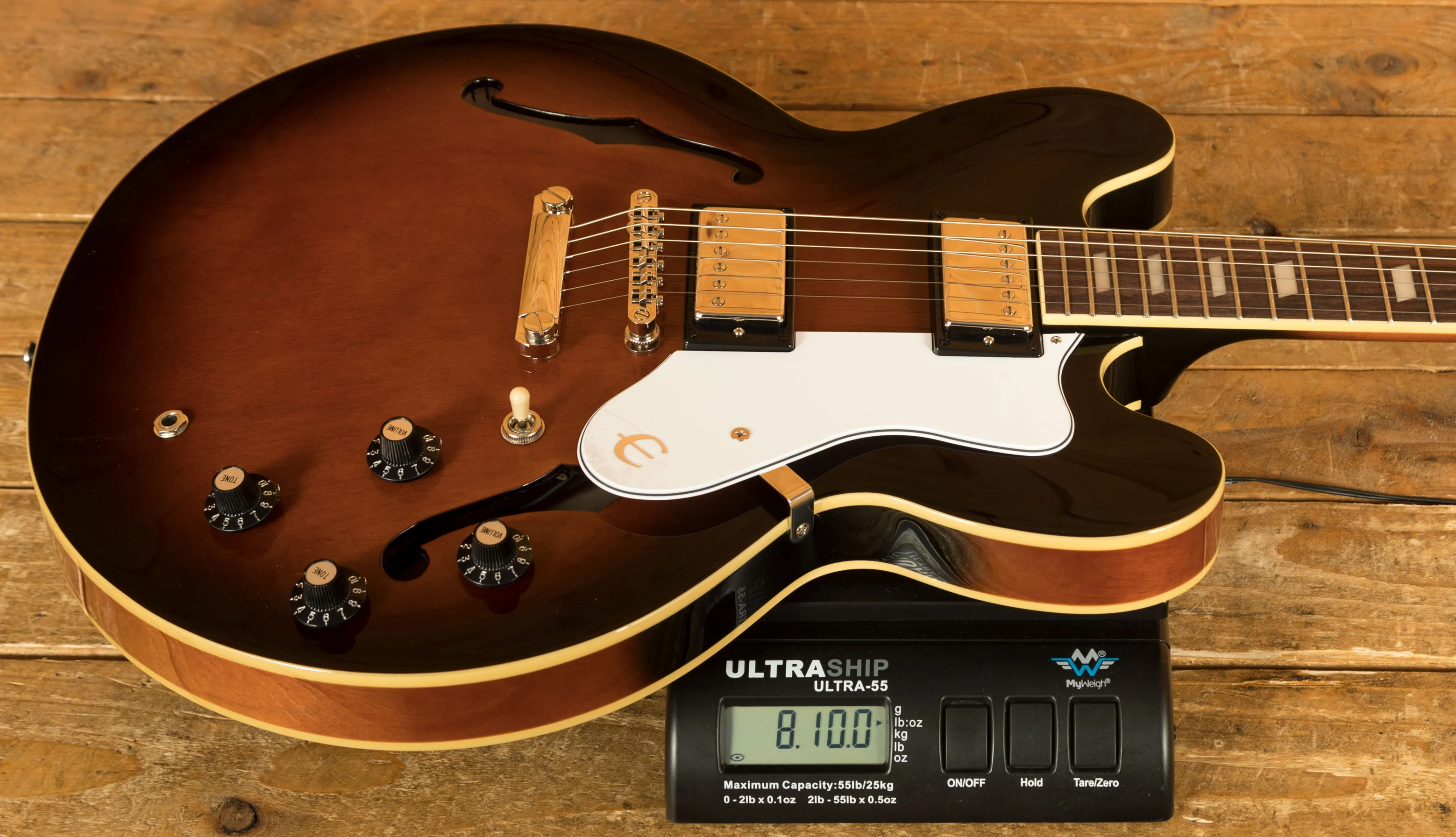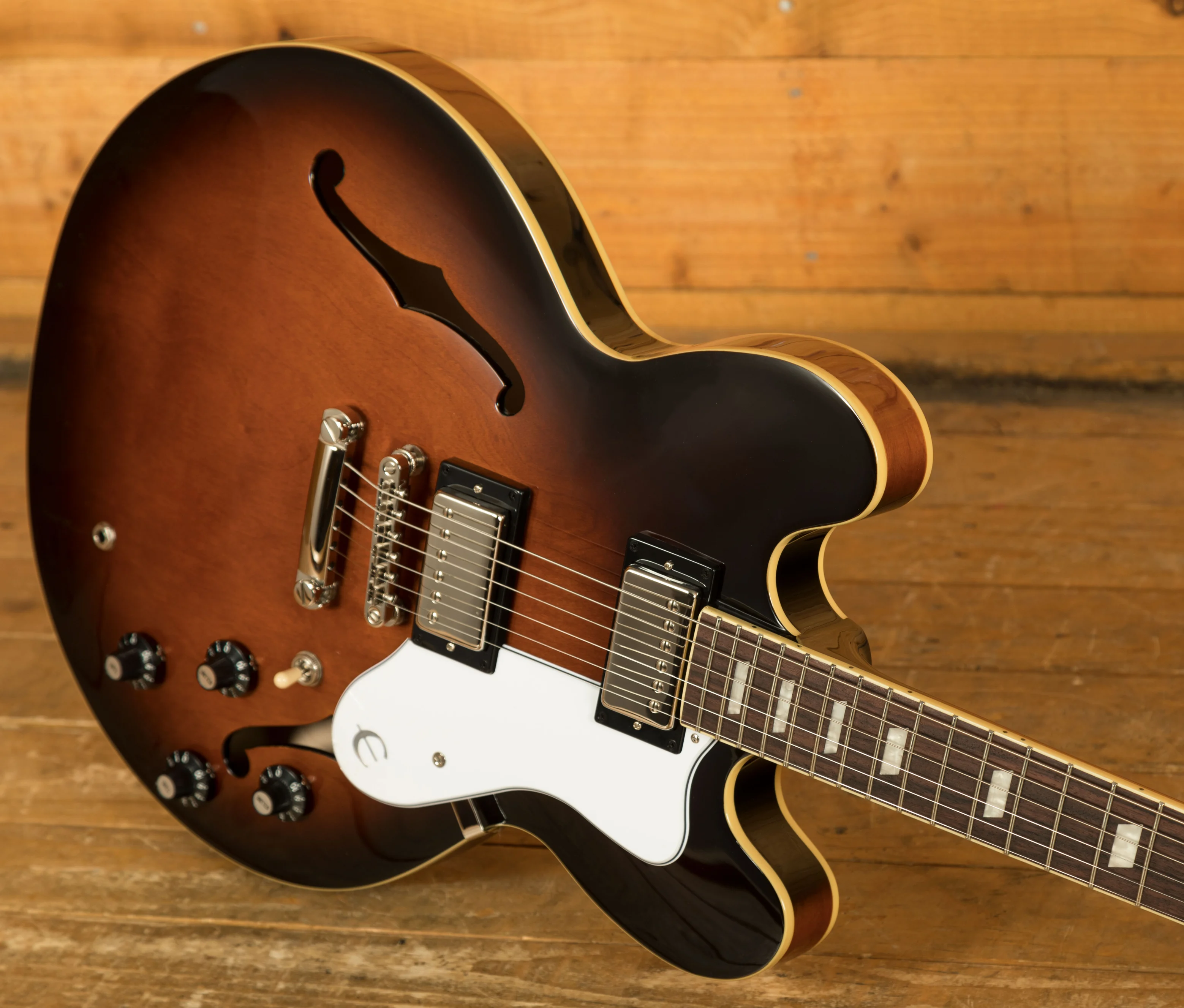 The Bonehead Riviera model features a 5-ply maple body with a solid maple centerblock, which helps to enhance the guitars sustain and reduce any unwanted feedback. Much like Boneheads 1984 model, this guitar features a Dark Tobacco Burst finish which looks super slick and classy. It also features cream top and back binding, which are a great smaller detail.