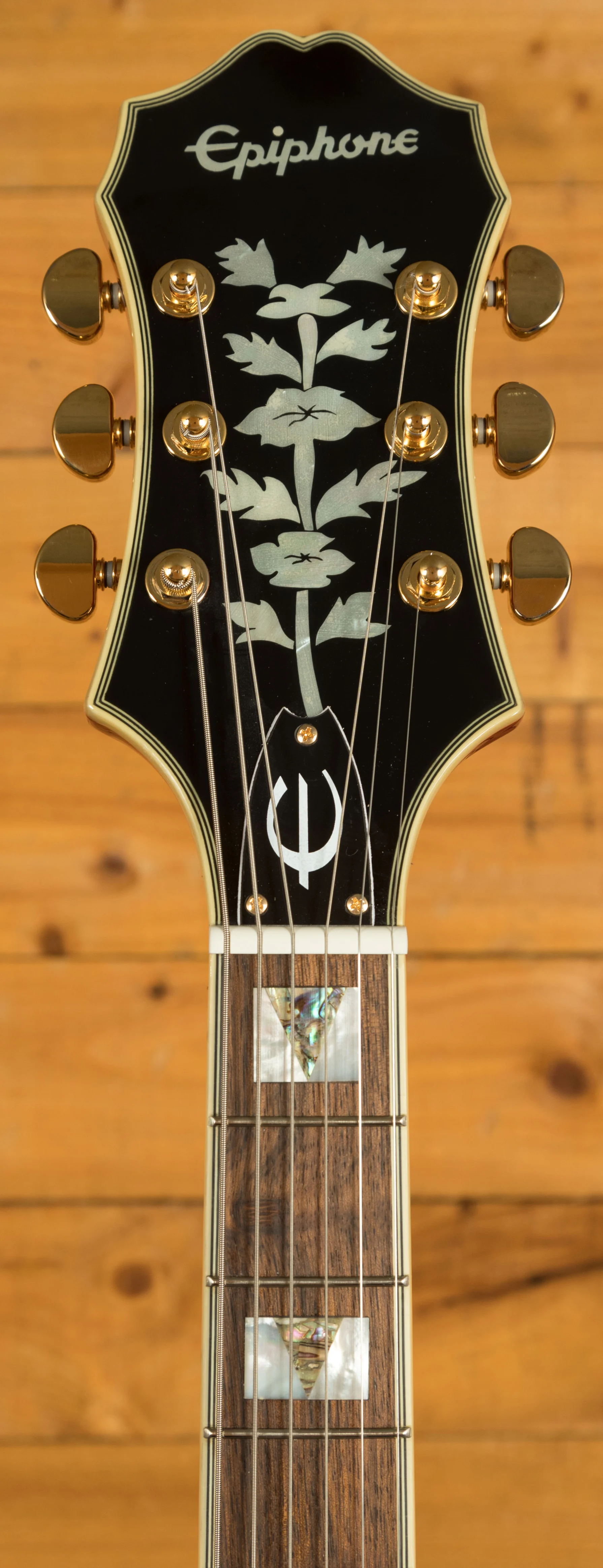 The Epiphone Broadway is a true work of art, with fine appointments that elevate its elegance. Delicate mother-of-pearl and abalone fretboard and headstock inlays catch the light, exuding a sense of understated luxury. From the moment you lay your hands on the smooth fretboard to the time you admire the intricate detailing on the headstock, you'll feel the craftsmanship and passion that went into creating this masterpiece.