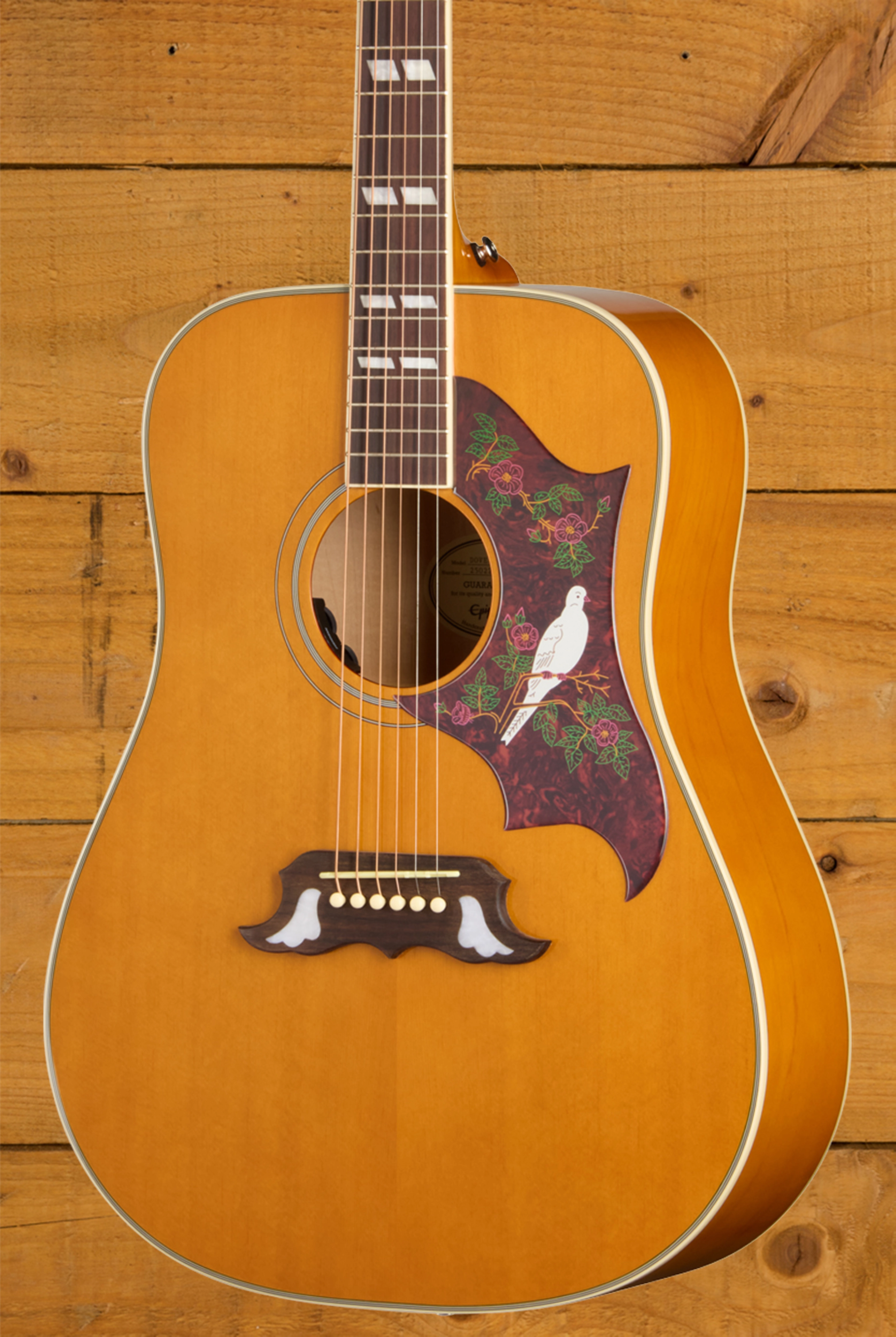 The Epiphone Dove Studio in Natural brings a much loved Gibson acoustic design to players who want classic style and a bold, clear voice at an accessible price. As part of the new Epiphone Studio Acoustic Collection, it takes inspiration from the original Gibson Dove, a sixties square shouldered dreadnought known for its crisp tone and strong midrange presence.