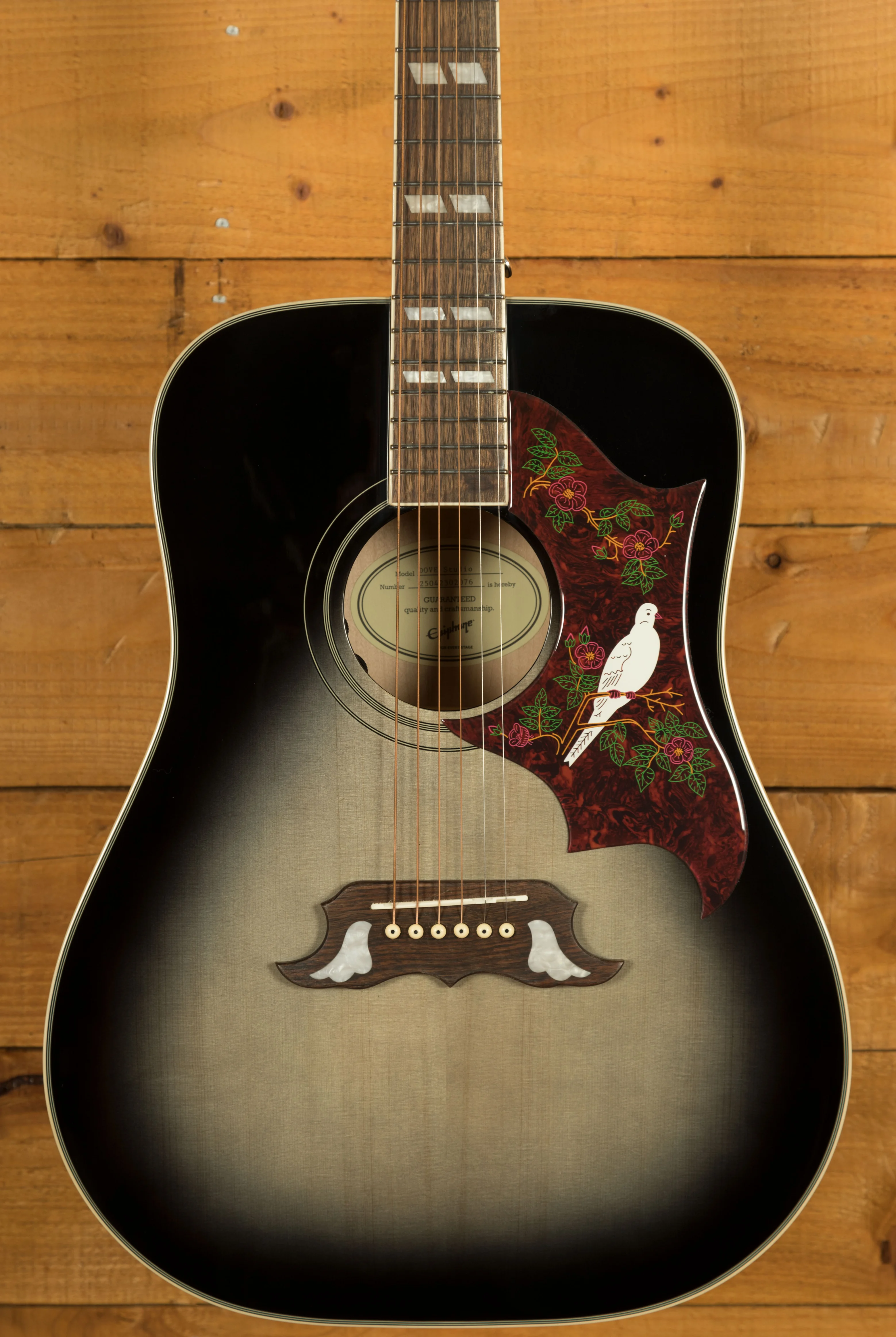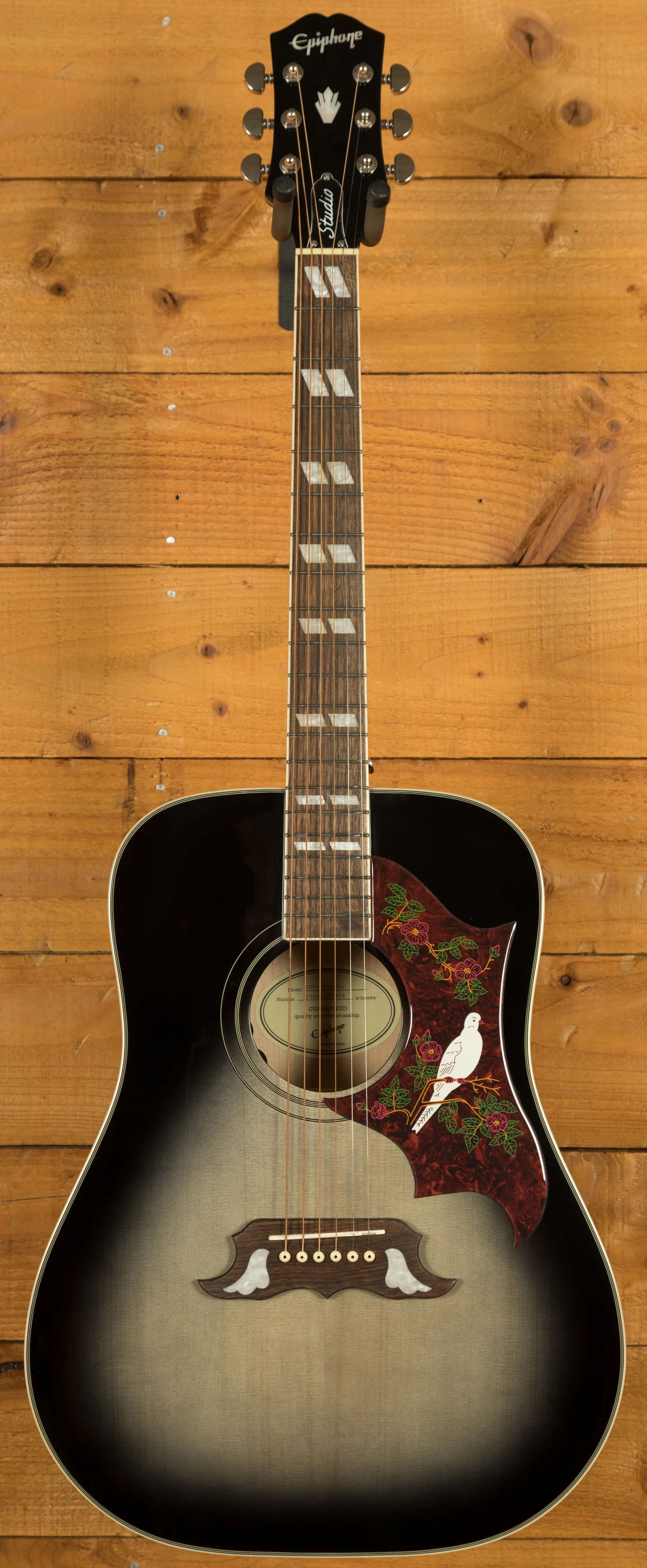 With its classic Dove pickguard design, pearloid parallelogram inlays, and quality hardware, the Epiphone Dove Studio blends aesthetic appeal with solid performance features. It's a well-built, reliable acoustic-electric guitar that offers excellent value for players seeking vintage style and modern functionality.