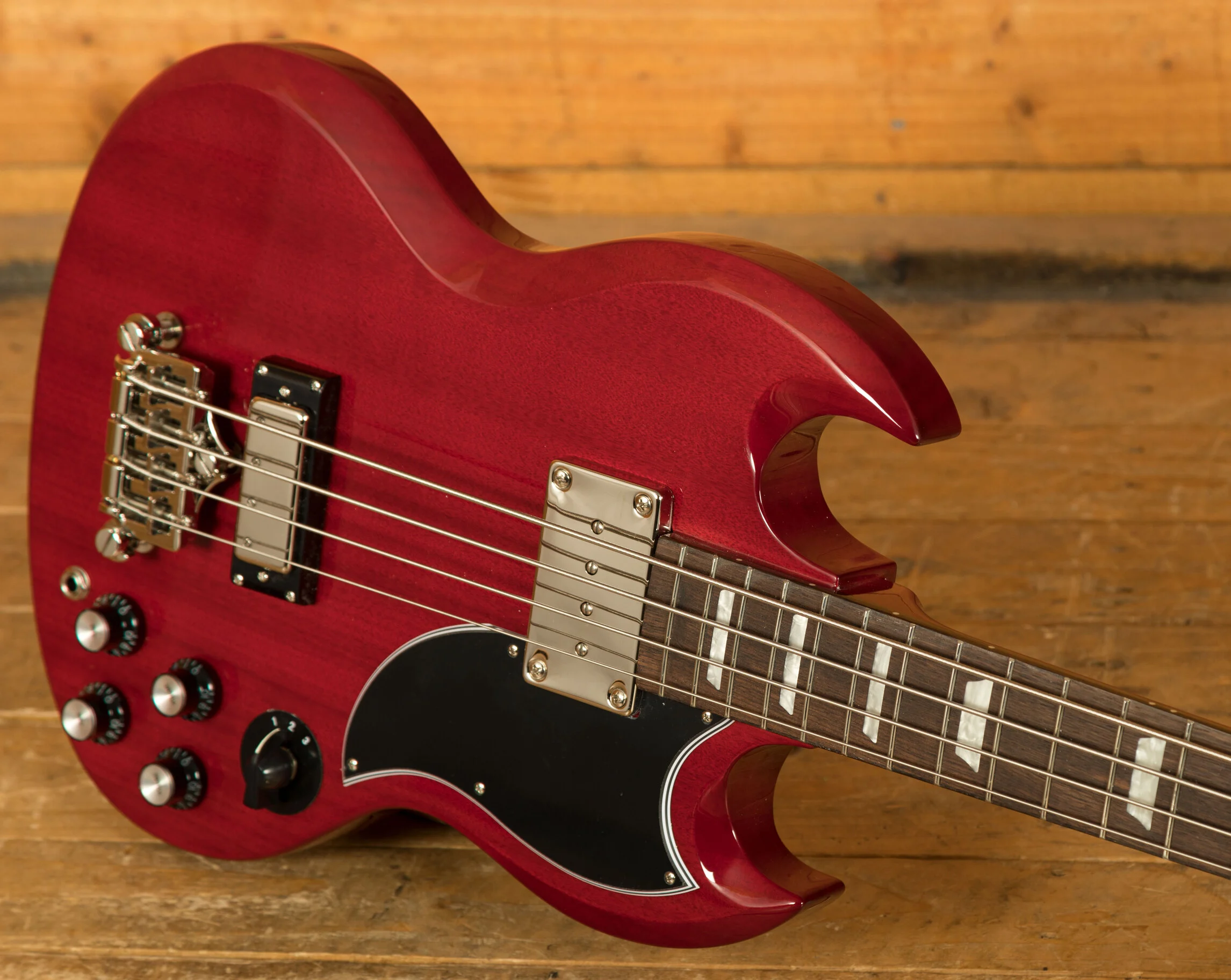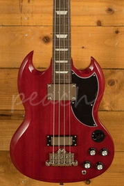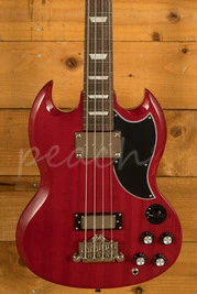 "It seems incredible in hindsight but in the early 1960s, the Kalamazoo factory, home to both Epiphone and Gibson instruments, ceased production of the Les Paul guitar and in its place, created the "SG" design. And as it so often does, changes in guitar design also influenced bass design, too. With the Les Paul (temporarily) out of the picture, the SG took over. And for a time during that golden era, the classic SG bass was the historic factory's sole electric bass offering.