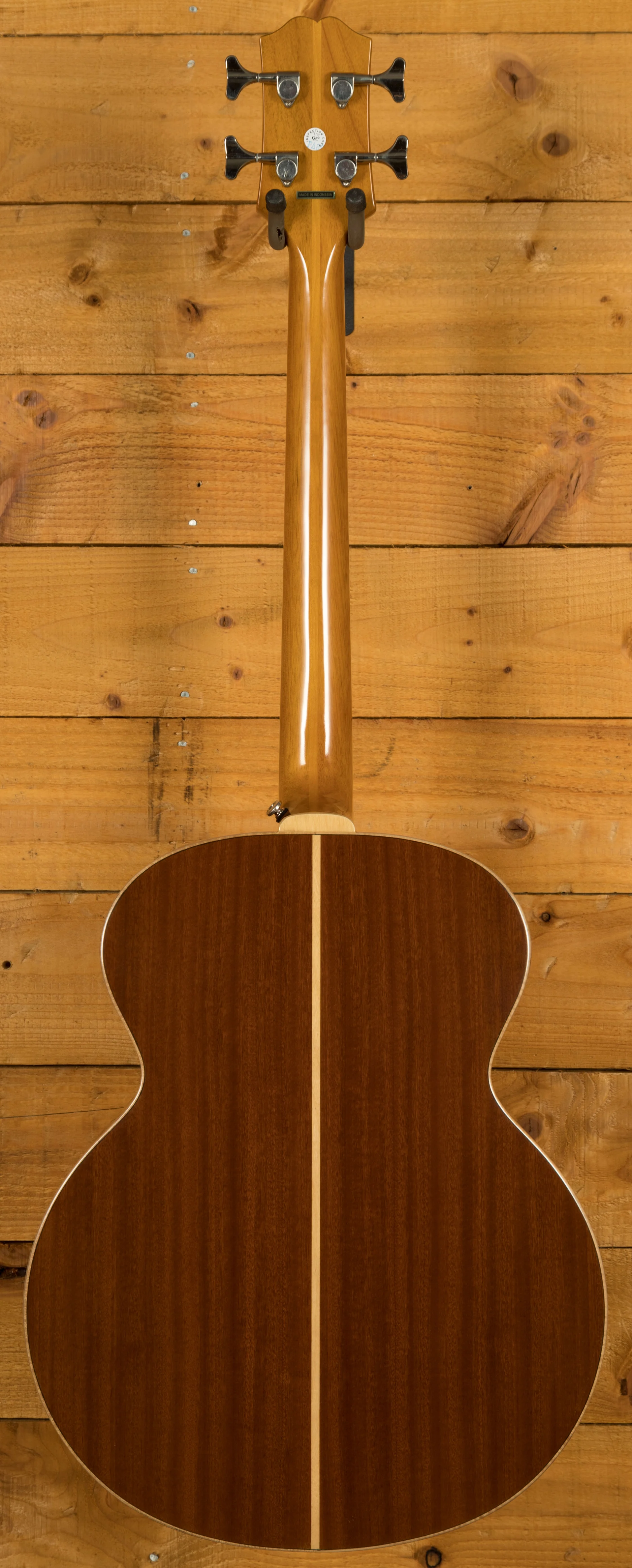 Immerse yourself in the visual splendour of this remarkable bass guitar. Adorning its 20-fret Indian laurel fretboard are exquisite pearloid crown inlays, a testament to its regal status. The iconic Moustache bridge, expertly crafted from laurel, further adds to its aesthetic allure, showcasing meticulous attention to detail. The marriage of a solid Sitka spruce top with layered mahogany back and sides yields a tone that resonates with brilliance and warmth, enveloping listeners in a rich sonic tapestry.