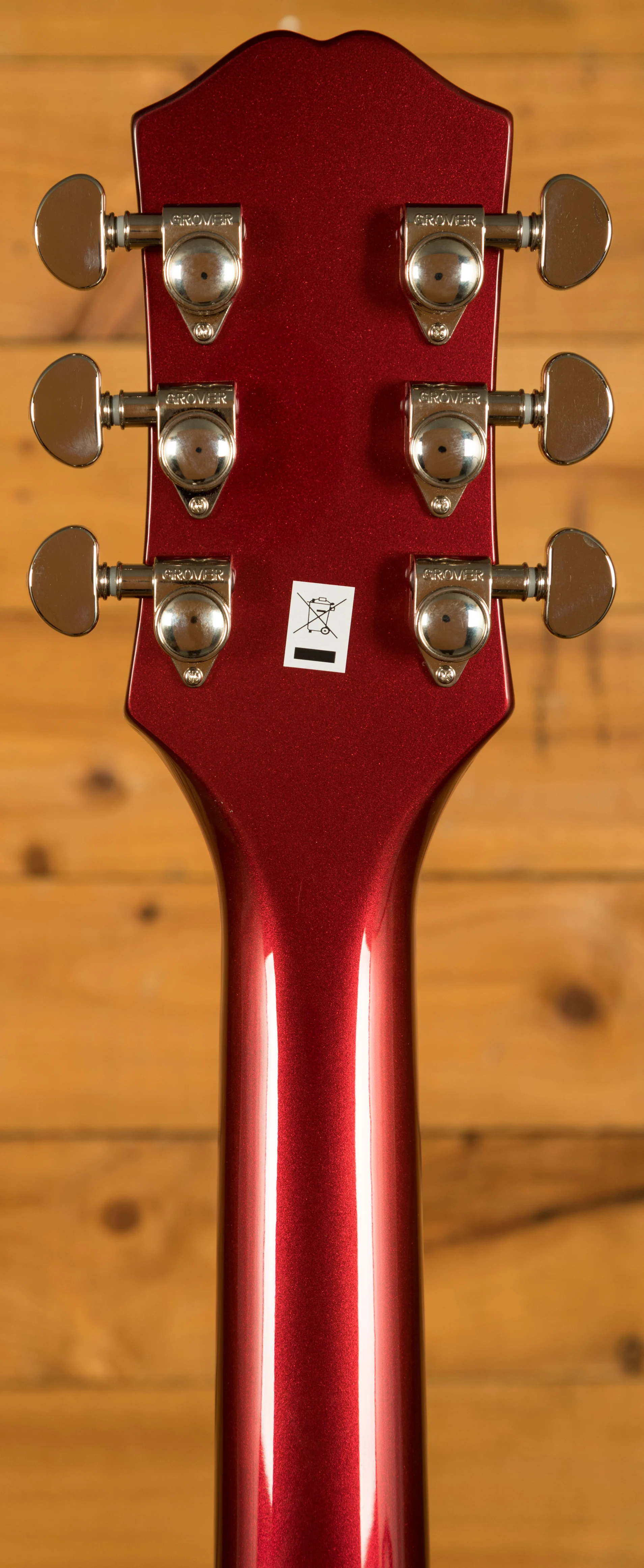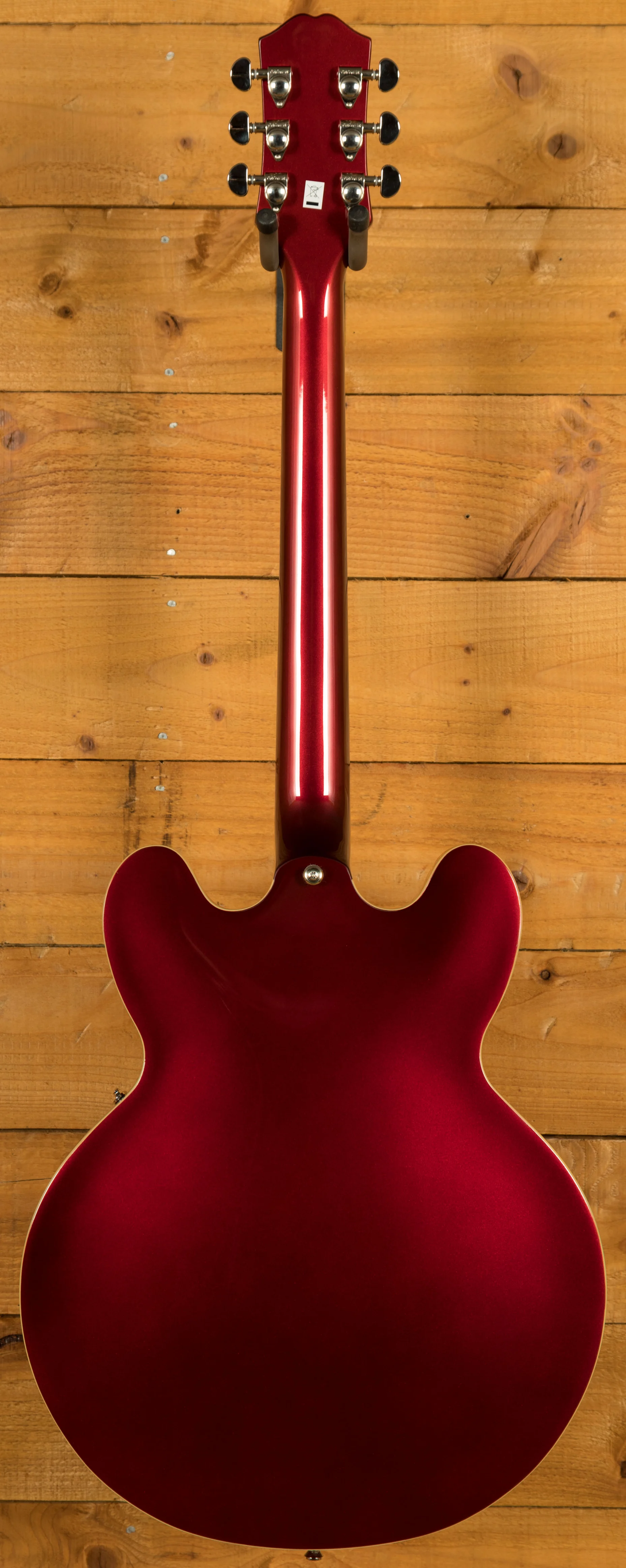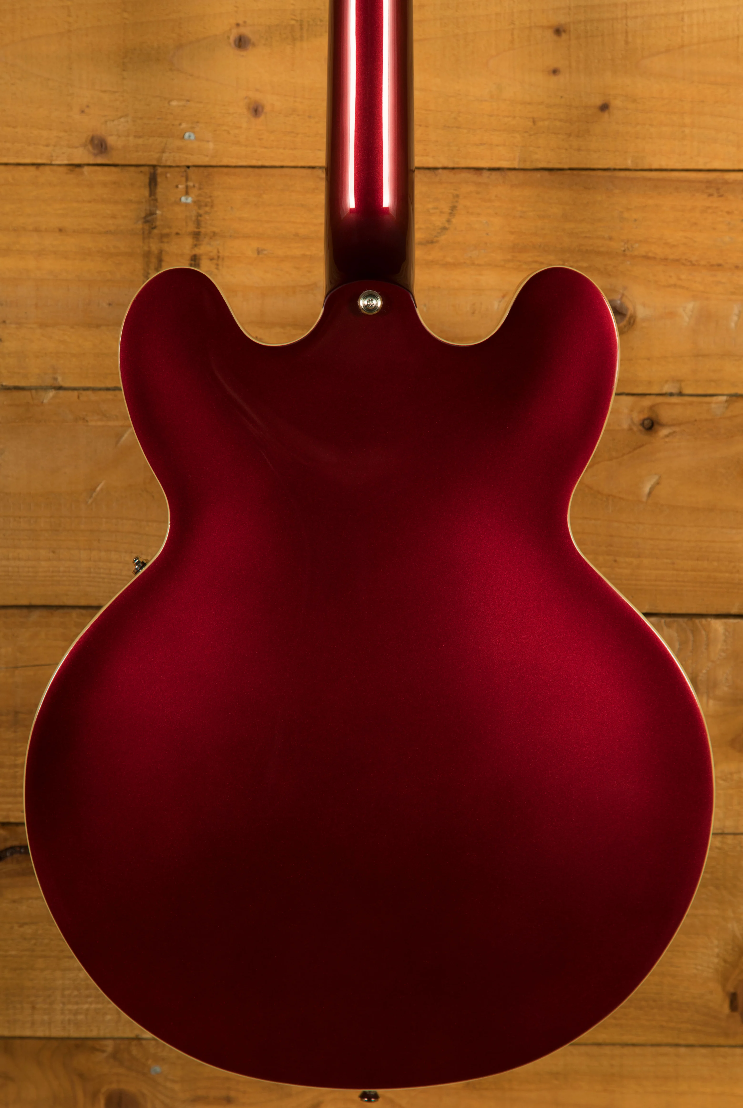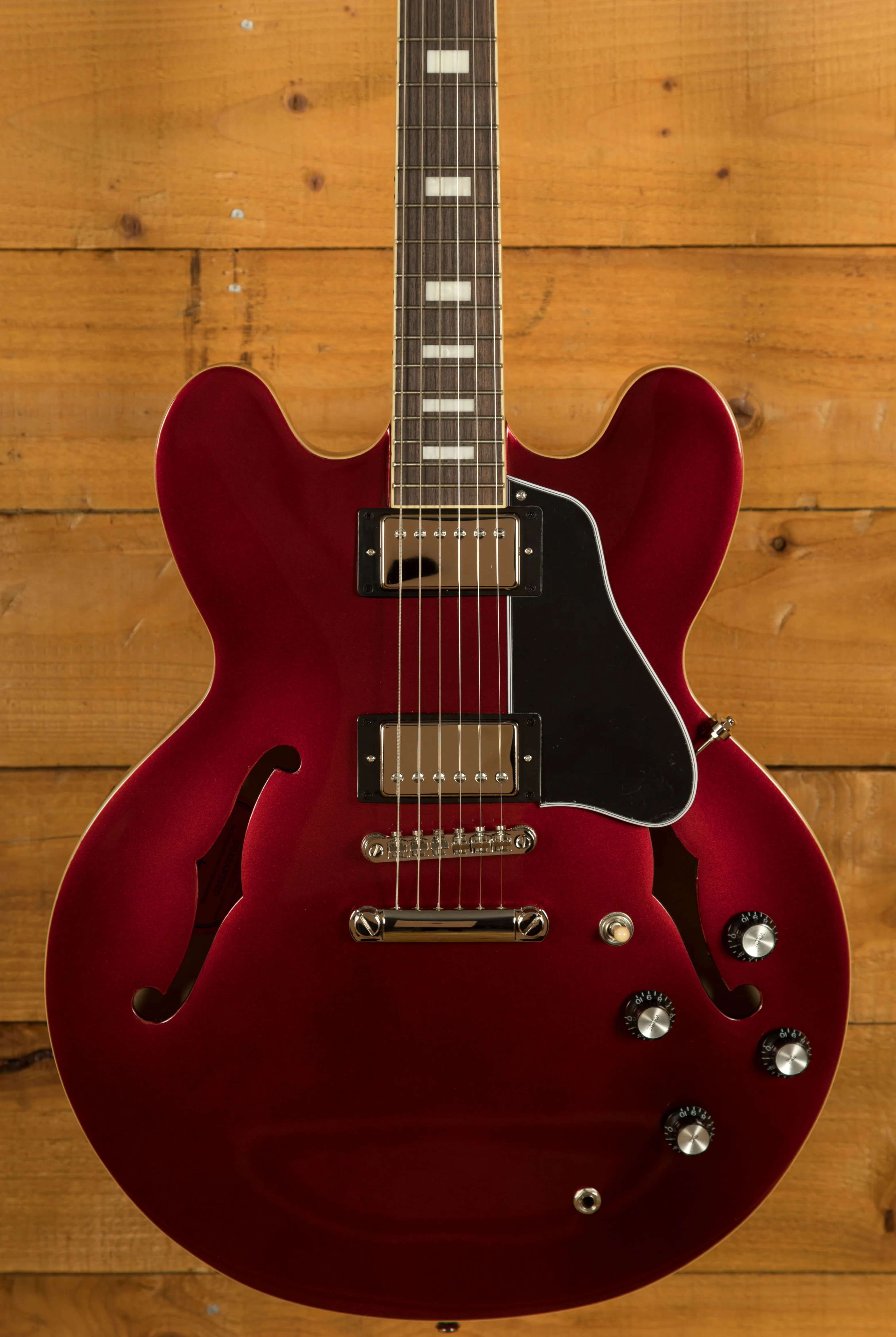 This Epiphone ES-335 features the classic semi-hollow body shape we all know and love. It looks and feels just like its Gibson counterpart. The semi-hollow body is constructed from Layered Maple, and features a super eye-catching Candy Red finish. This finish has a metallic nature, so when you put it under lights, youll really see the sparkling shimmer come through.