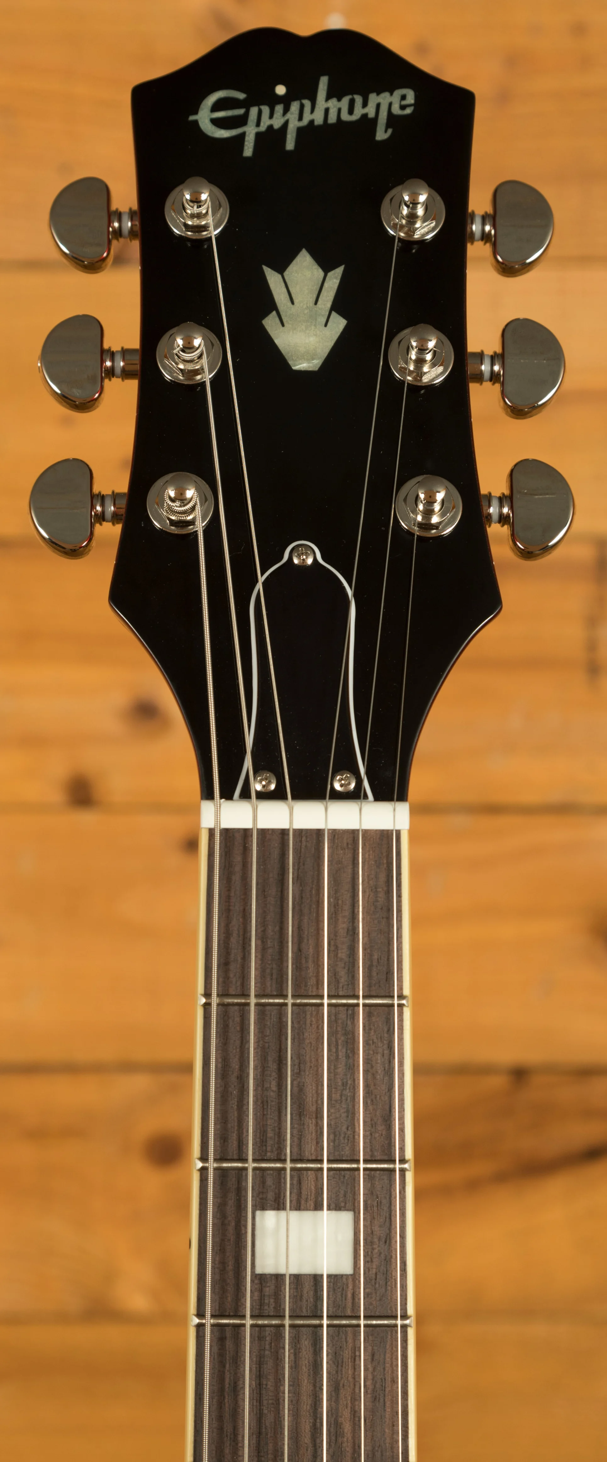The neck is crafted from Mahogany and features a Rounded C neck shape. This is one of the most common Epiphone neck shapes due to its comfortable shape and feel. The Indian Laurel fingerboard features a 24.72 scale length, 12 radius, 22 medium jumbo frets, 43mm nut width, and of course block inlays, which is one of the most unique features of this model.