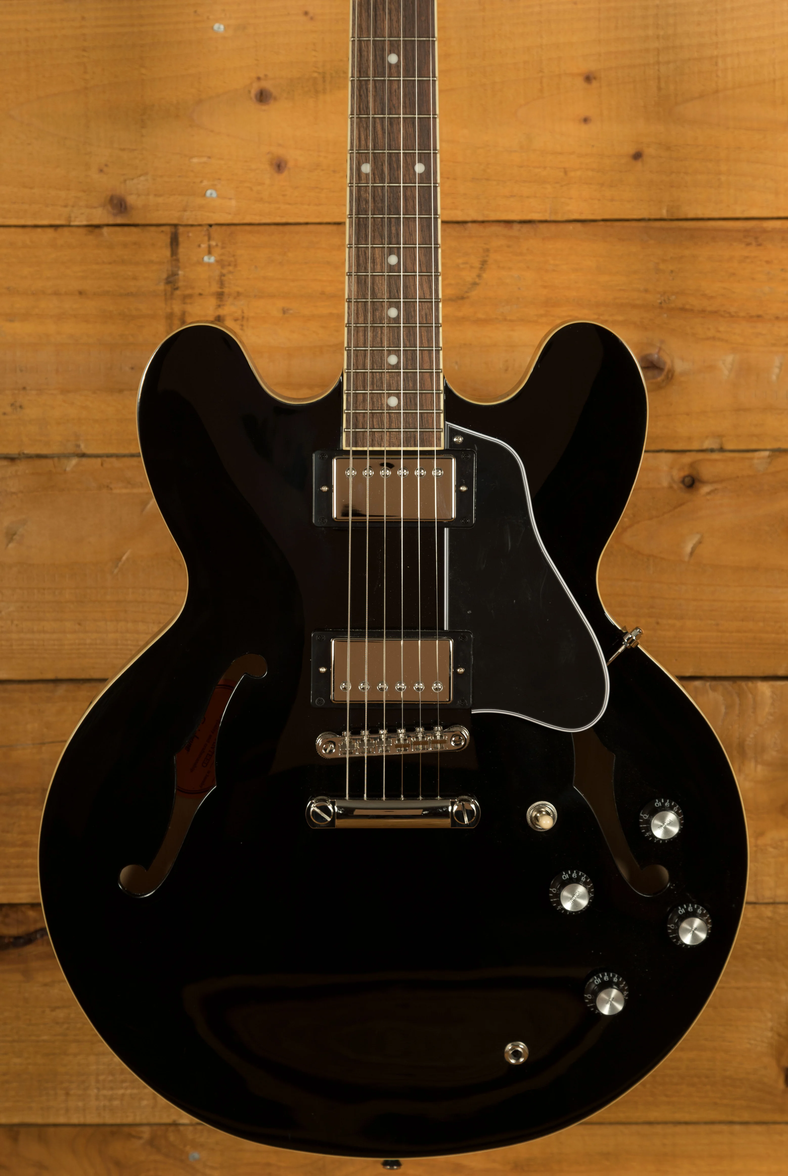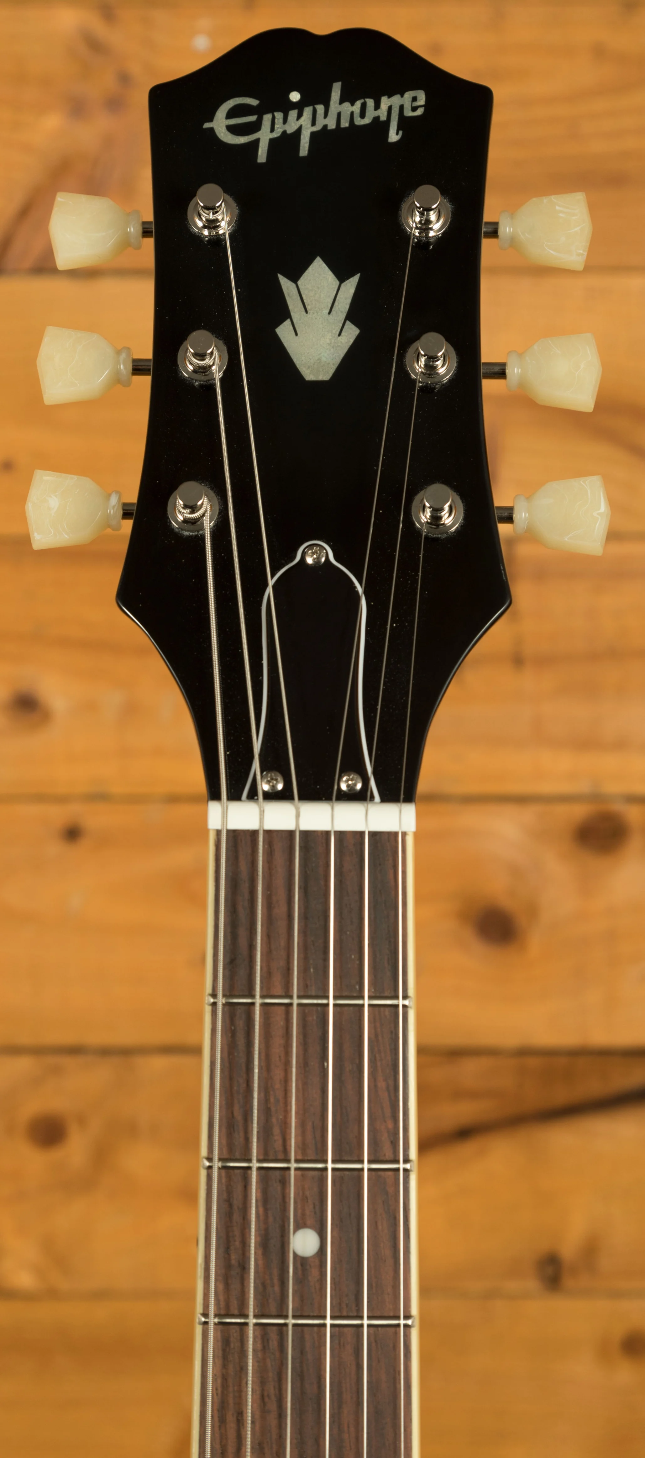 The neck features a comfortable rounded "C" profile crafted from mahogany, paired with a smooth 12" radius Indian Laurel fingerboard and 22 medium jumbo frets. This design provides an easy playing experience across the 24.72" scale length, making it comfortable for both chord work and soloing. Practical features such as the Graph Tech NuBone nut ensure stable tuning and improved sustain, while the LockTone Tune-O-Matic bridge and stop bar tailpiece add reliability and resonance. Combined with Epiphone Deluxe tuners, the hardware ensures that the ES-335 stays in tune and ready to perform, making it a dependable choice for players at any level.