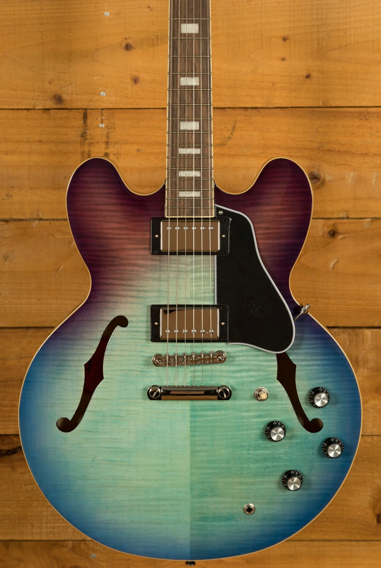 One of the key features of the ES-335 Figured is its solid maple centre block, strategically placed within the semi-hollow body. This innovative design choice not only enhances the guitar's sustain but also provides exceptional feedback resistance, allowing you to explore a wide range of tonal possibilities without compromising on performance.