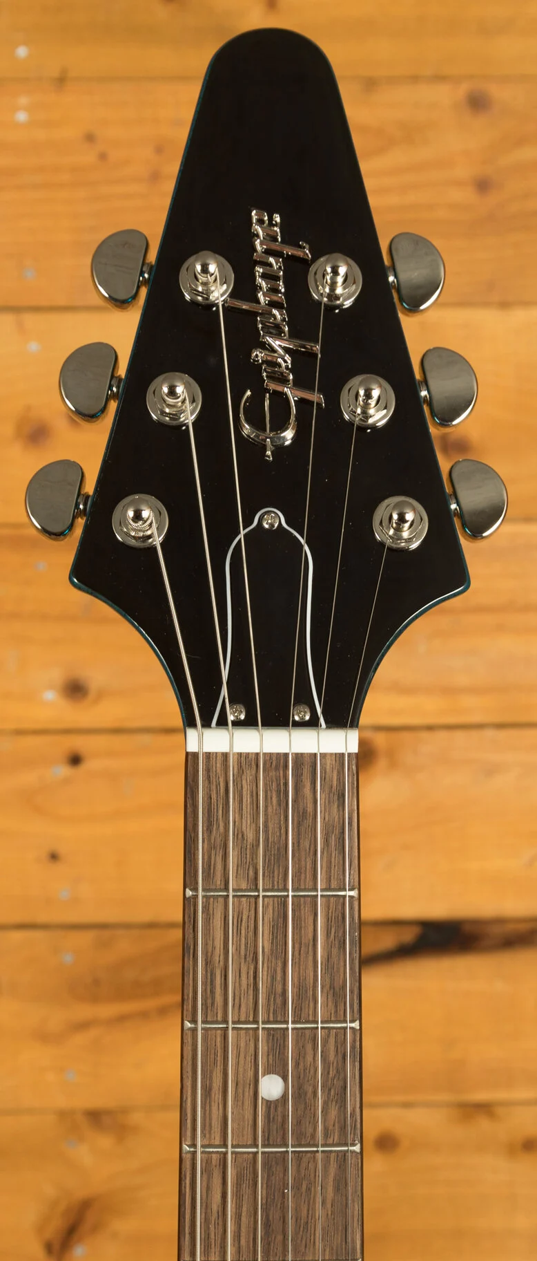 At the core of this remarkable guitar lies a solid mahogany body, known for its rich resonance and warm, well-rounded tonal characteristics. The Flying V boasts a SlimTaper C neck profile, carefully designed to offer optimal comfort and effortless playability. Whether you're shredding through lightning-fast solos or exploring melodic passages, this neck shape provides a secure grip and facilitates seamless navigation across the fretboard.