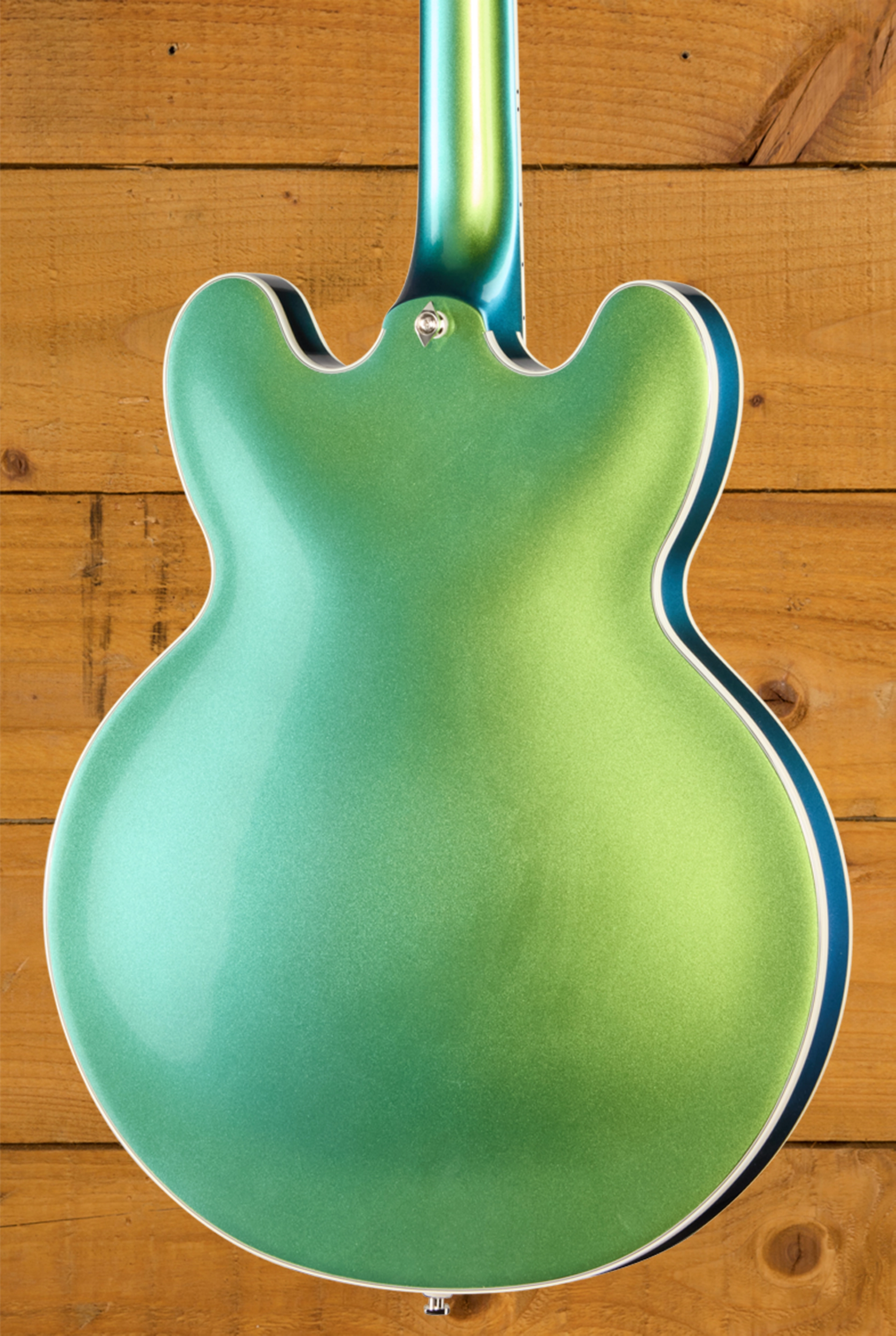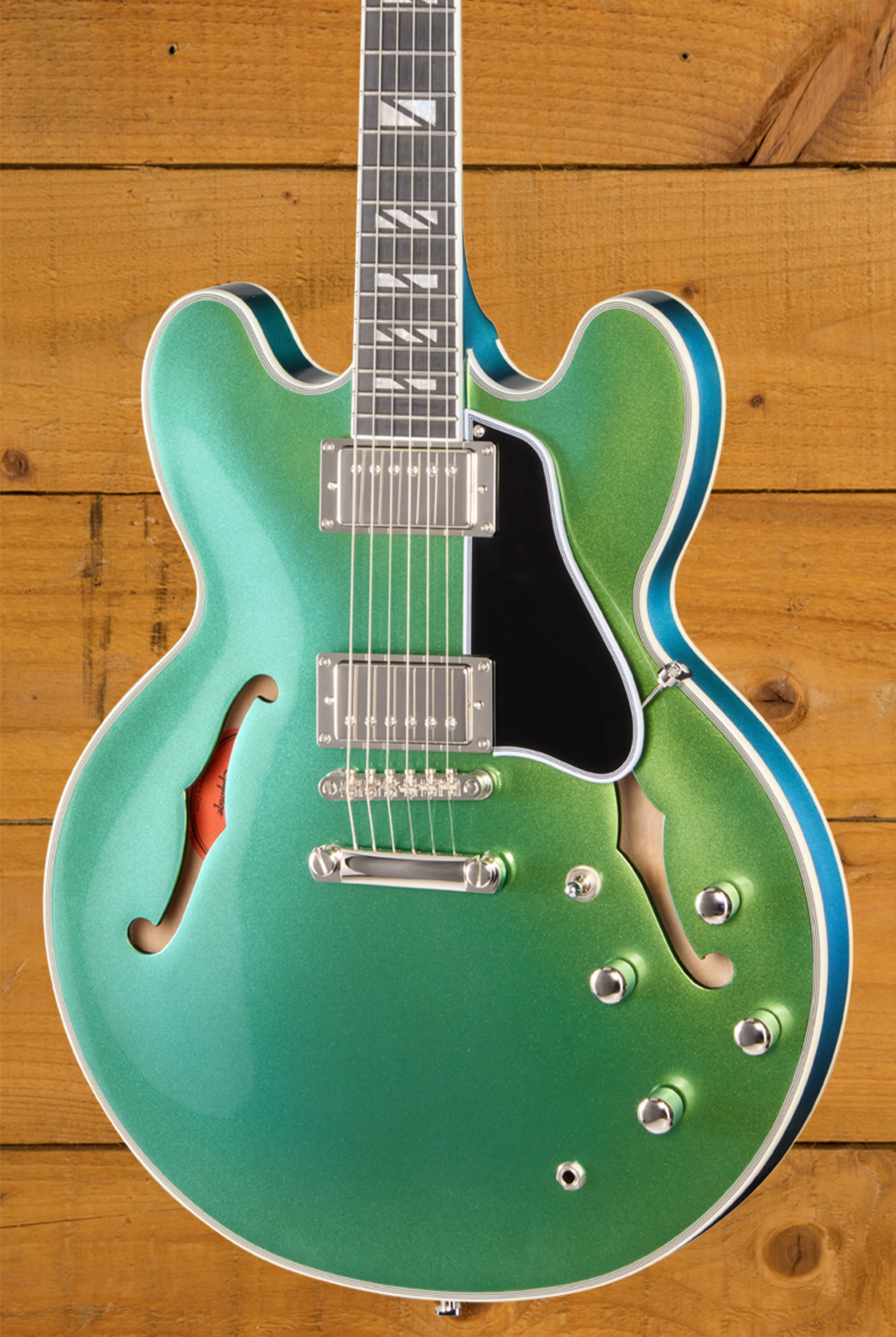 The Futura series ES-355 is a modern interpretation of one of Gibson’s most iconic and influential body shapes. It features a traditional ES-355 body shape crafted from 5-ply Layered Maple / Poplar. This tone wood pairing is known for delivering great power and resonance, which is certainly found on this guitar. The most eye-catching feature of the Futura series is the colour shift finishes, which drastically change colour depending on the lighting and angle you look at the guitar. Having a finish like this on a guitar at this price point isn’t something you see every day! This guitar looks super stylish and really does standout!