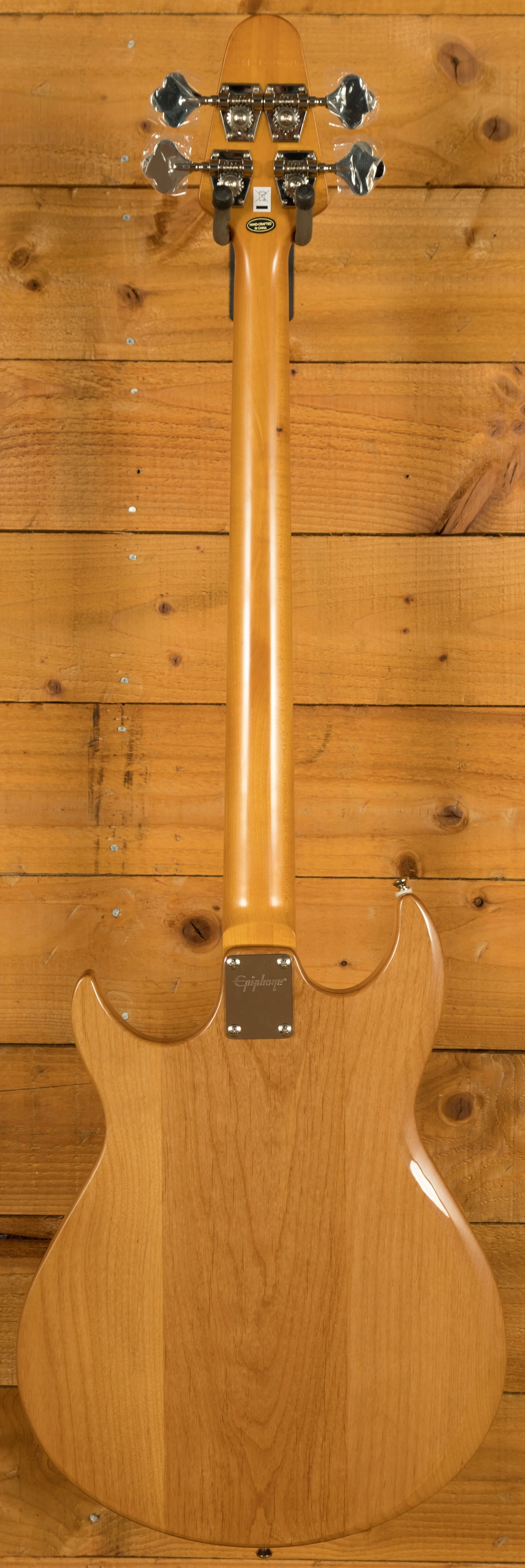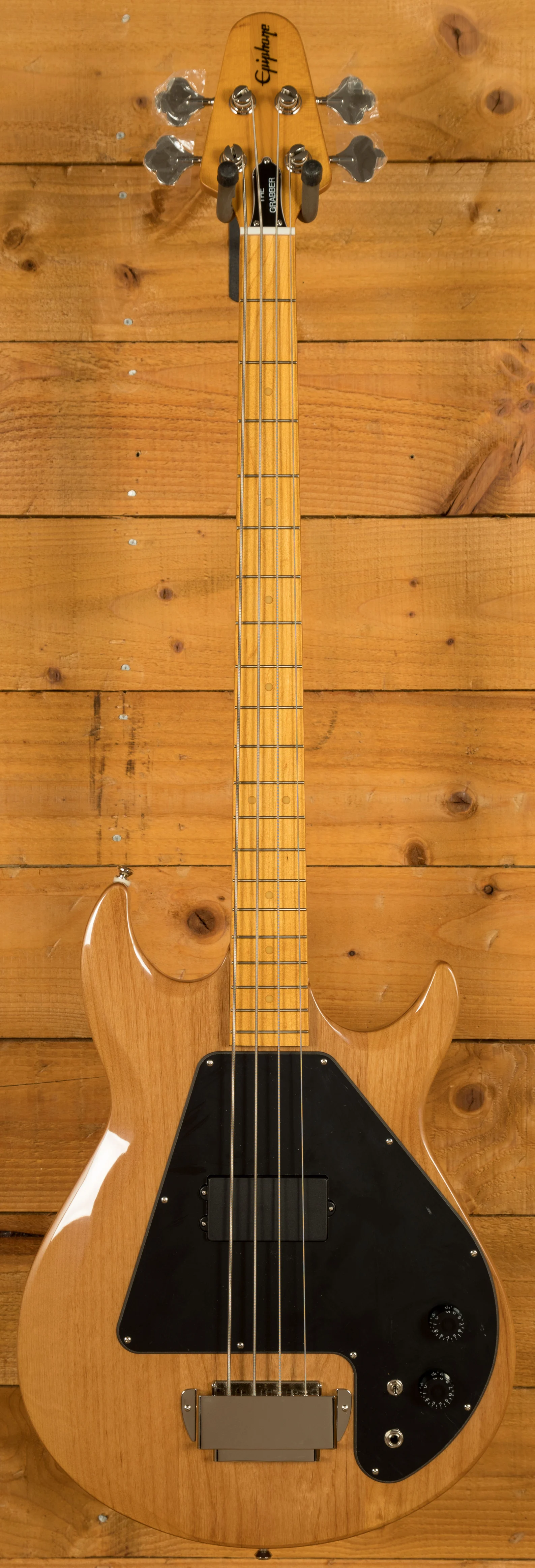 The Epiphone Grabber is a real powerhouse bass, made famous by players like Gene Simmons, Krist Novoselic and Mike Dirnt, it delivers a powerful low-end with a distinct tone! This Epiphone re-issue takes that classic design and brings this iconic instrument down to a more widely accessible price point.