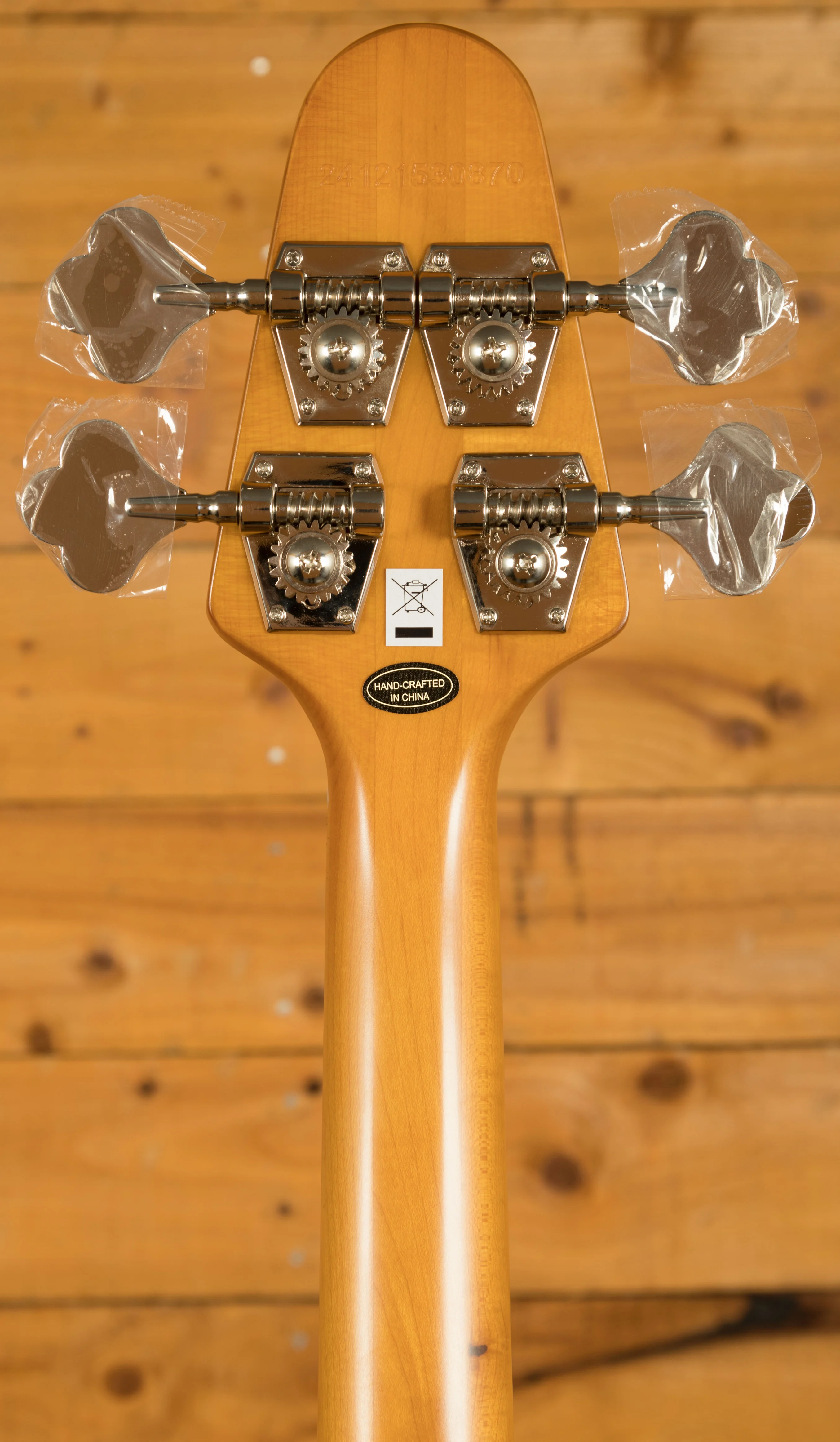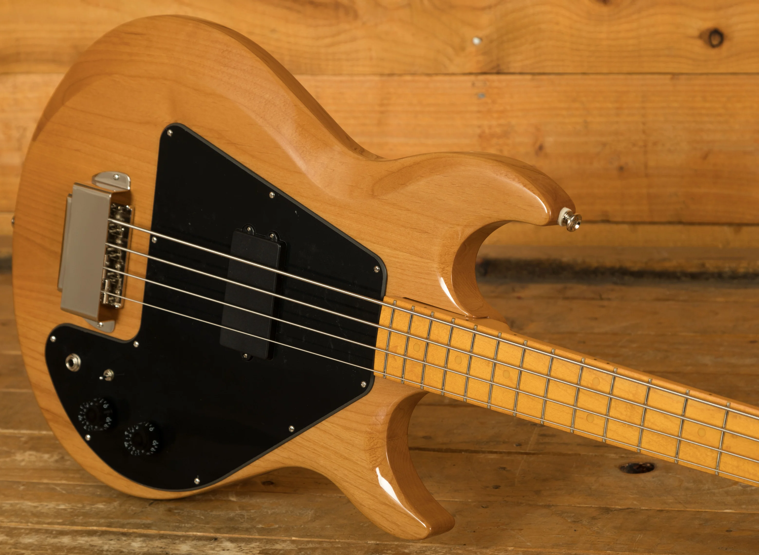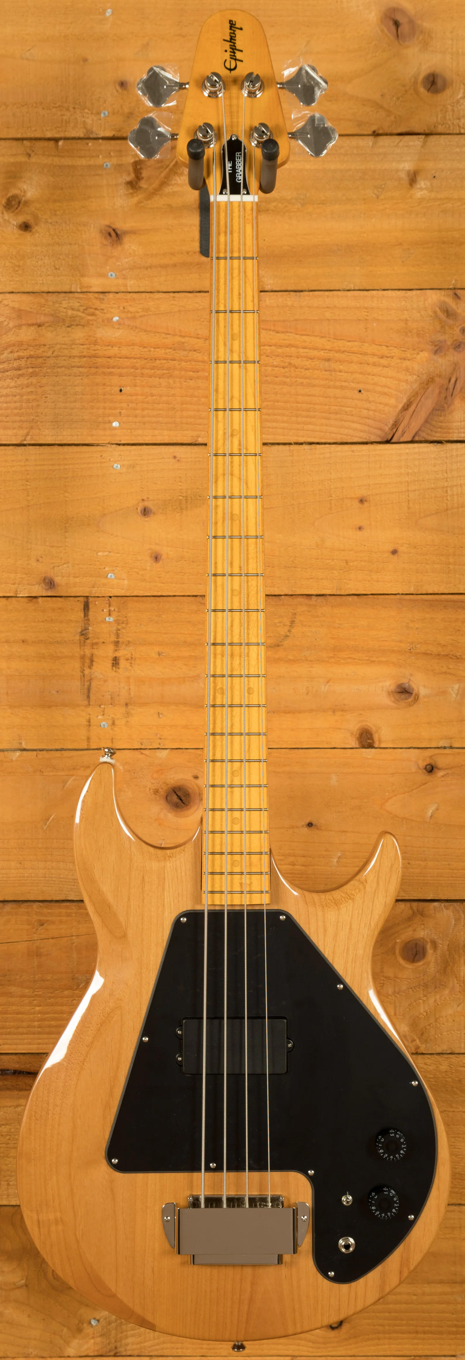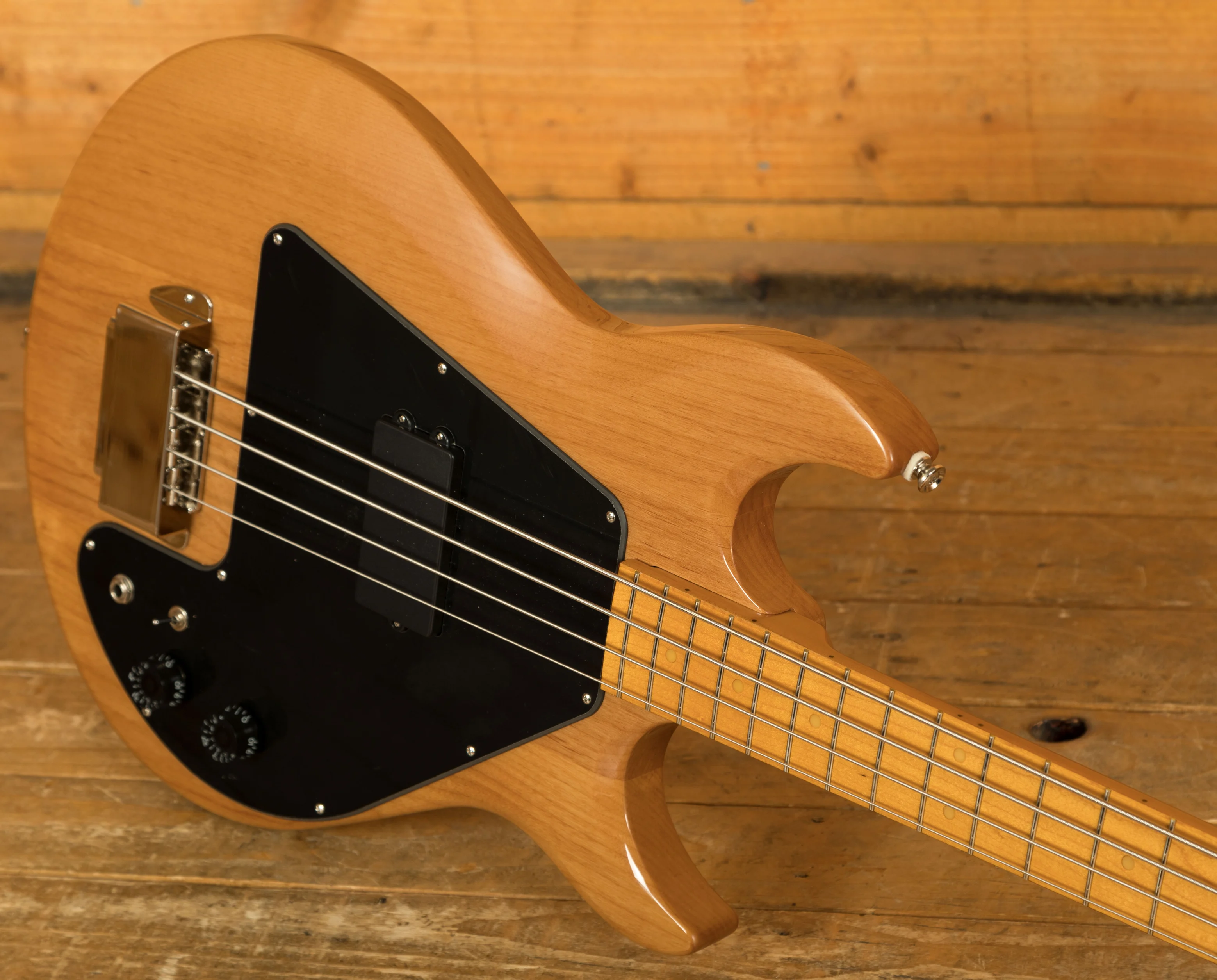 The Alder body is finished in a really cool Natural lacquer, it's well balanced and offers a super comfortable playing experience. It features a traditional classic Grabber spec pickguard, which perfectly complements the unique double-cut body design. Even today, this bass is extremely eye-catching and unique! We love it and we know you will too!