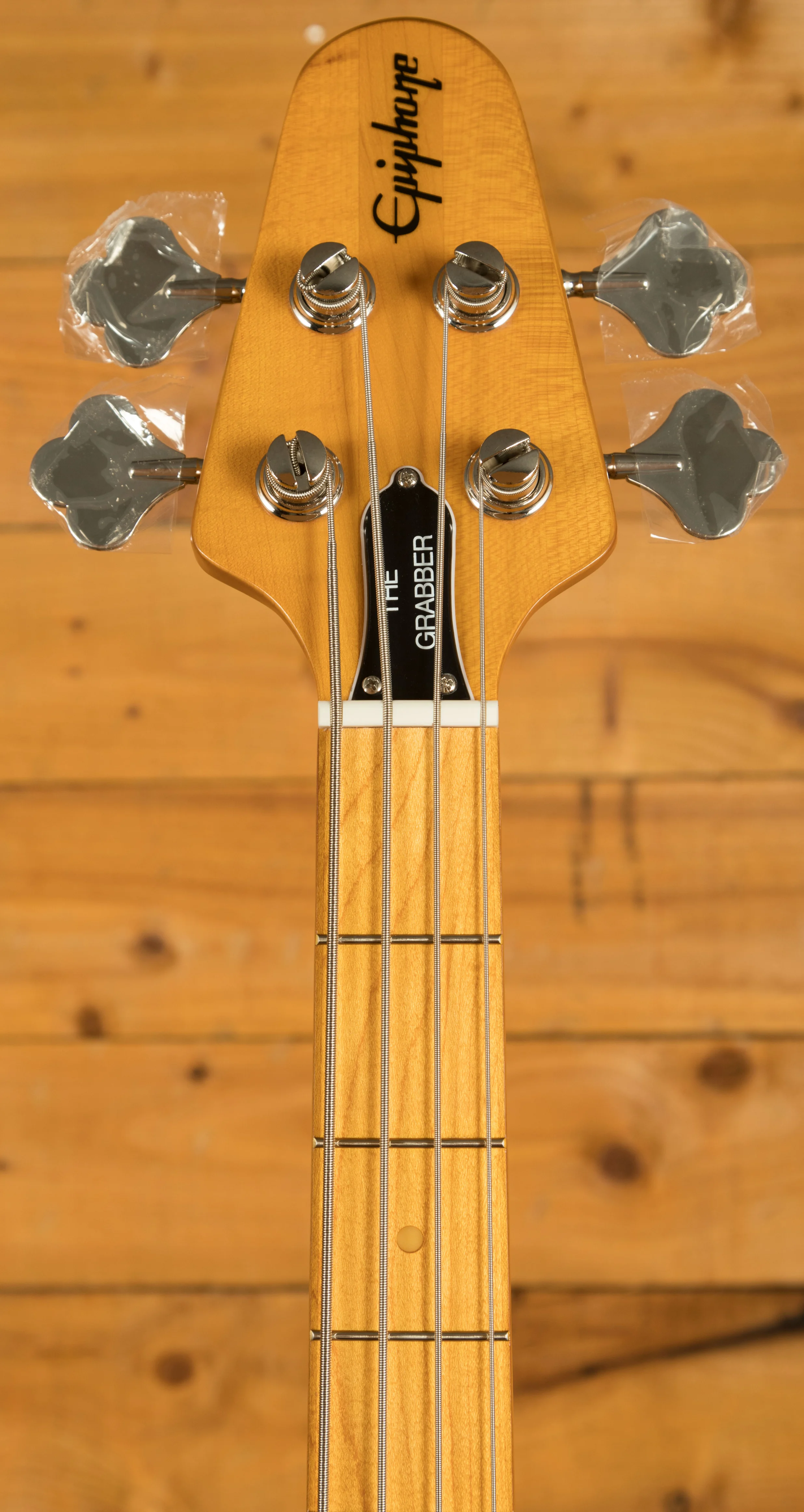 With a singular Epiphone Bass humbucker this bass offers a simple, no-nonsense approach to tone. Its powerful, punchy, and full of that classic Grabber vibe! Its equipped with a Master Volume, Master Tone, and coil splitting capabilities.