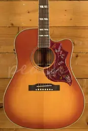 This Hummingbird EC features an all solid wood construction, which is great to see on an instrument at this price point, it really helps the overall tone and voice of the instrument. It features solid mahogany back & sides, alongside a solid spruce top. Together, these tonewoods deliver the sweet tone and power that the Hummingbird is known for. To make playability even easier, this version of the Hummingbird features a cutaway allowing for great upper fret access.