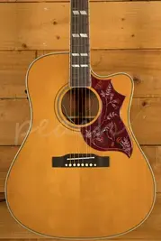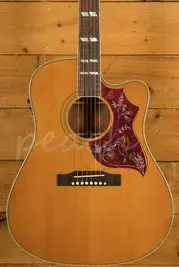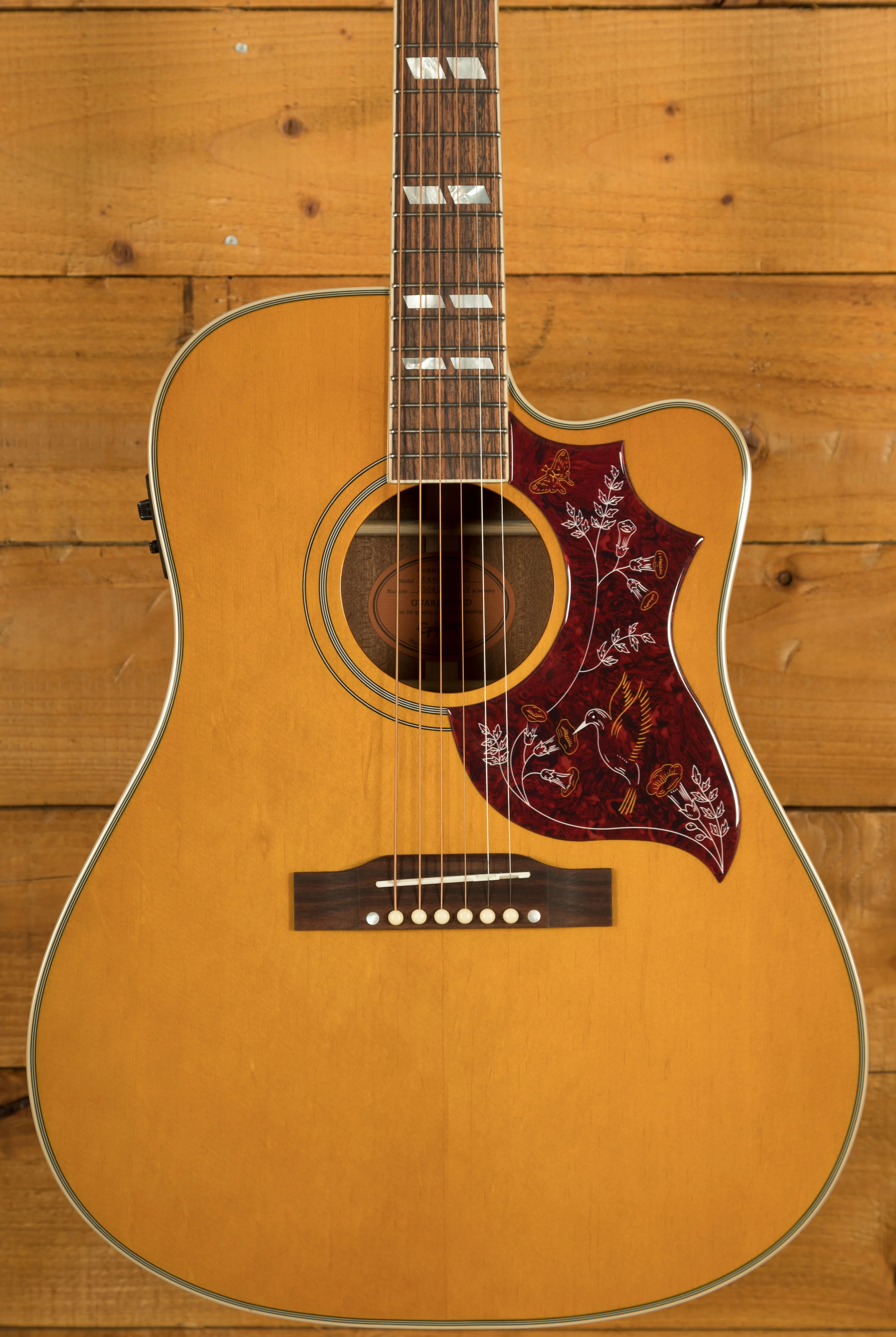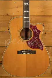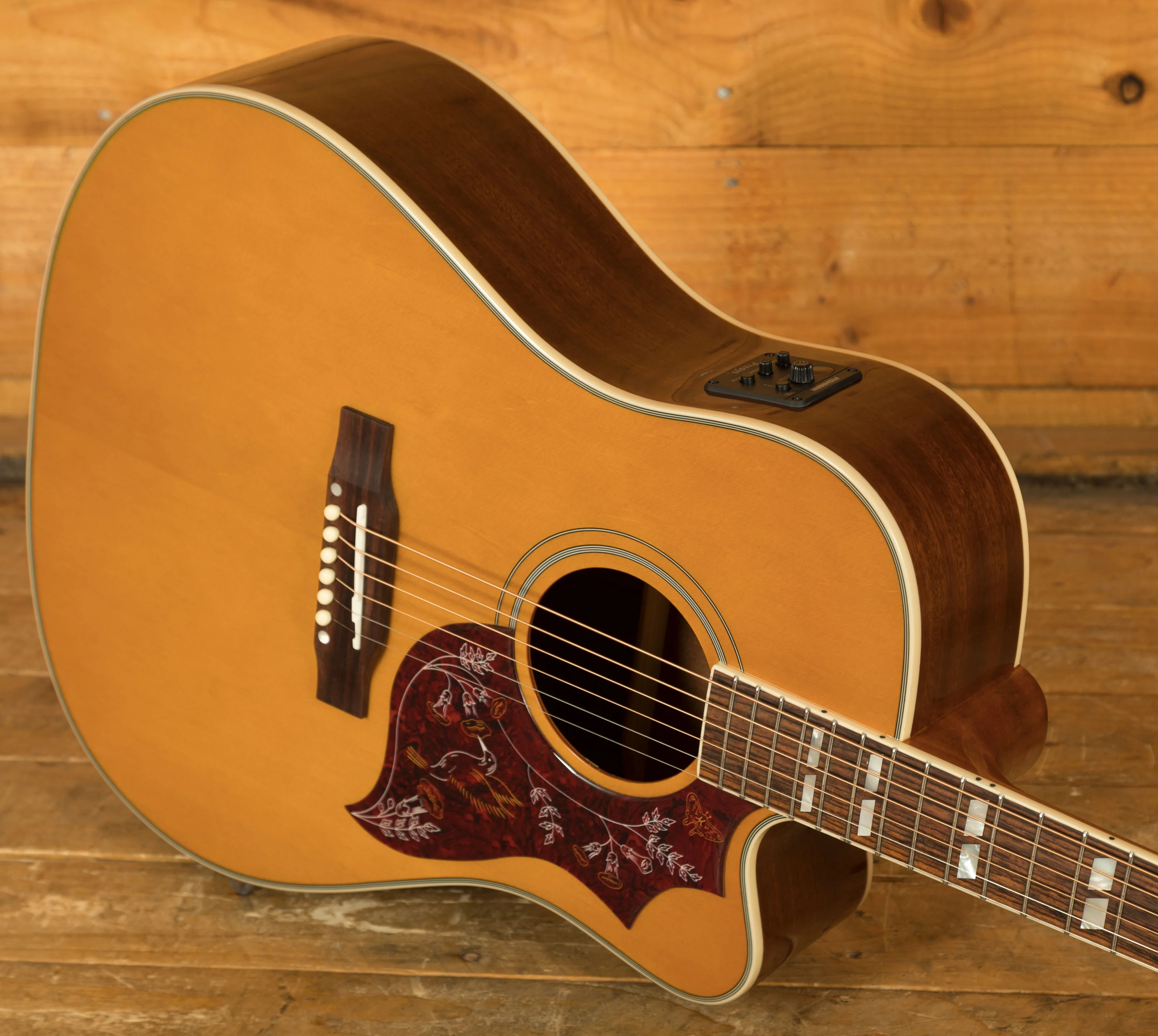 This Hummingbird EC features an all solid wood construction, which is great to see on an instrument at this price point, it really helps the overall tone and voice of the instrument. It features solid mahogany back & sides, alongside a solid spruce top. Together, these tonewoods deliver the sweet tone and power that the Hummingbird is known for. To make playability even easier, this version of the Hummingbird features a cutaway allowing for great upper fret access.
