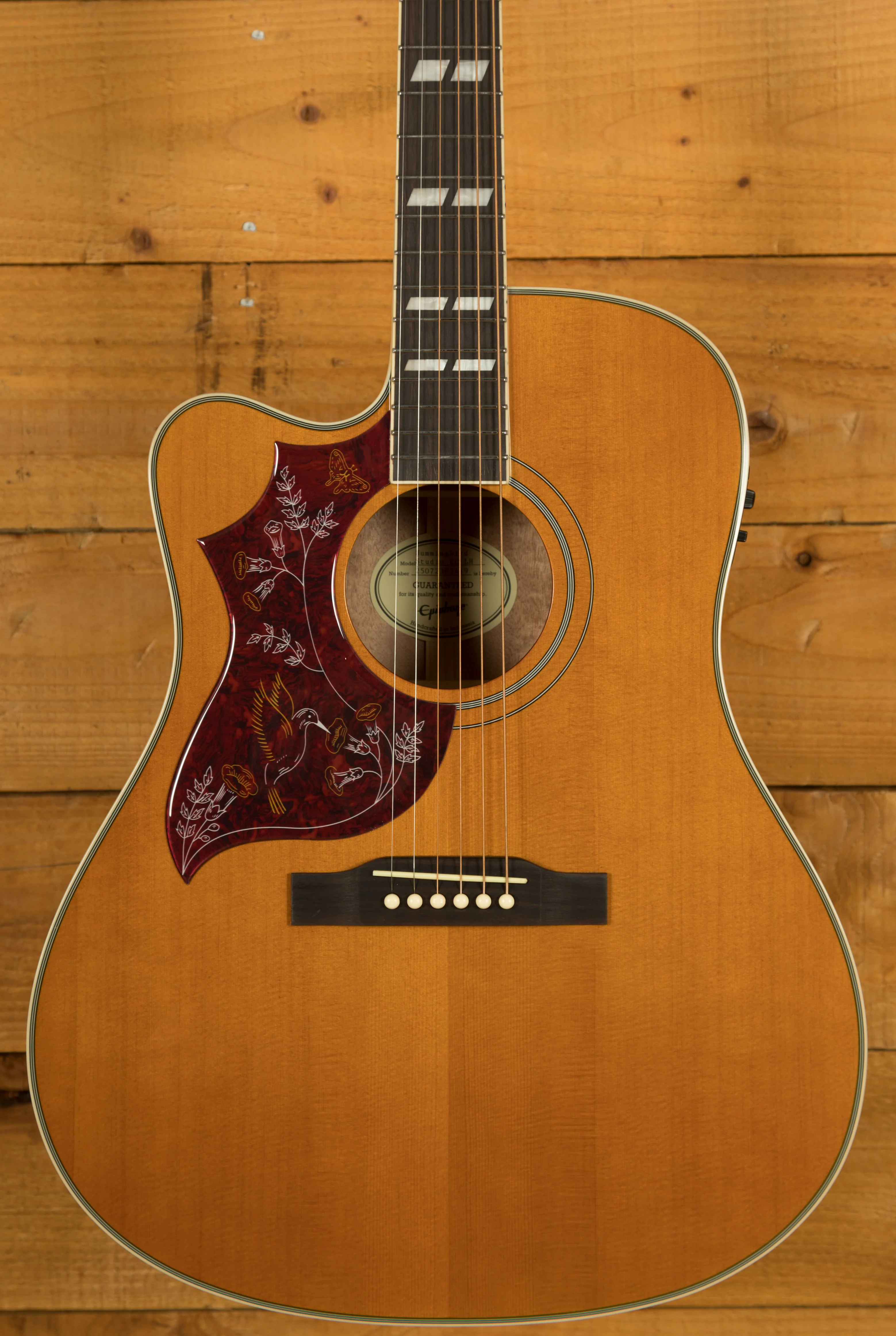 The Epiphone Hummingbird Studio EC in Natural brings a much loved Gibson acoustic design to players who want classic style and a bold, clear voice at an accessible price. As part of the new Epiphone Studio Acoustic Collection, it takes inspiration from the original Gibson Hummingbird, a square shouldered dreadnought known for its full-bodied voice with sweet trebles and enhanced low-end but with a cutaway for easier access to the higher frets.