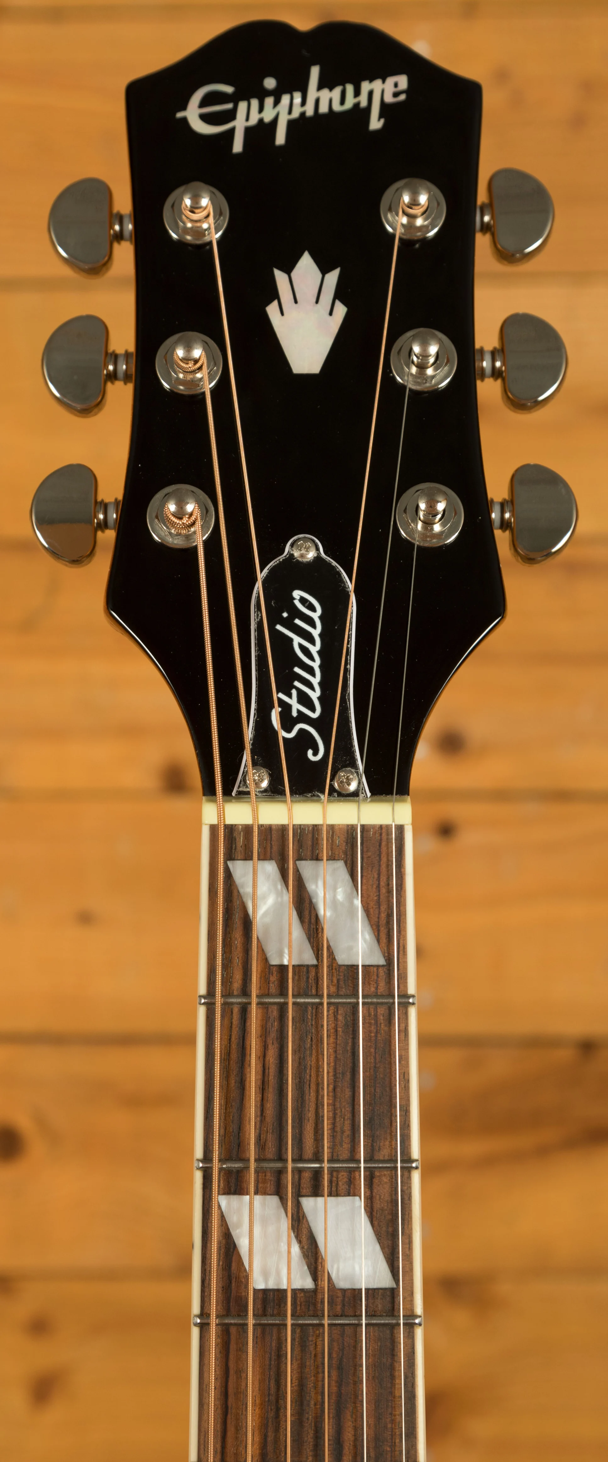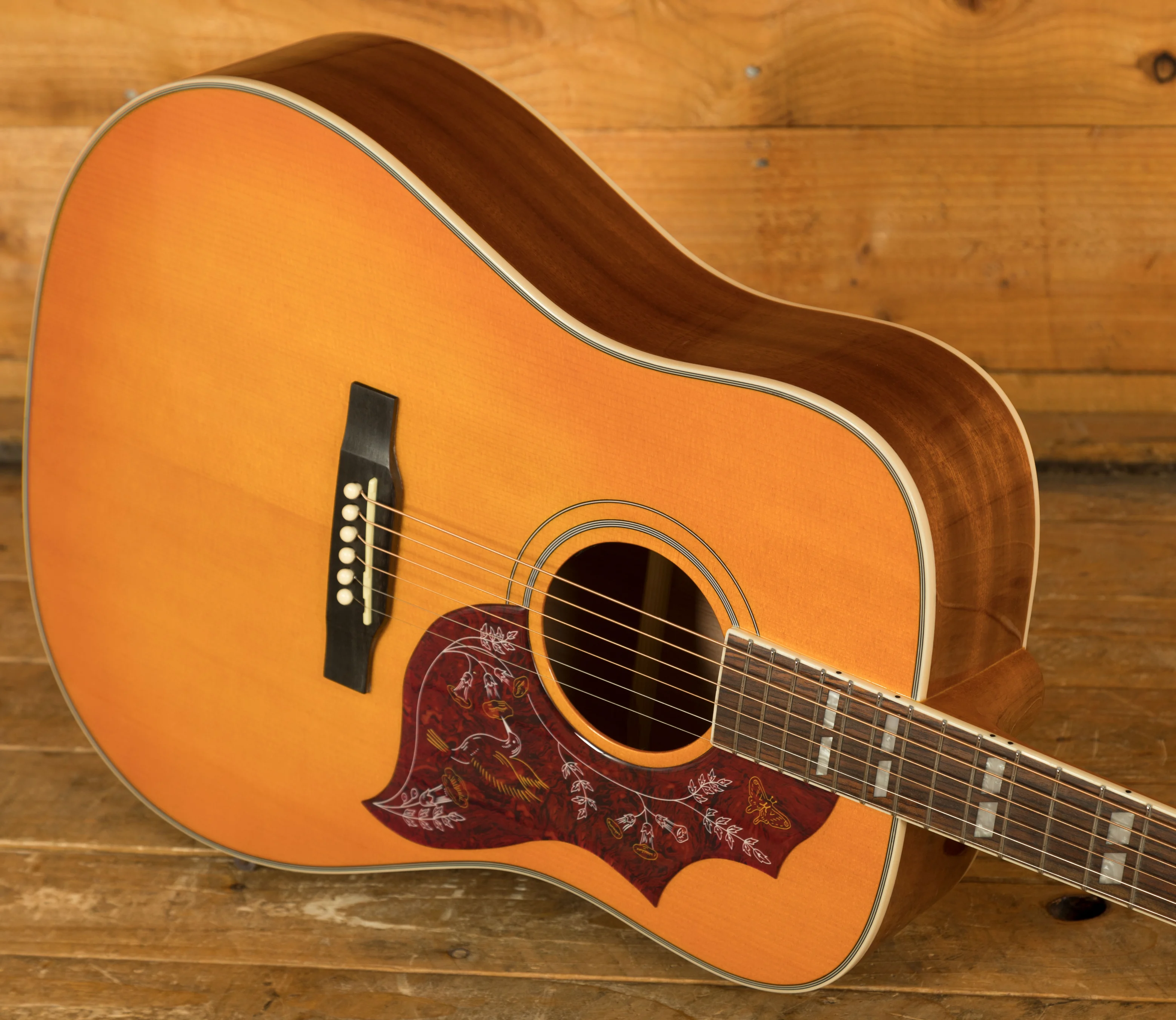 The Hummingbird Studio keeps the classic look of the original with its iconic tortoise pickguard featuring hummingbird graphic, Grover rotomatic tuners and a sixties Kalamazoo style headstock with mother of pearl details. It also features a rosewood 'belly-up' bridge with a compensated saddle for accurate intonation.