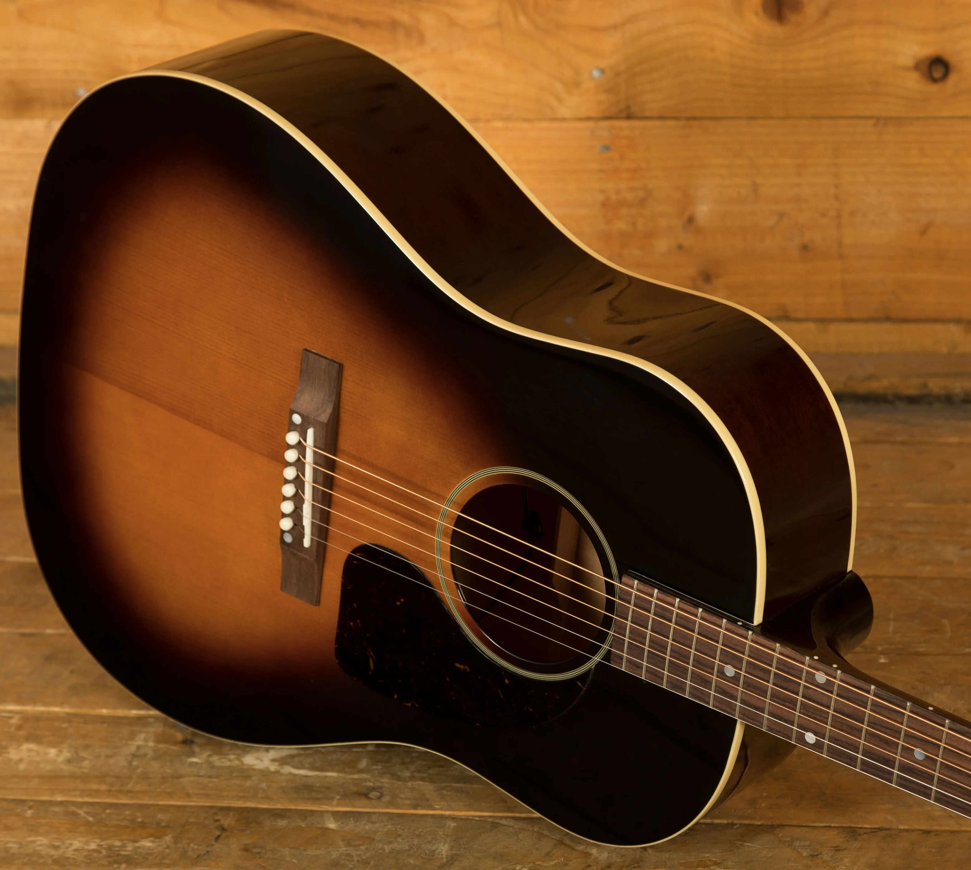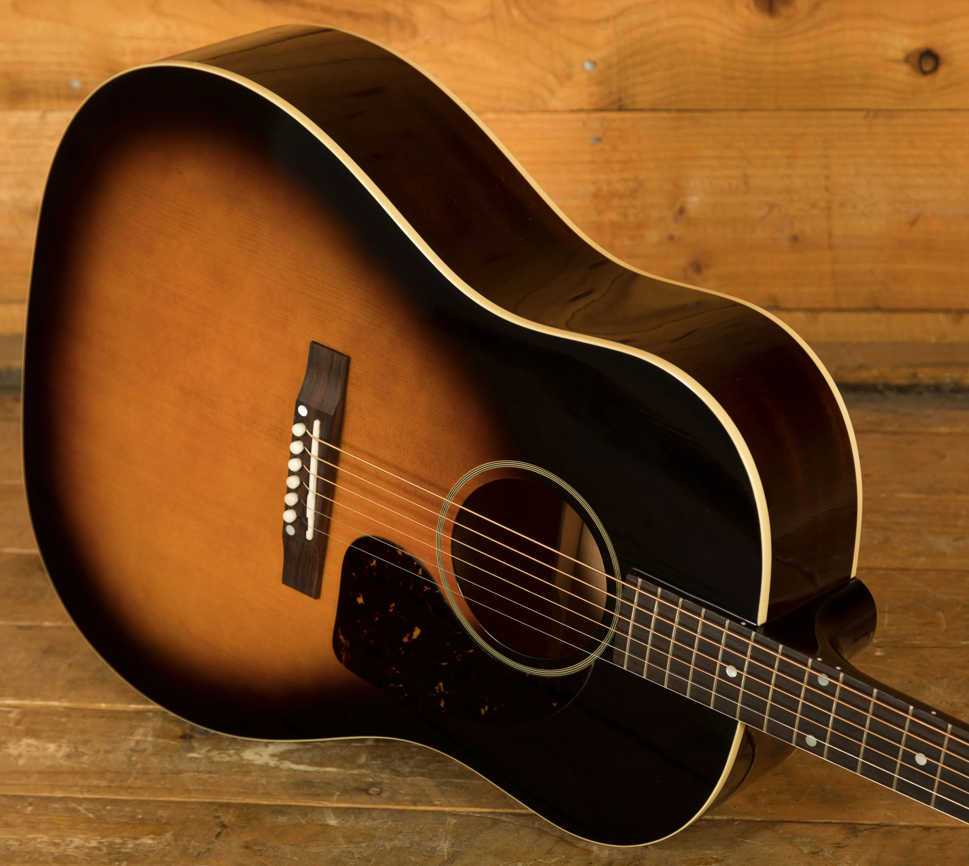 The Gibson J-45 first appeared in 1942, and guitars from that original production year are amongst the most prized vintage acoustics worldwide. As Gibson’s best-selling acoustic model ever, the J-45 quickly gained the nickname “The Workhorse” for its straightforward design, timeless elegance, and reliable performance on stages and in studios around the globe.