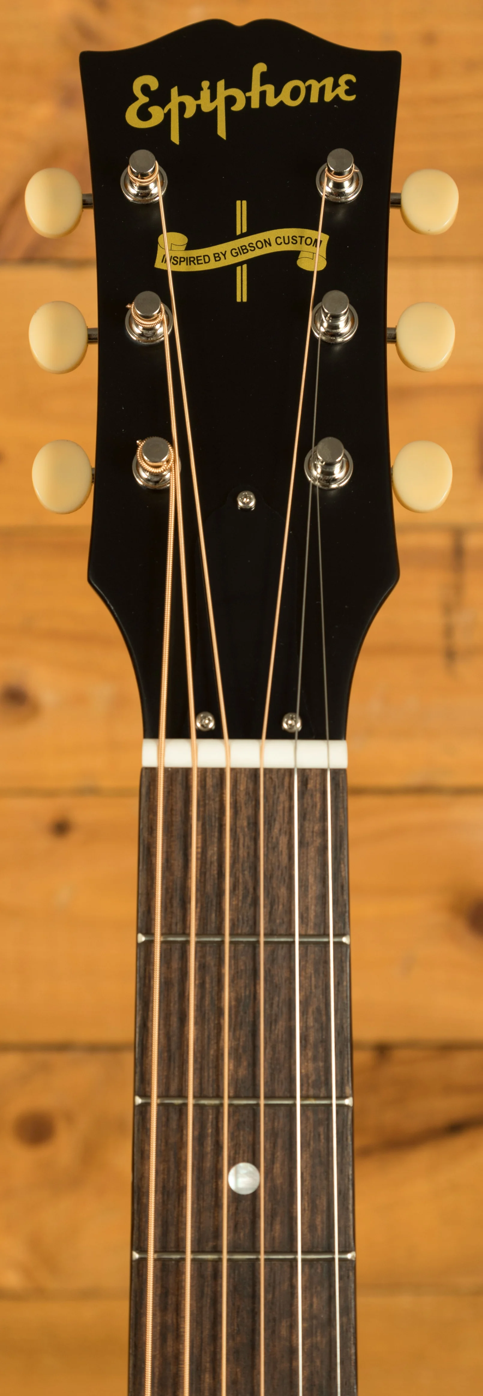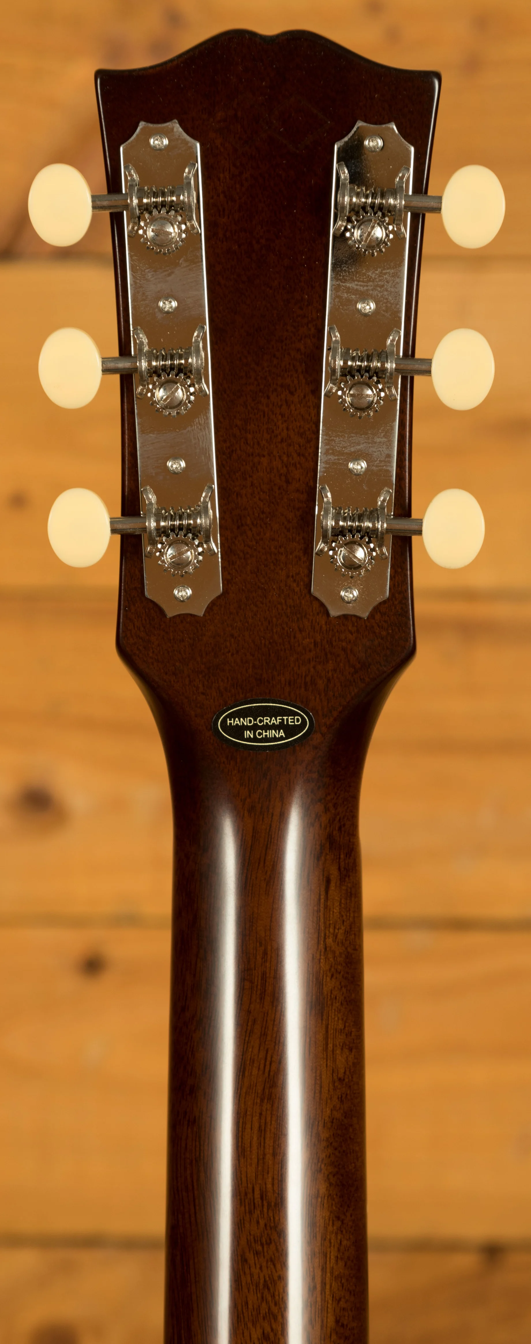 A rich V shaped Mahogany neck features an Indian Laurel fingerboard, with a 12" radius, 24.75" scale length, 44mm Nut Width, Bone nut, mother of pearl dot inlays and the iconic banner headstock logo. It is supremely comfortable and makes playing incredibly fun. This incredible Inspired by Gibson Custom model features the iconic Gibson headstock, the attention to detail is truly incredible!