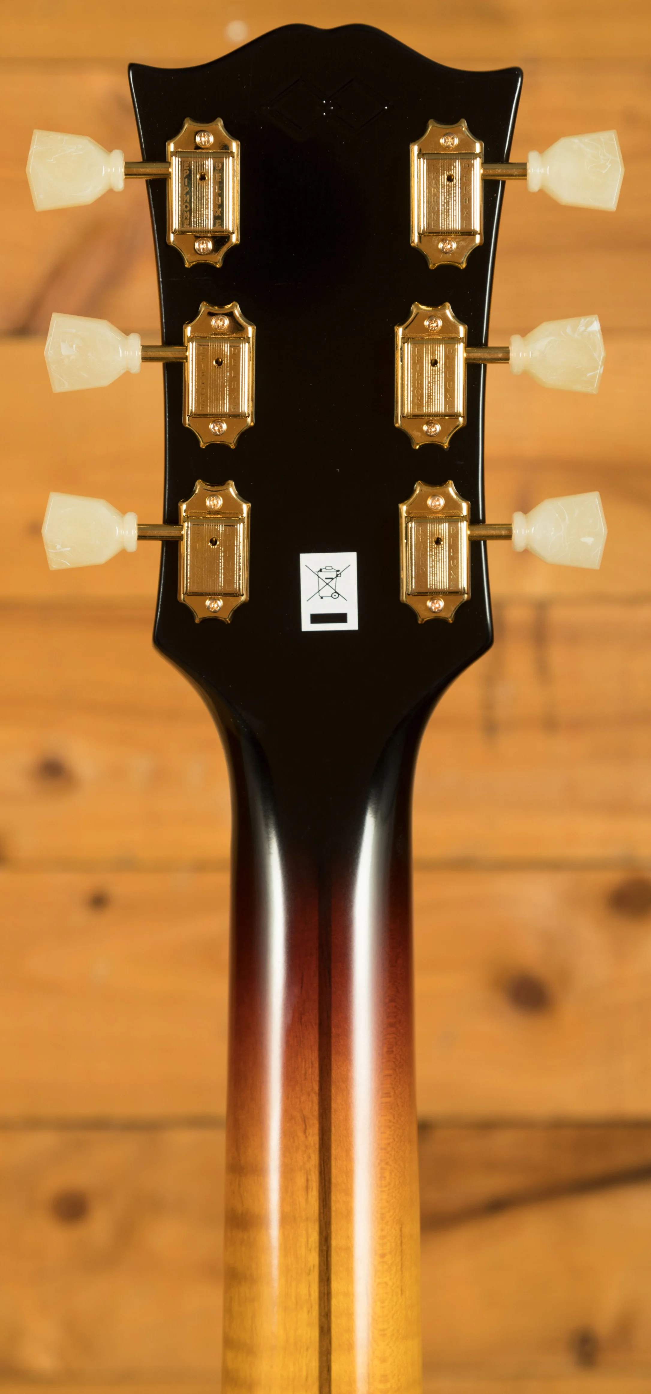 The neck is crafted from two-piece flame maple with a walnut stringer. The figured maple looks stunning and gives this guitar a really premium feel. Seeing a neck like this on a guitar at this price point is being rare these days, so this is awesome to see. The c-profile is super comfortable and feels great, if you like classic Gibson’s, then you’re sure to feel right at home. The bound Indian Rosewood fingerboard is dark in colour and features a 25.5” scale length, 20 frets, a 43.79mm nut width, and mother-of-pearl graduated crown inlays.