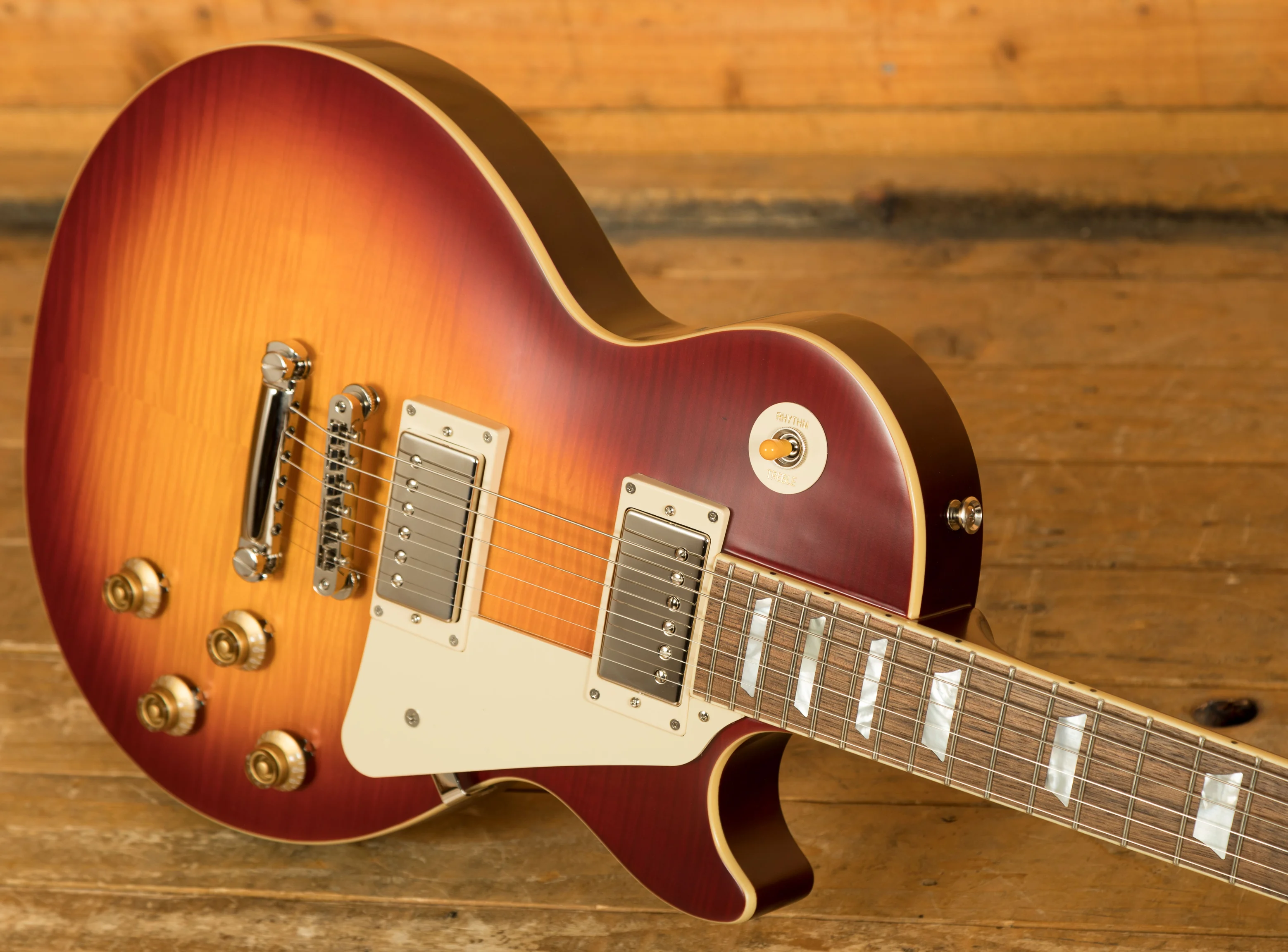 Designed for both functionality and aesthetics, the 1959 Les Paul Standard boasts a non-bevelled pickguard that complements its timeless appearance. It is equipped with new Epiphone Deluxe vintage tuners, providing excellent tuning stability and ease of use. The ABR-1 bridge and Gibson stop bar ensure optimum intonation and sustain, allowing you to unleash your creativity with confidence.