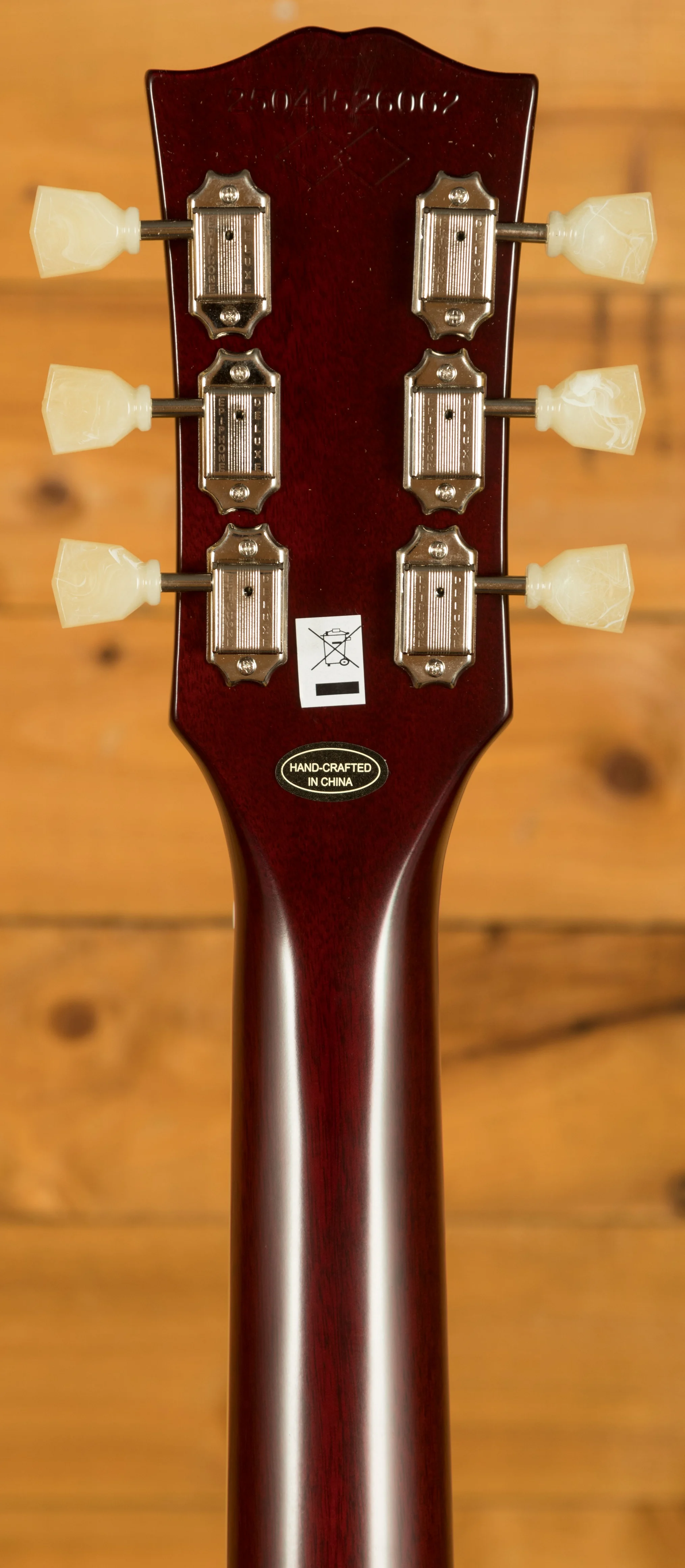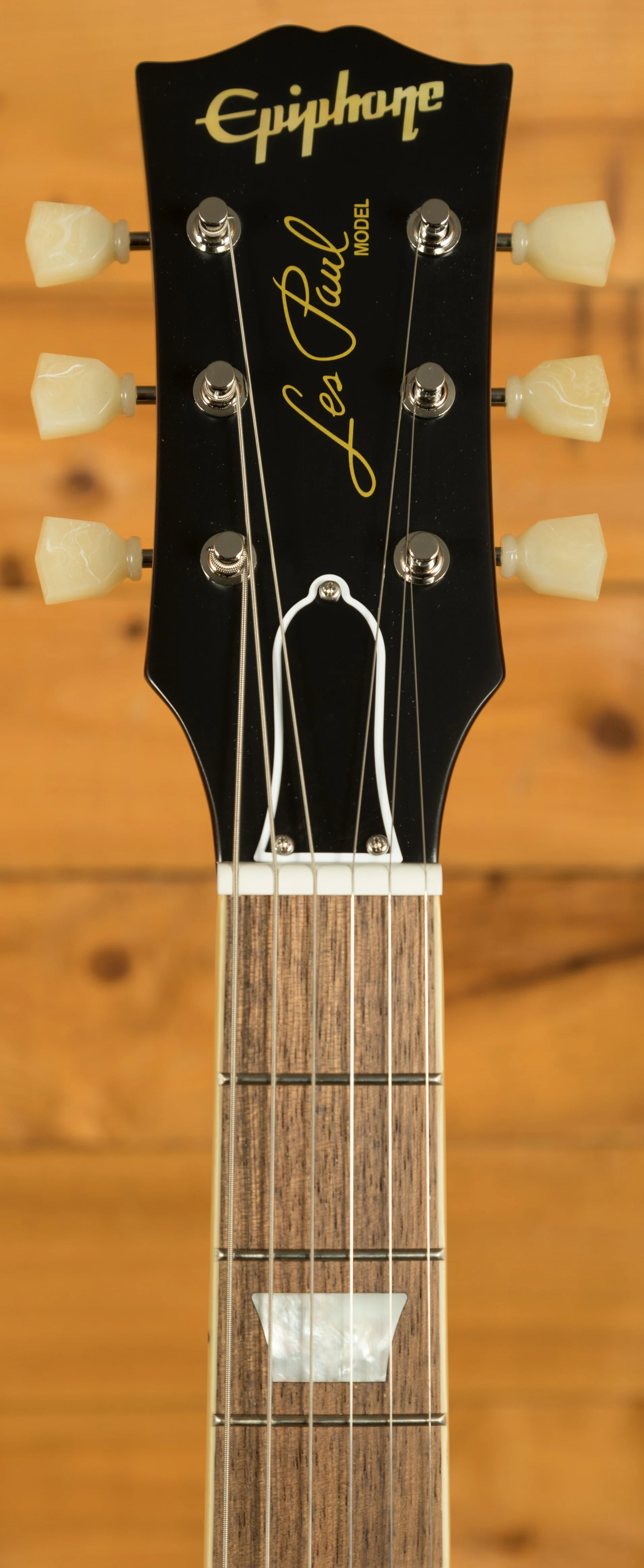 Embracing tradition, this extraordinary instrument features a comfortable 1959 rounded medium C neck profile, complete with a long neck tenon for enhanced sustain and stability. The neck is skilfully crafted to deliver an effortless playing feel, allowing your fingers to glide along the smooth and luxurious laurel fingerboard. With 22 frets at your disposal, you'll find effortless access to every note and bend, unlocking a world of expressive possibilities. This incredible Inspired by Gibson Custom model features the iconic Gibson headstock, the attention to detail is truly incredible!