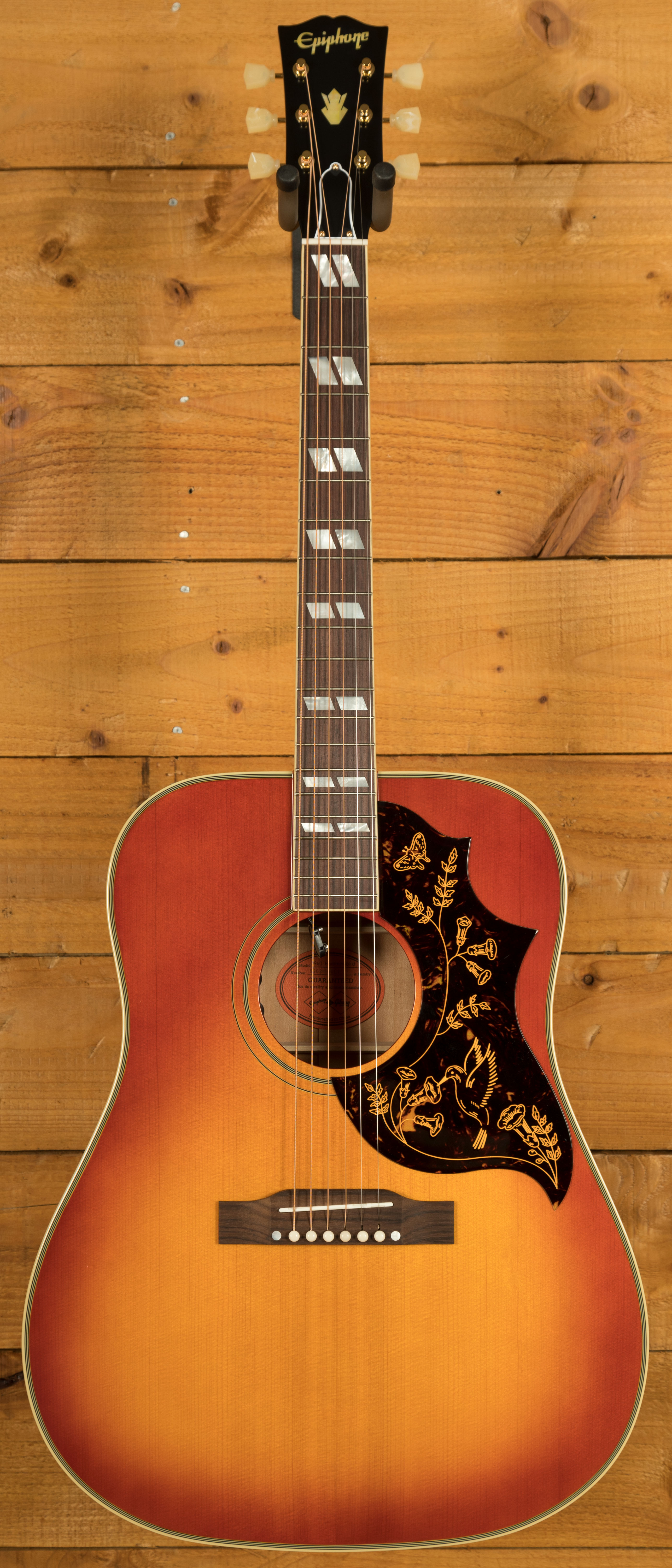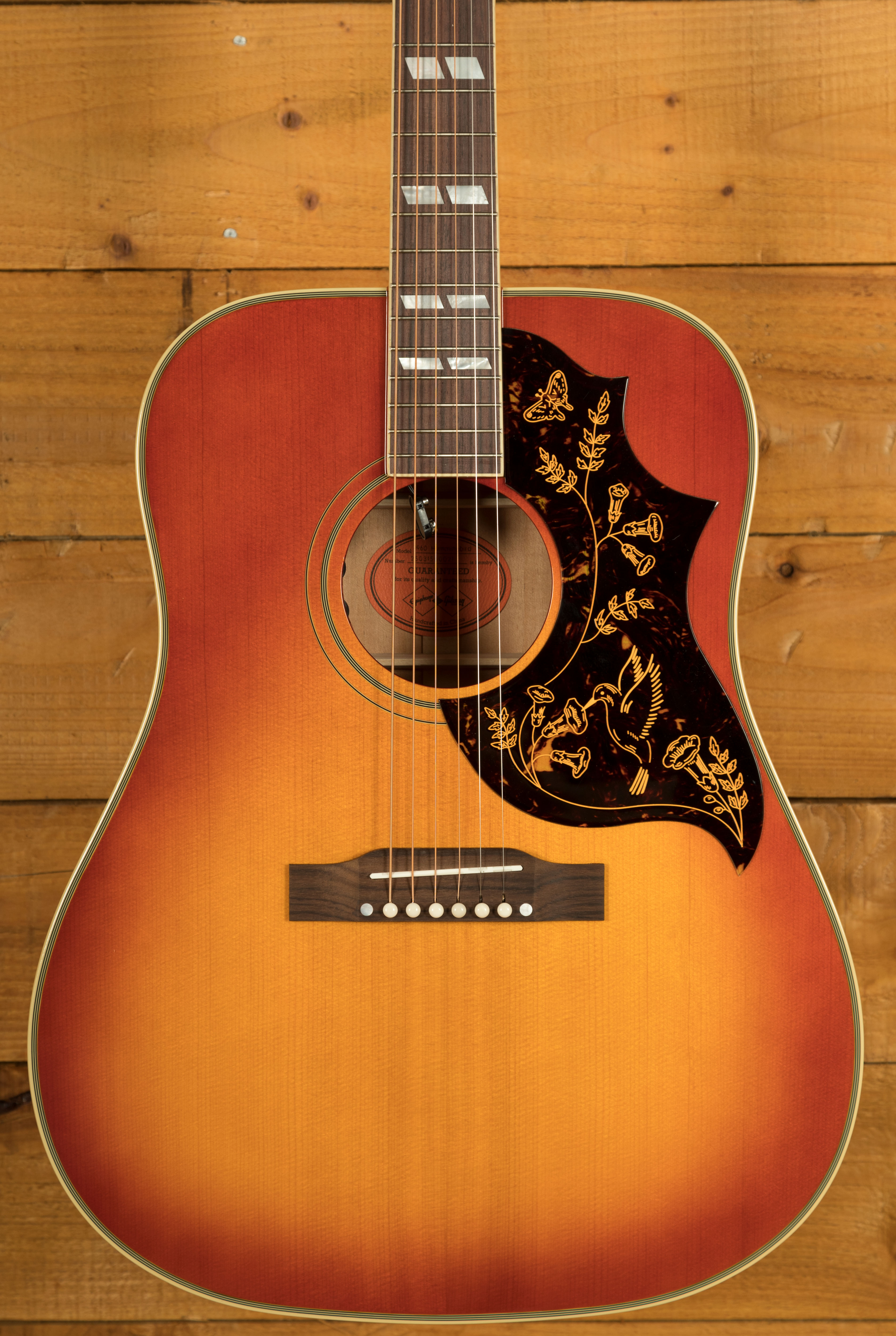 Epiphone, in partnership with Gibson Custom, is proud to introduce the 1960 Hummingbird Reissue, an Inspired by Gibson Custom model that faithfully captures the spirit of the original first-year Hummingbirds.