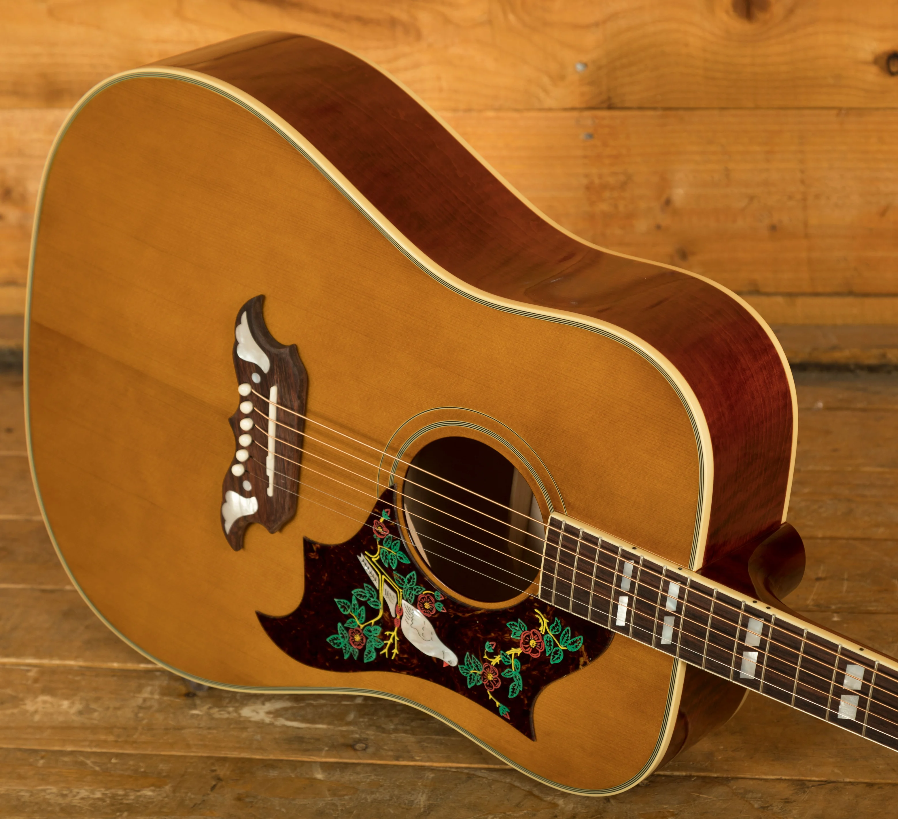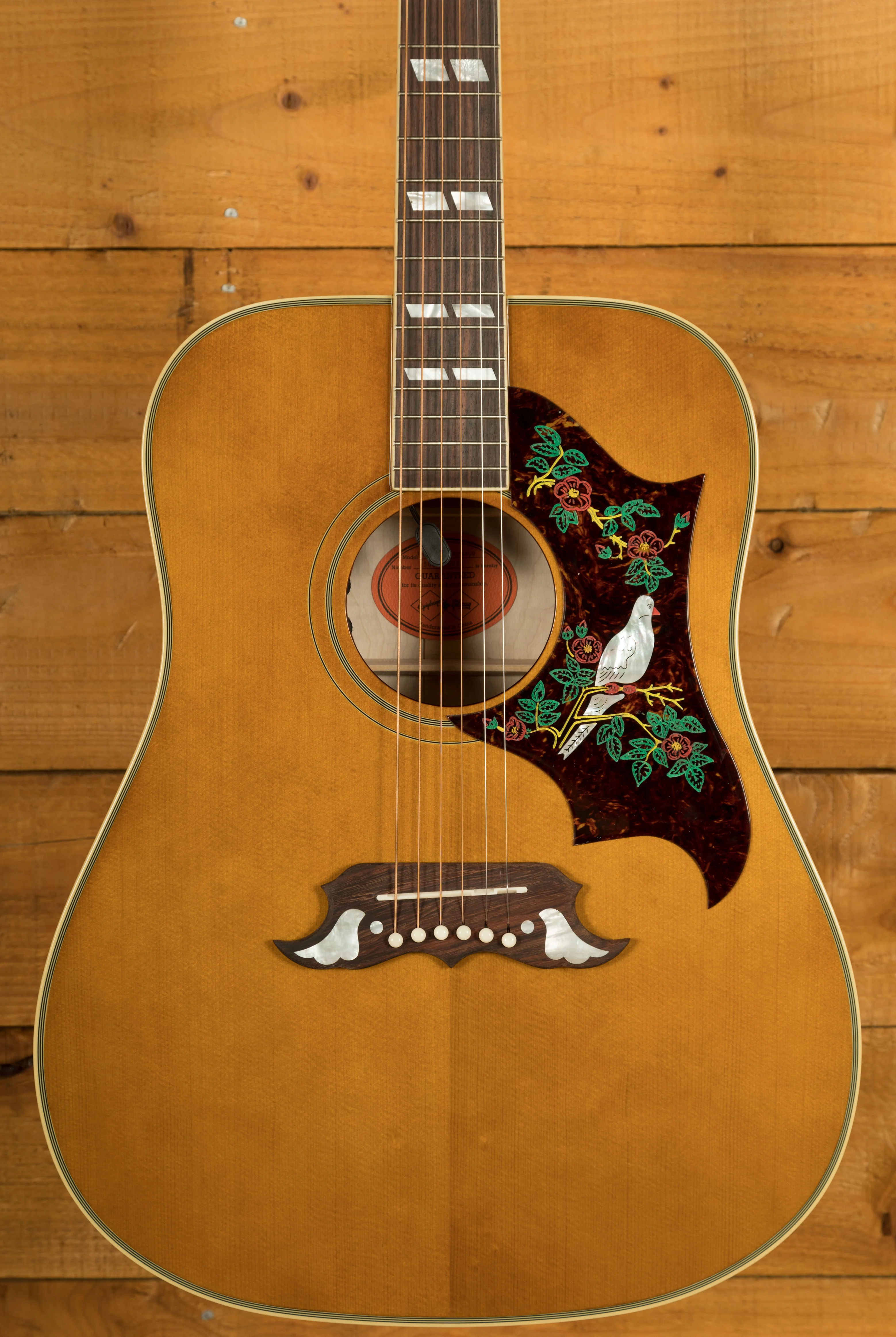 Originally released in 1962 as Gibson’s second square-shoulder acoustic after the Hummingbird, the Dove has become one of the most recognizable acoustic guitars in history. It’s been played by legends like Elvis, Tom Petty, John Mellencamp, Alex Lifeson, Frank Hannon, and many others.
