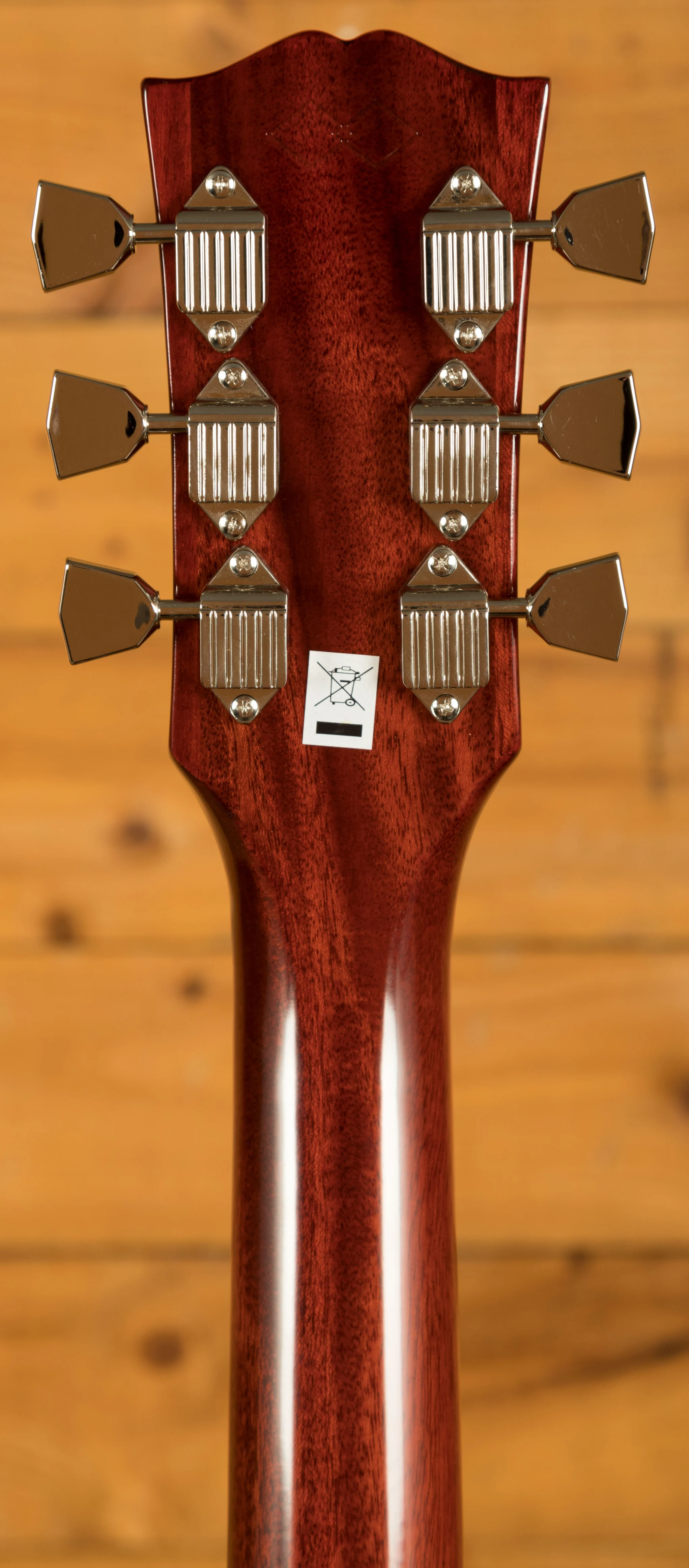 The one-piece mahogany neck features a 25.5” scale, a thermally aged finish, and a comfortable Rounded profile. It’s topped with a bound rosewood fretboard, fitted with 20 standard frets and decorated with split parallelogram inlays made from mother of pearl. The headstock showcases the classic Gibson-style "open book" shape, with the Inspired by Gibson Custom double diamond logo etched on the back.