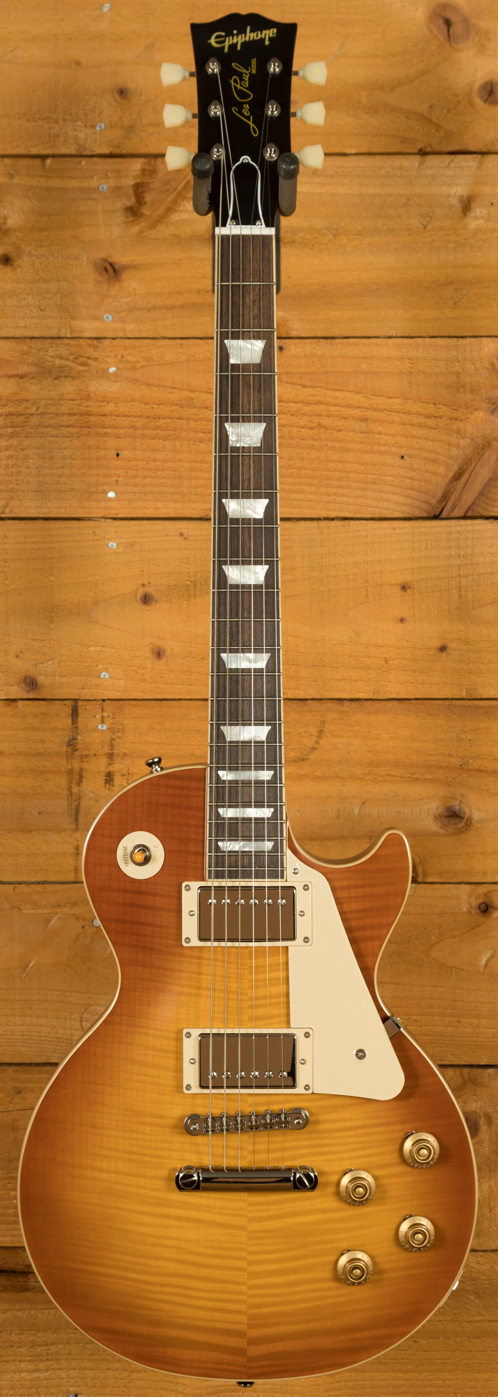 Designed for both functionality and aesthetics, the 1959 Les Paul Standard boasts a non-bevelled pickguard that complements its timeless appearance. It is equipped with new Epiphone Deluxe vintage tuners, providing excellent tuning stability and ease of use. The ABR-1 bridge and Gibson stop bar ensure optimum intonation and sustain, allowing you to unleash your creativity with confidence.