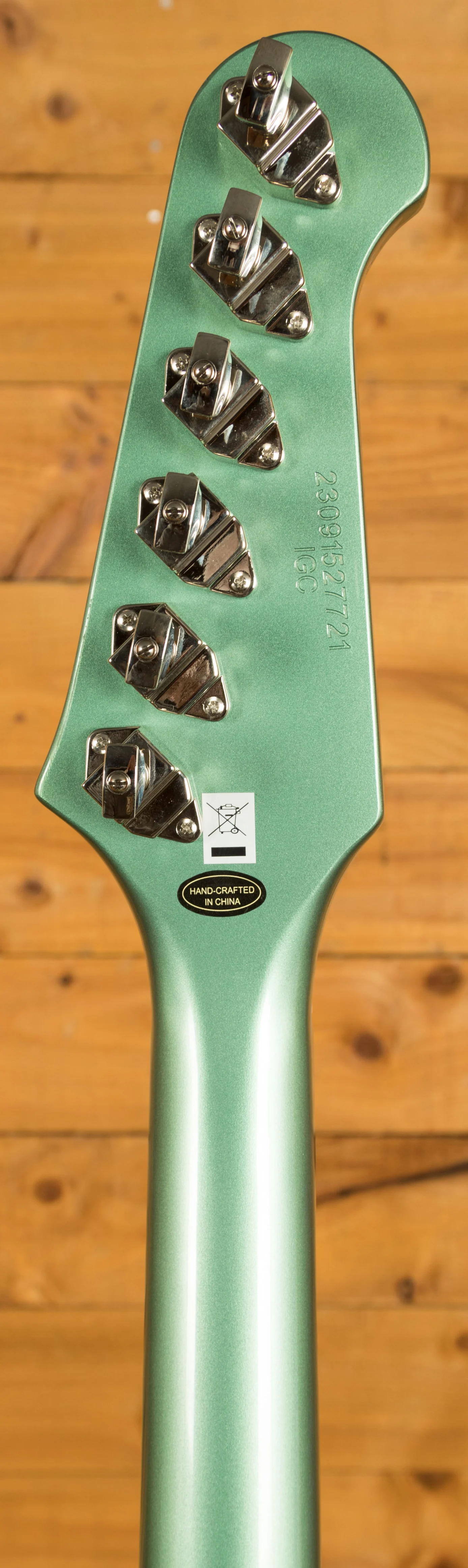 The Mahogany/Walnut neck through body is finished in a lush Inverness Green with a White pickguard for a fresh, vibrant appeal. It's resonant and nicely balanced too, despite its larger size.