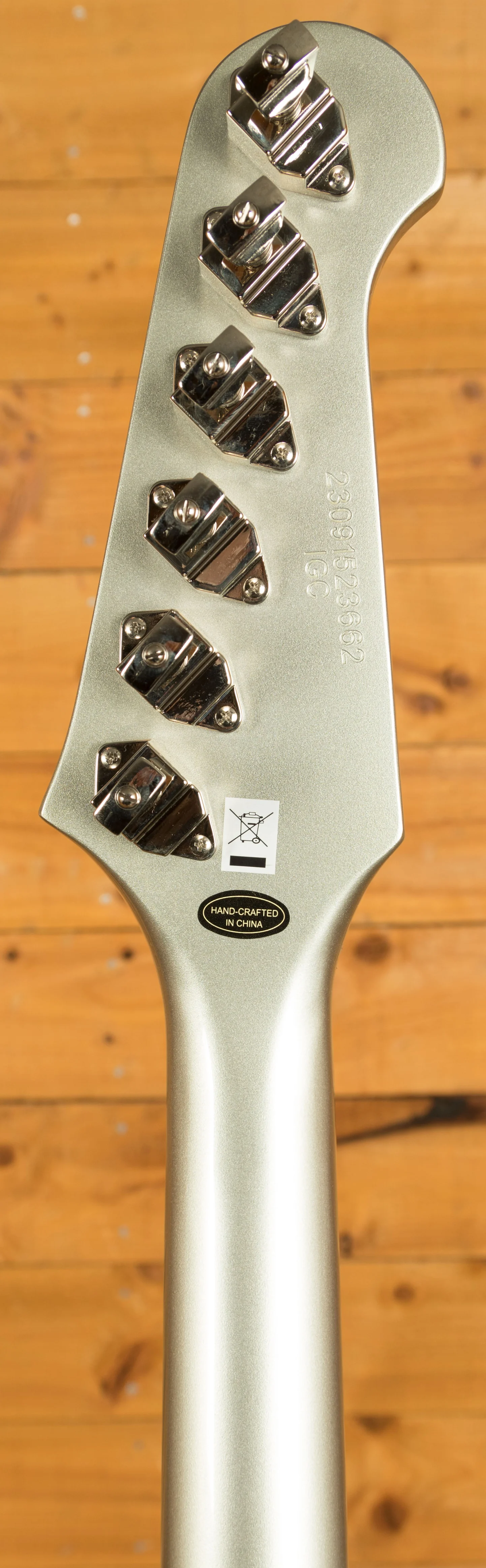 The Mahogany/Walnut neck through body is finished in a lush Silver Mist with a White pickguard for a fresh, vibrant appeal. It's resonant and nicely balanced too, despite its larger size.