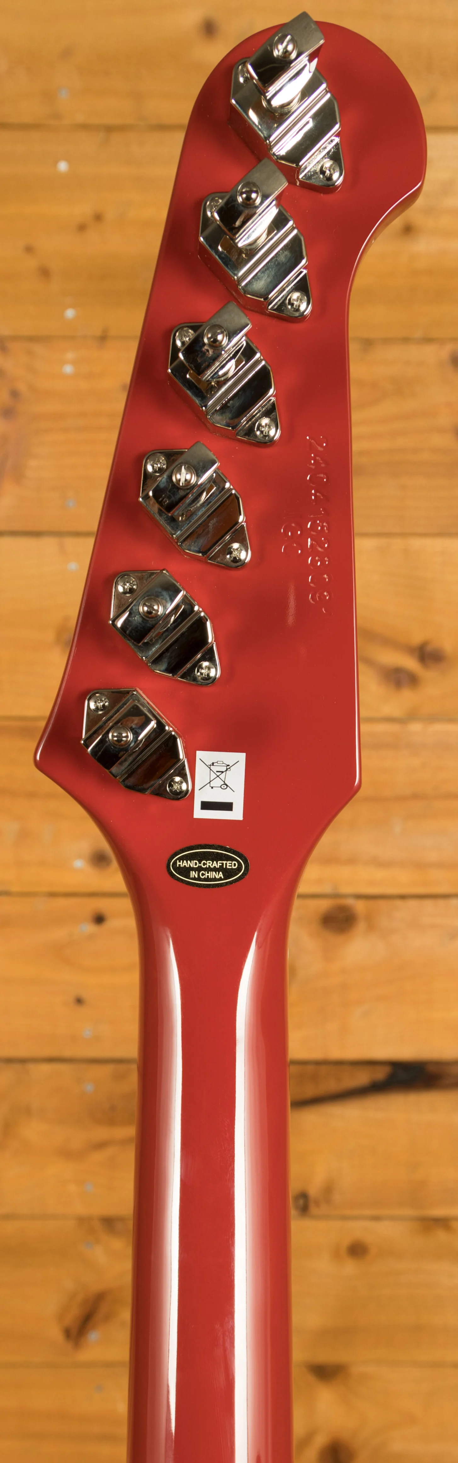Loaded with a pair of Gibson USA Firebird Mini Humbuckers this Firebird V delivers tone by the bucket load. With a really unique sonic character it is versatile, dynamic and offers crystal clear note definition. In classic Firebird V fashion this Epiphone is equipped with a traditional Maestro Vibrola, allowing for incredible tuning stability.