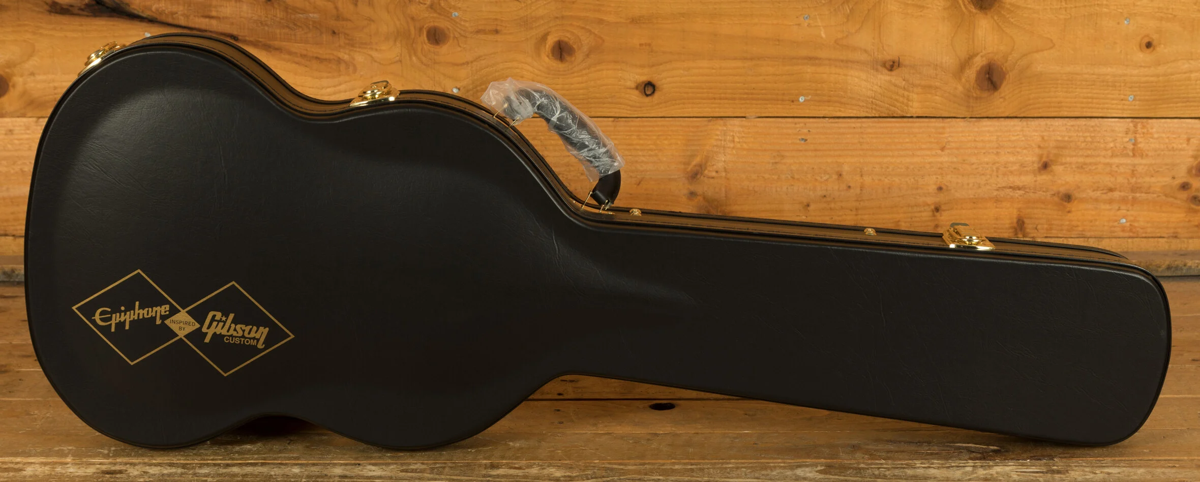 Embracing tradition, this extraordinary instrument features a comfortable SlimTaper neck profile, which is super comfortable and easy to navigate. The neck is skilfully crafted to deliver an effortless playing feel, allowing your fingers to glide along the smooth and luxurious Ebony fingerboard. With 22 frets at your disposal, you'll find effortless access to every note and bend, unlocking a world of expressive possibilities. This incredible Inspired by Gibson Custom model features the iconic Gibson headstock, the attention to detail is truly incredible!