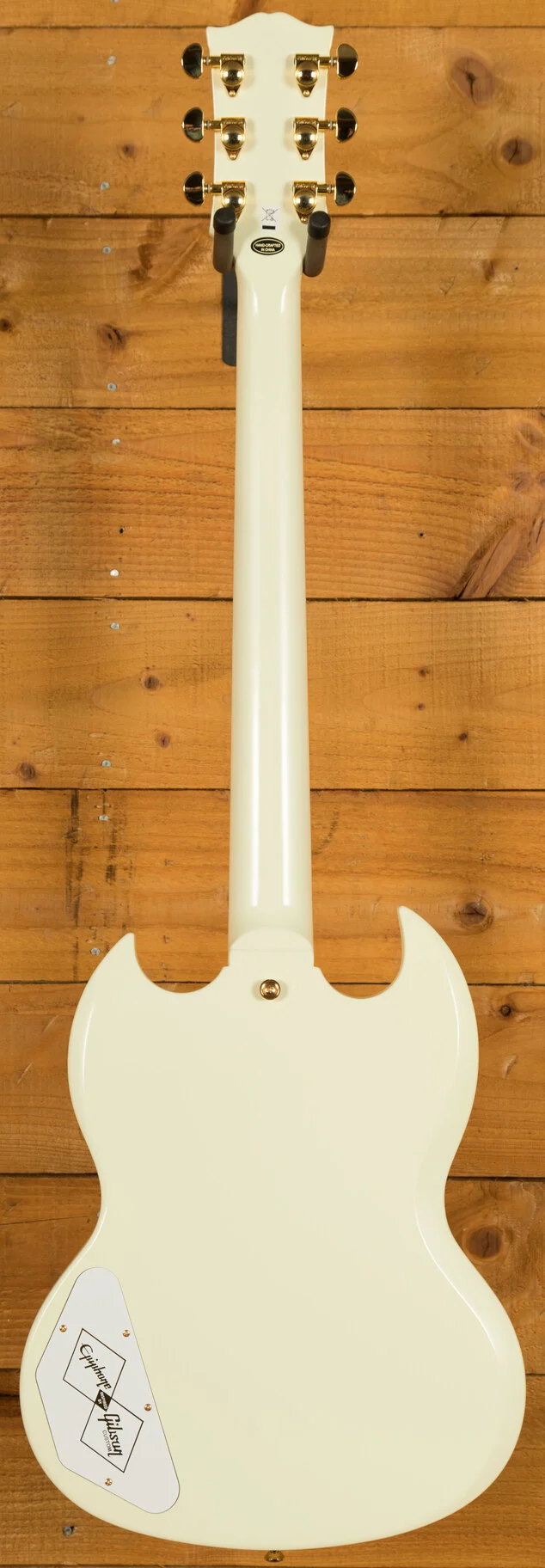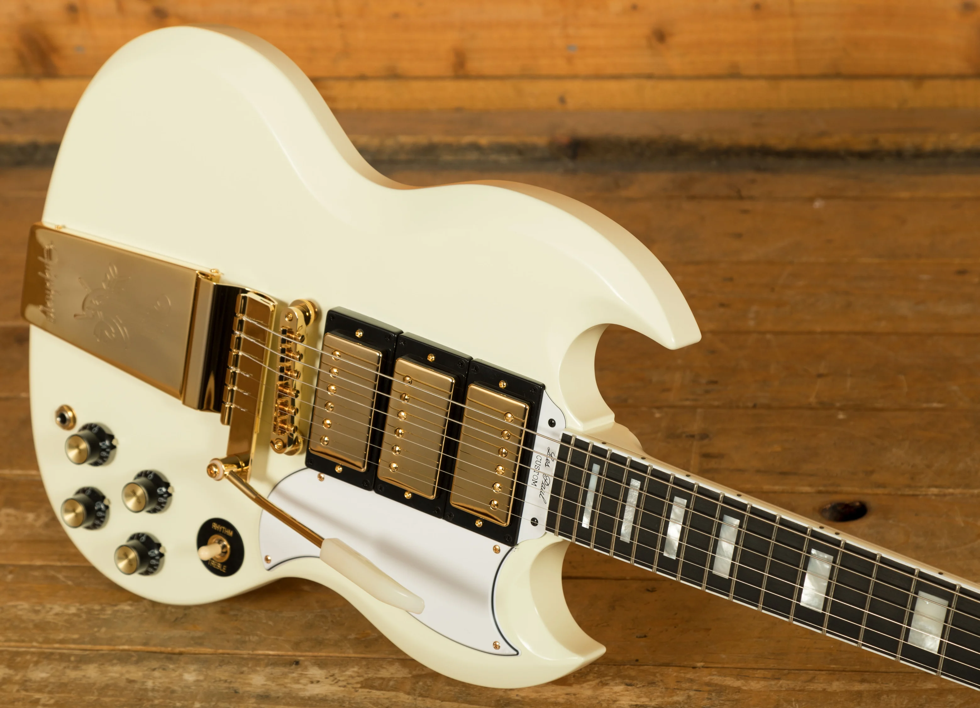 Every element of the 1963 Les Paul SG has been carefully considered to ensure an unparalleled playing experience. Its exquisite construction begins with a two piece solid Mahogany body, exuding a resonant warmth that forms the foundation of its rich tonal character. Finished in Classic White it looks super classy and is a brilliant tribute to this legendary model.