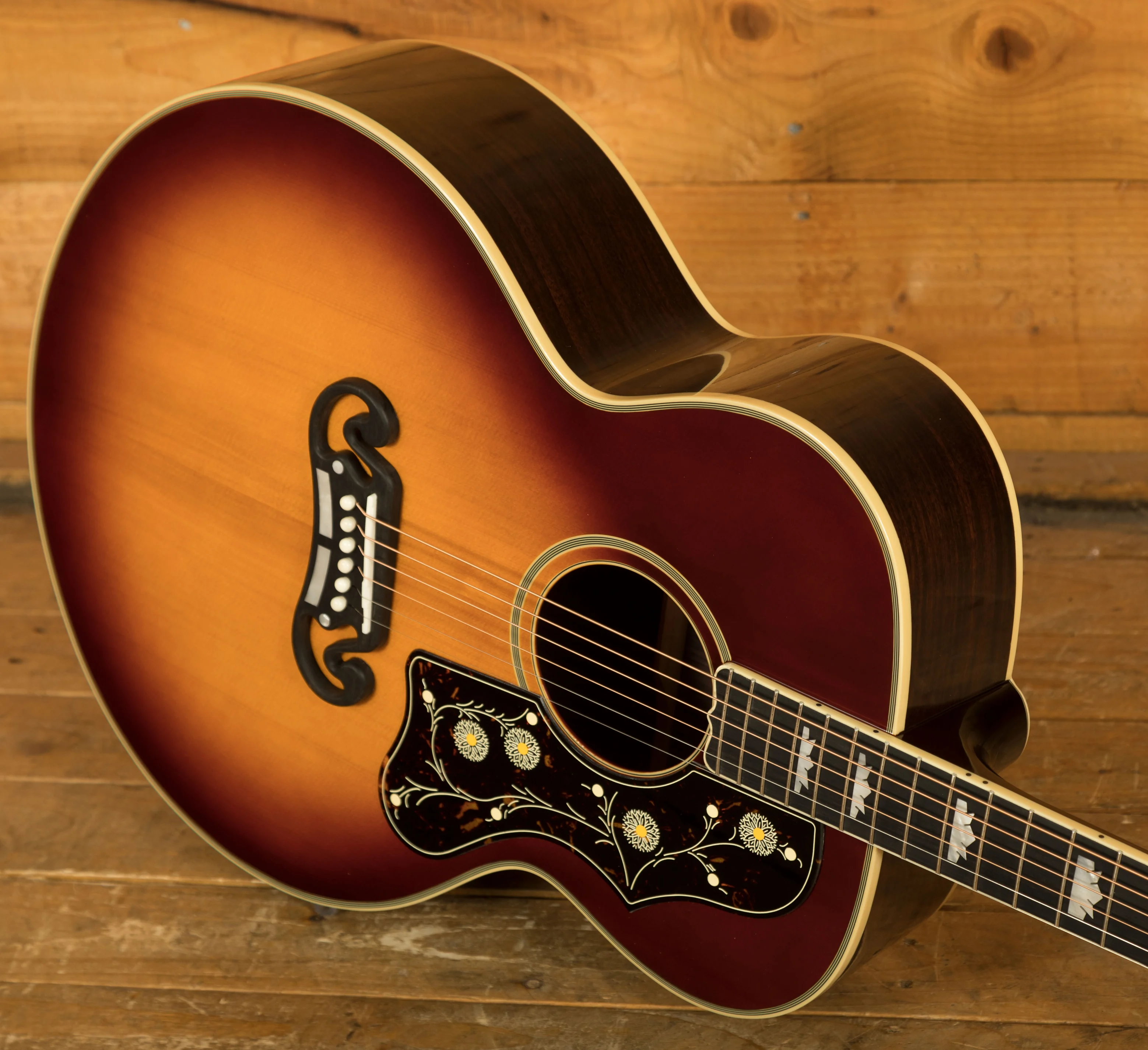 The Epiphone Pre-War SJ-200 is packed with vintage features, including solid rosewood back and sides, a thermally aged solid spruce top, and traditional scalloped X-bracing crafted from quarter-sawn solid spruce. All of which help to deliver the SJ-200s legendary powerful tone.