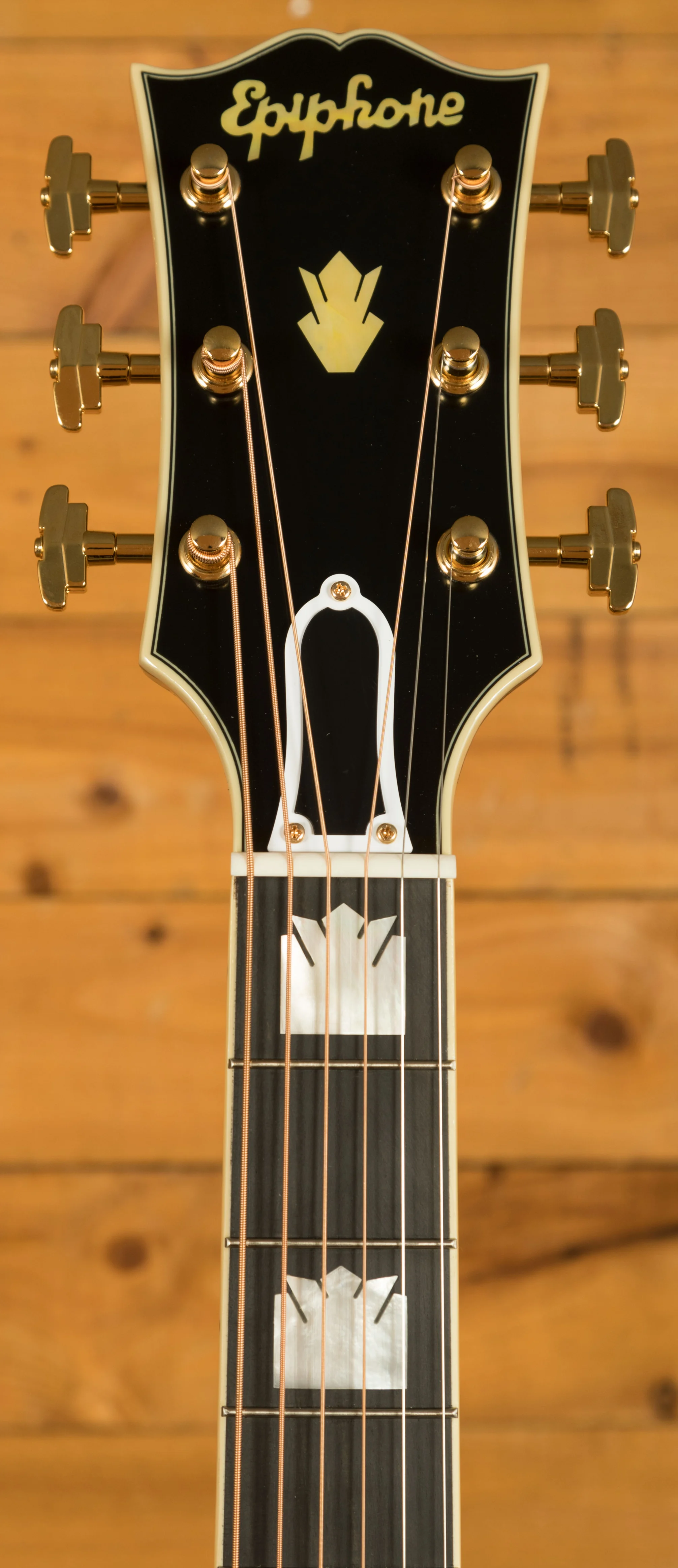 After its launch in 1937, the Gibson SJ-200 quickly earned the nickname “The King of the Flat-Tops” thanks to its exceptional sound, impressive size, powerful projection, and striking presence. The earliest SJ-200 models featured rosewood backs and sides, which were later changed to maple in 1947. Now, Epiphone has teamed up with Gibson Custom to craft an Inspired by Gibson Custom recreation of this vintage icon, making it more accessible for today’s players to enjoy.