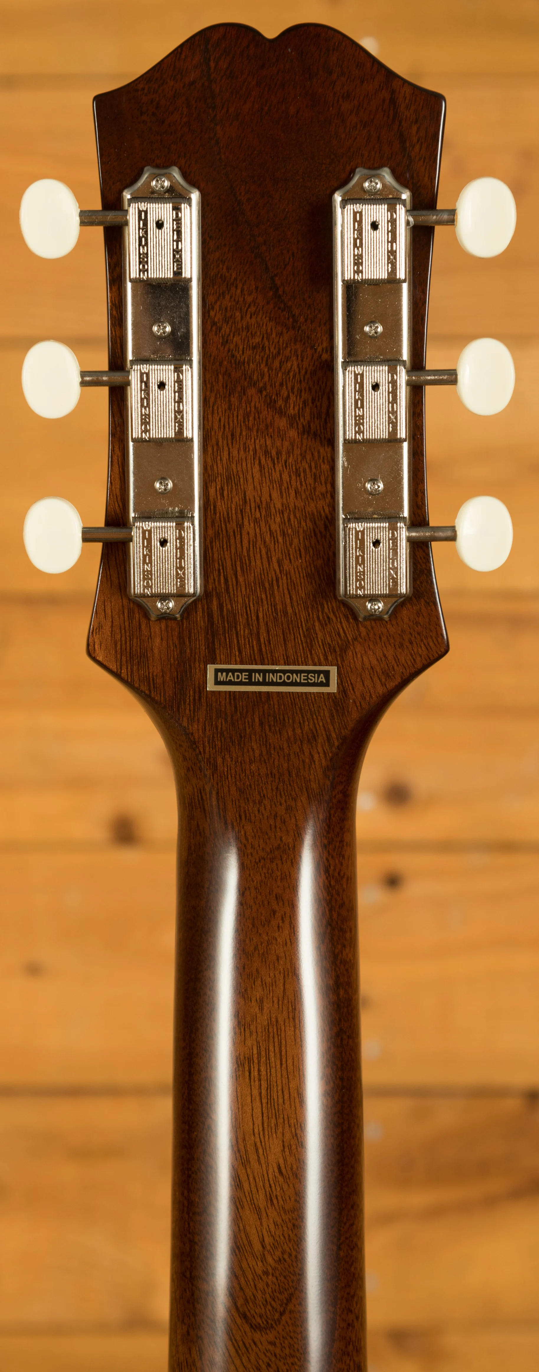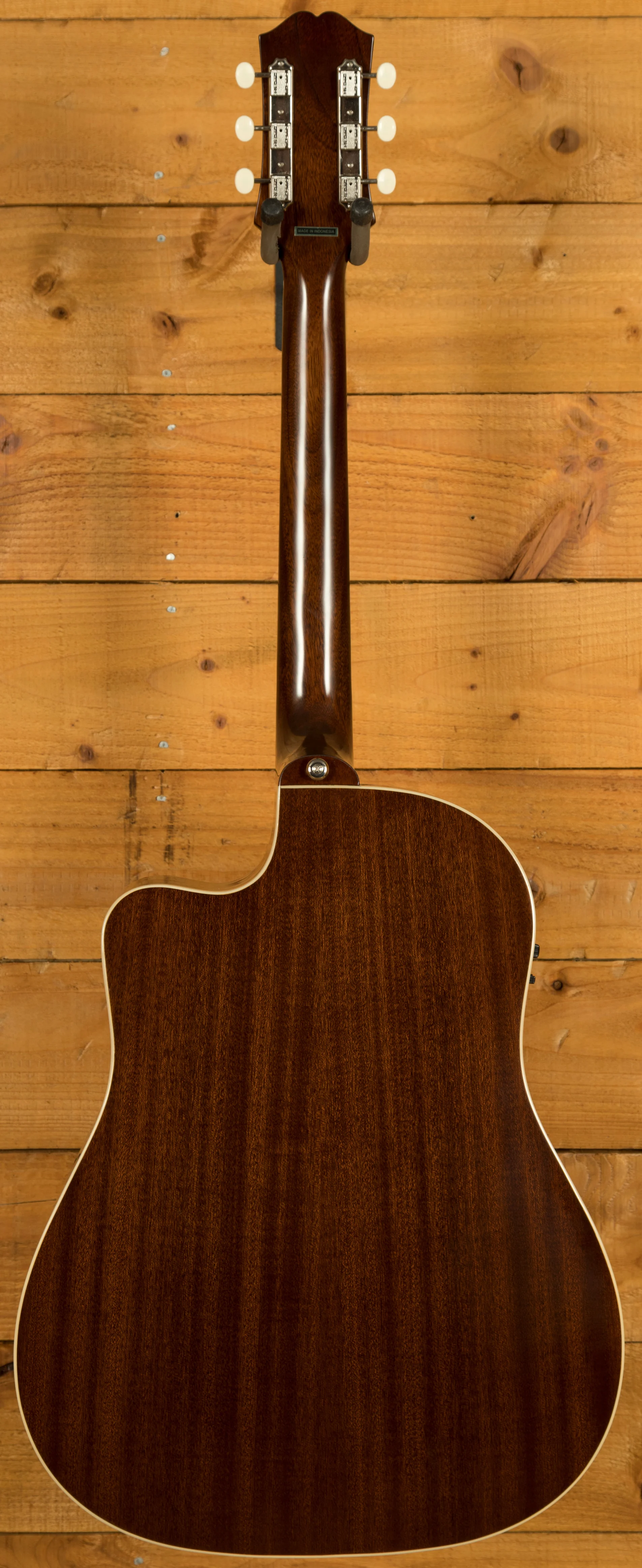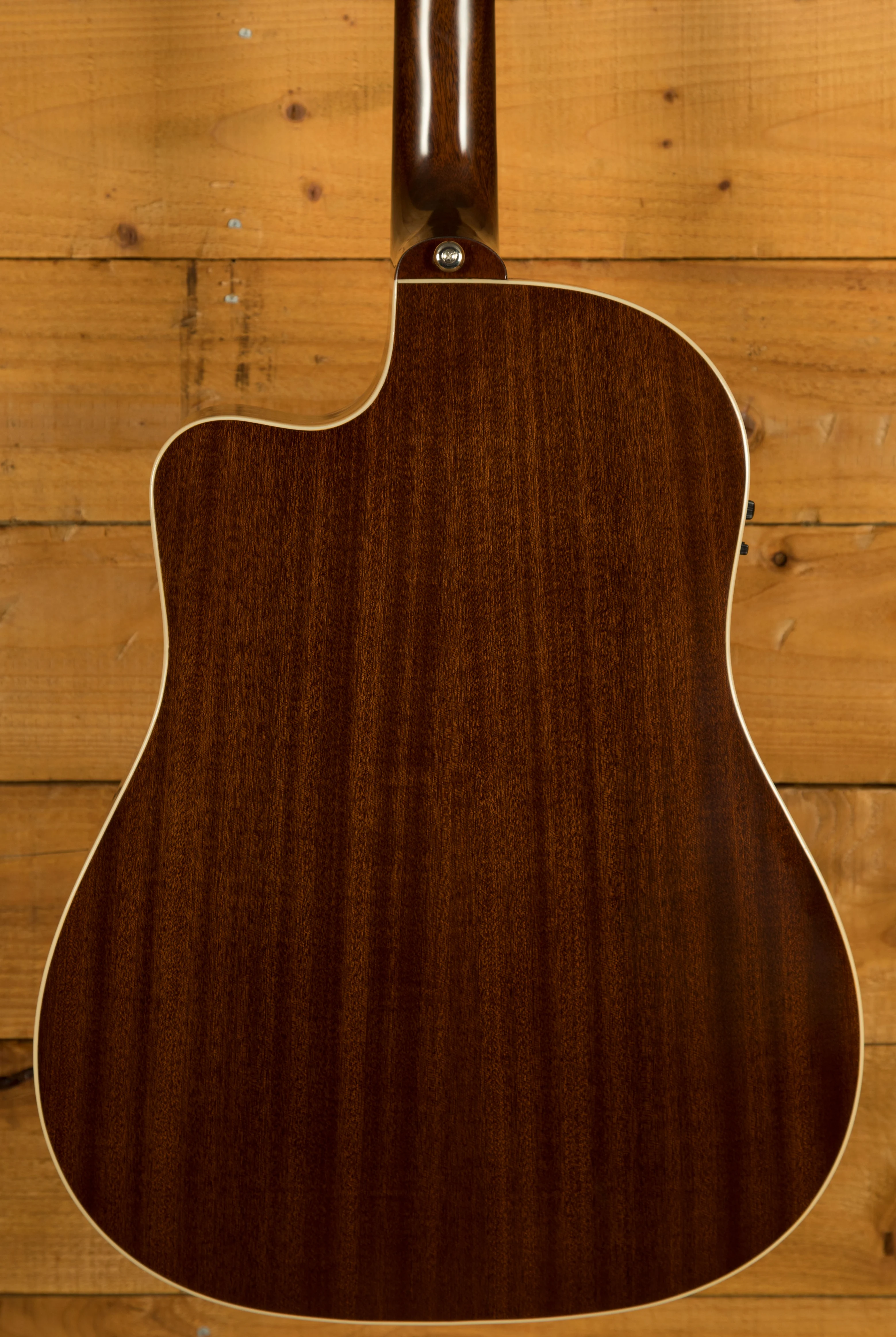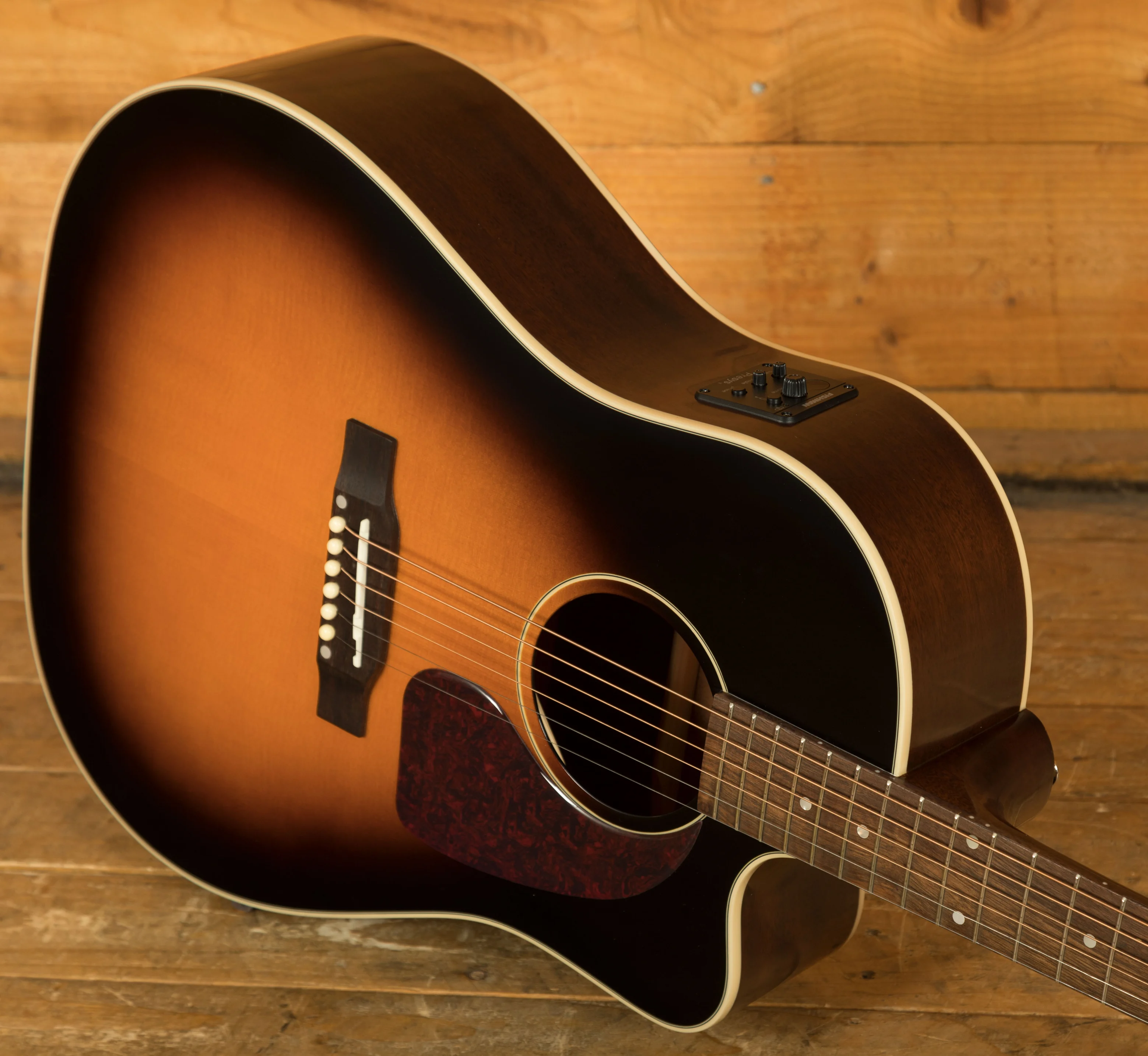 The slope shoulder Dreadnought body is beautifully crafted from super resonant Mahogany and boasts a lovely Spruce top. The Aged Vintage Sunburst finish offers a unique look and perfectly complements the faux tortoiseshell pickguard.