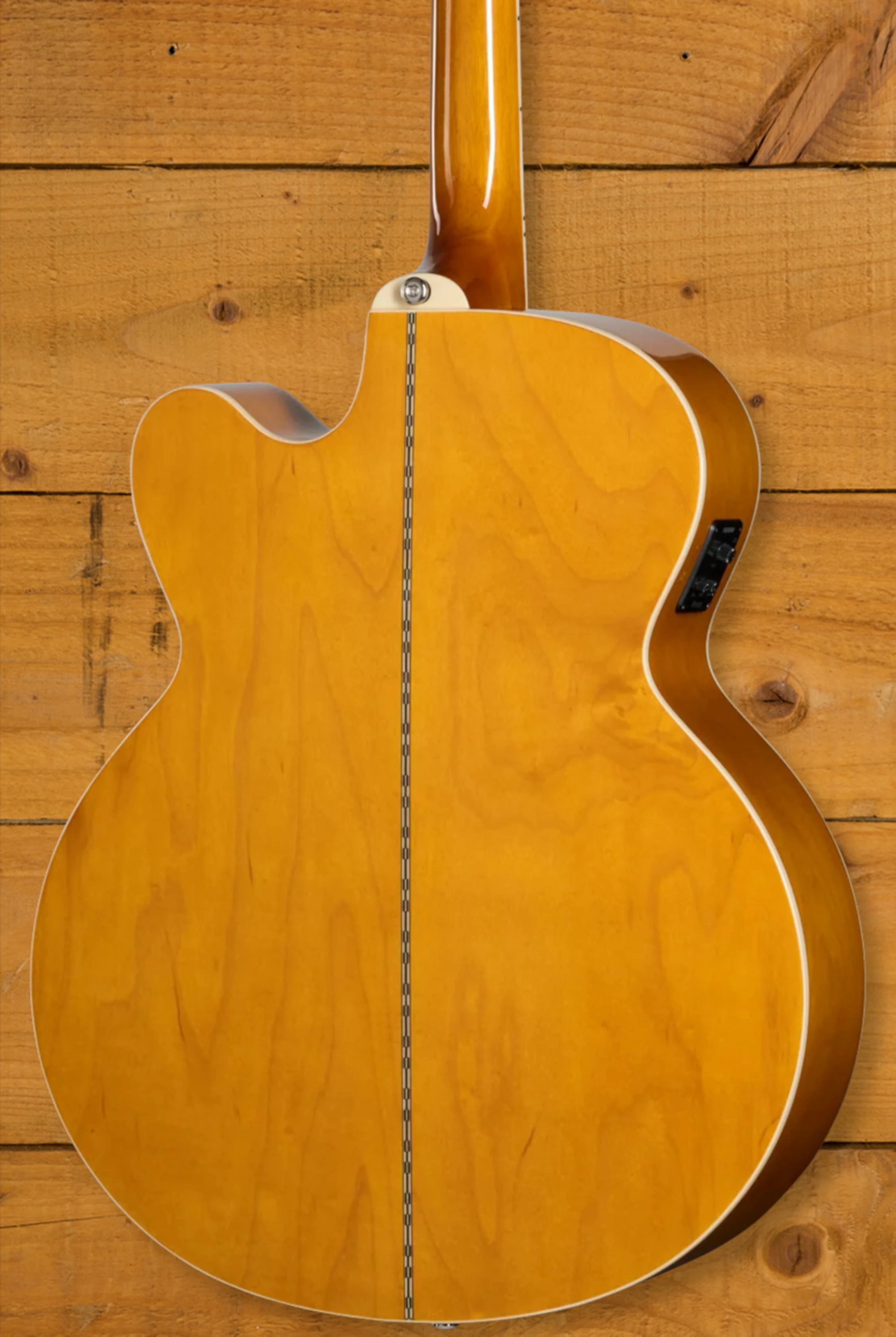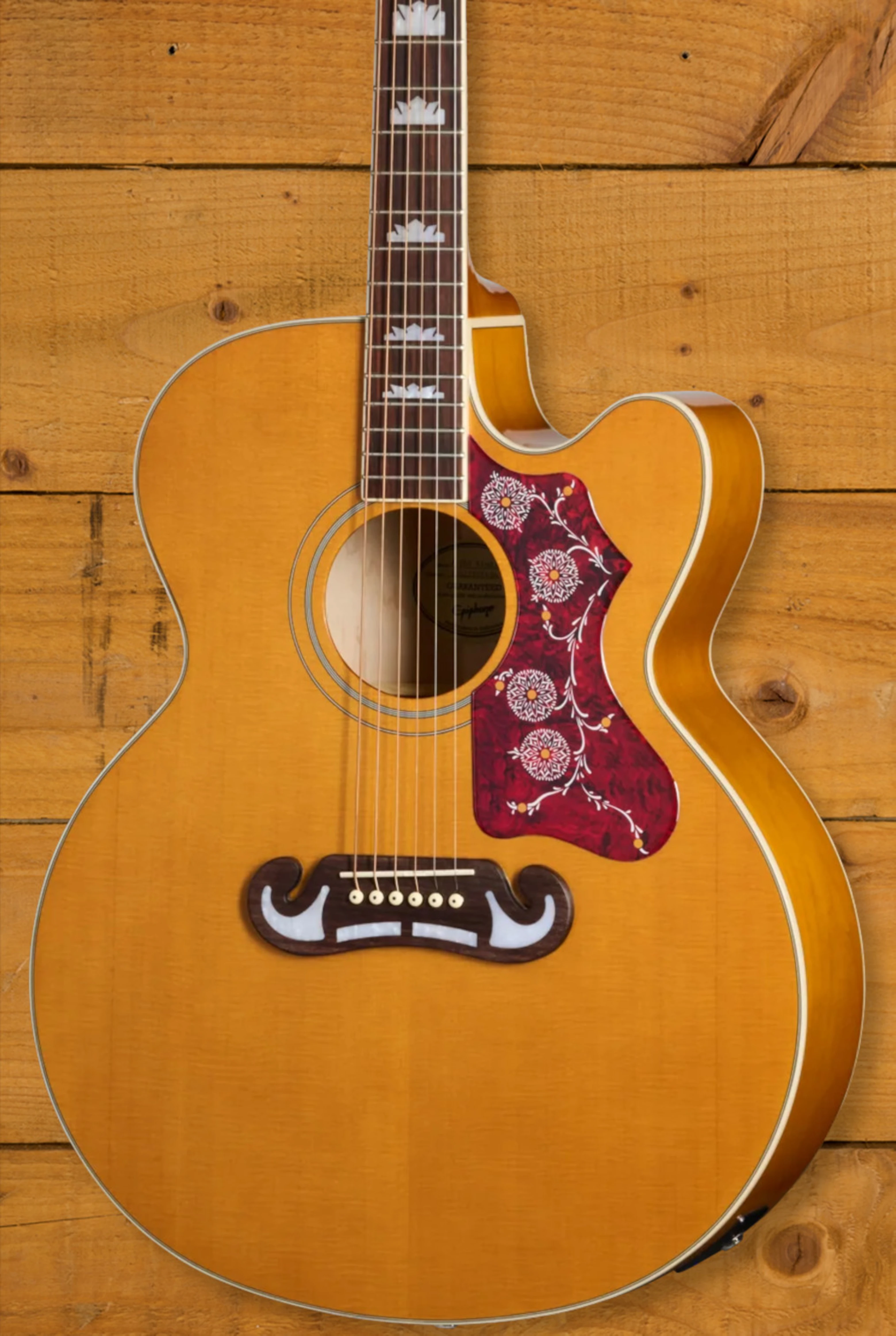 The Epiphone J-200 Studio EC in Natural brings a much loved Gibson acoustic design to players who want classic style and a bold, clear voice at an accessible price. As part of the new Epiphone Studio Acoustic Collection, it takes inspiration from the original Gibson SJ-200, a super jumbo known for its impressive projection but with a cutaway for easier access to the higher frets.