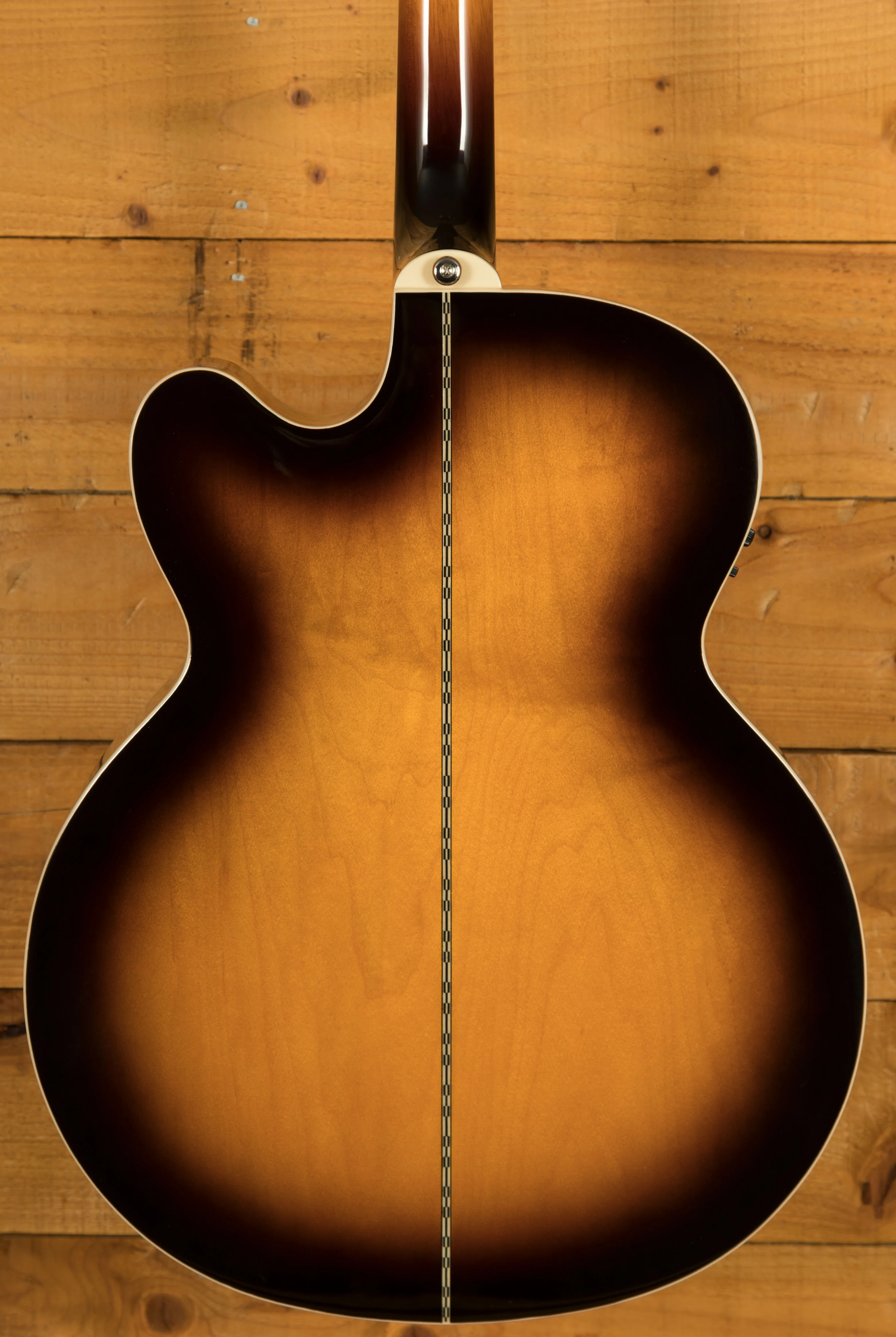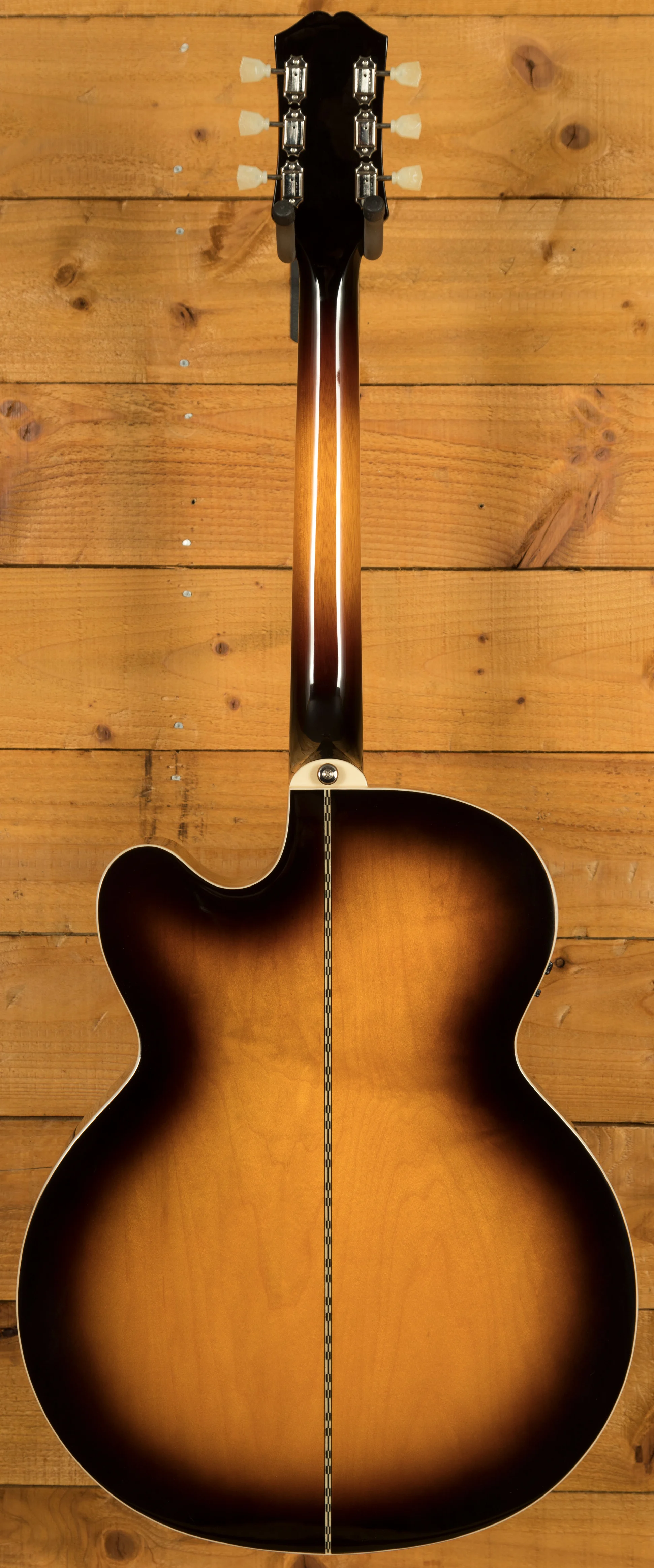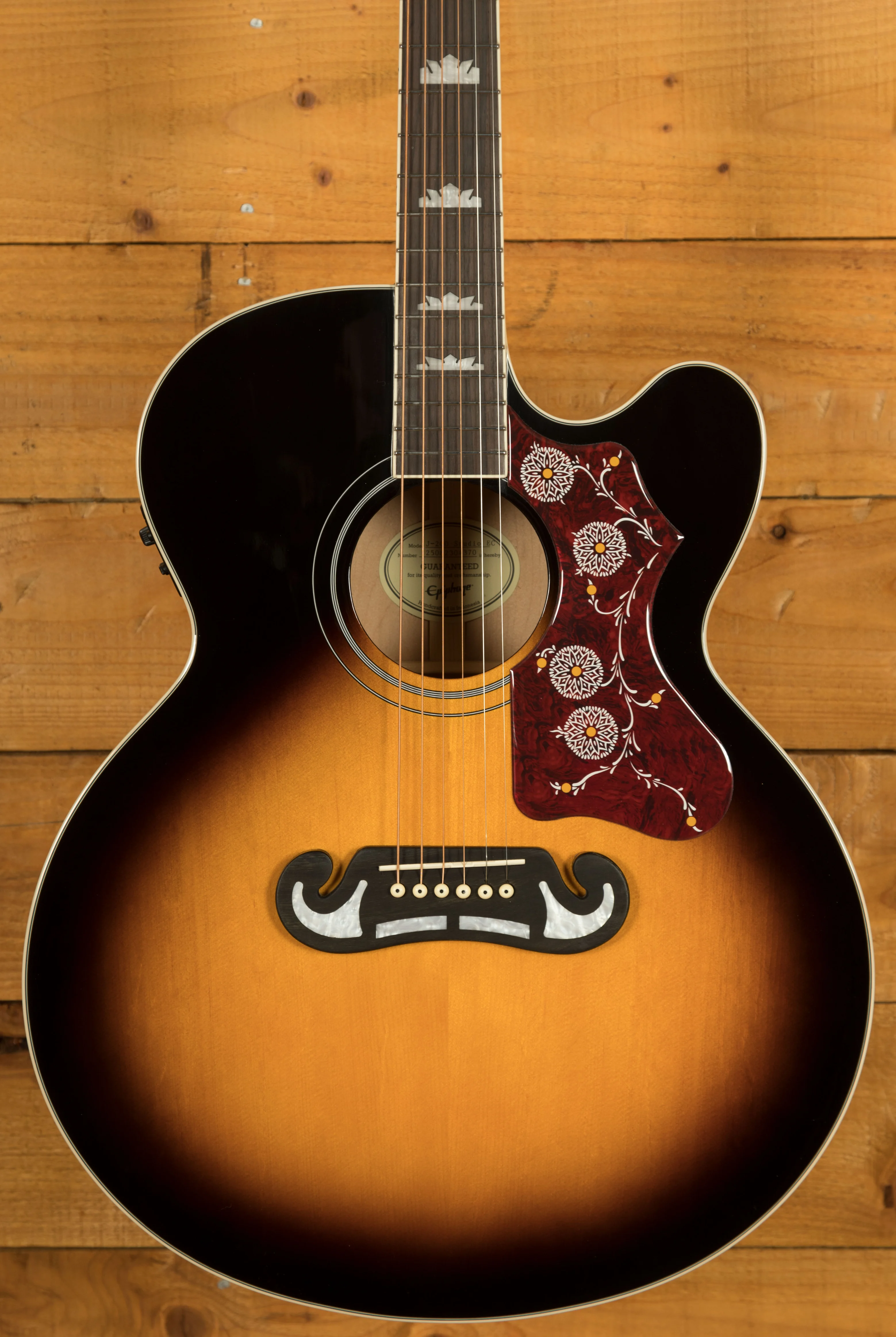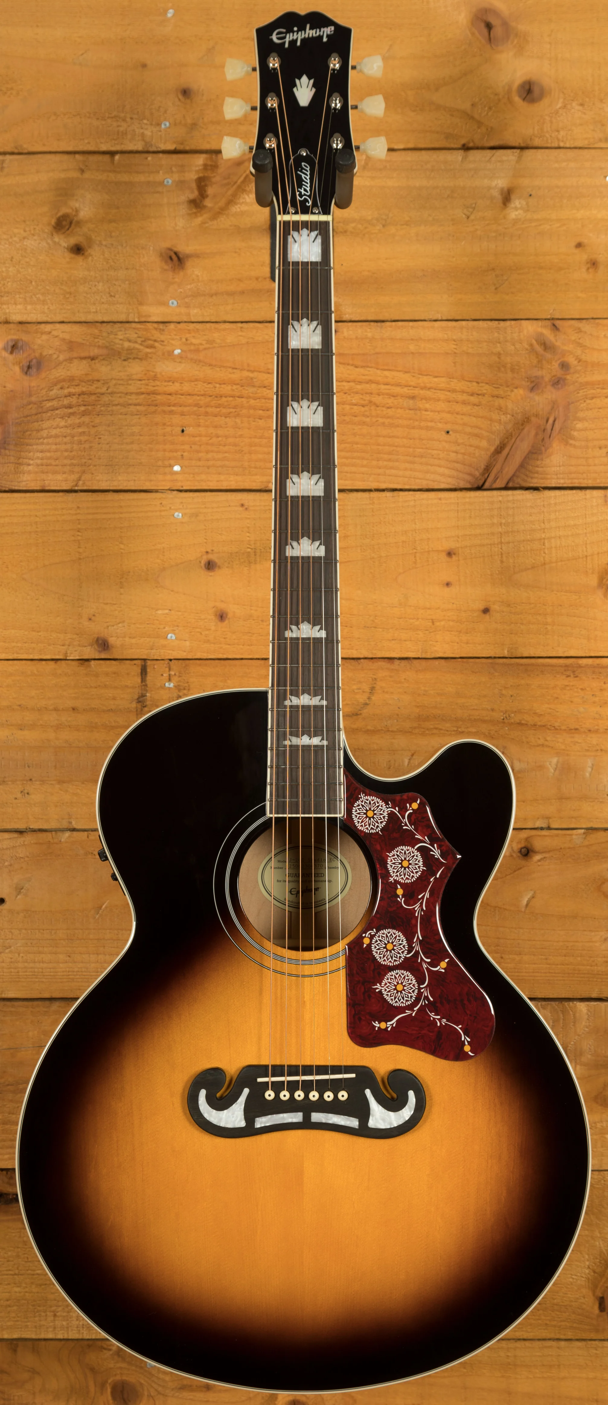 The Epiphone J-200 Studio EC in Vintage Sunburst brings a much loved Gibson acoustic design to players who want classic style and a bold, clear voice at an accessible price. As part of the new Epiphone Studio Acoustic Collection, it takes inspiration from the original Gibson SJ-200, a super jumbo known for its impressive projection but with a cutaway for easier access to the higher frets.