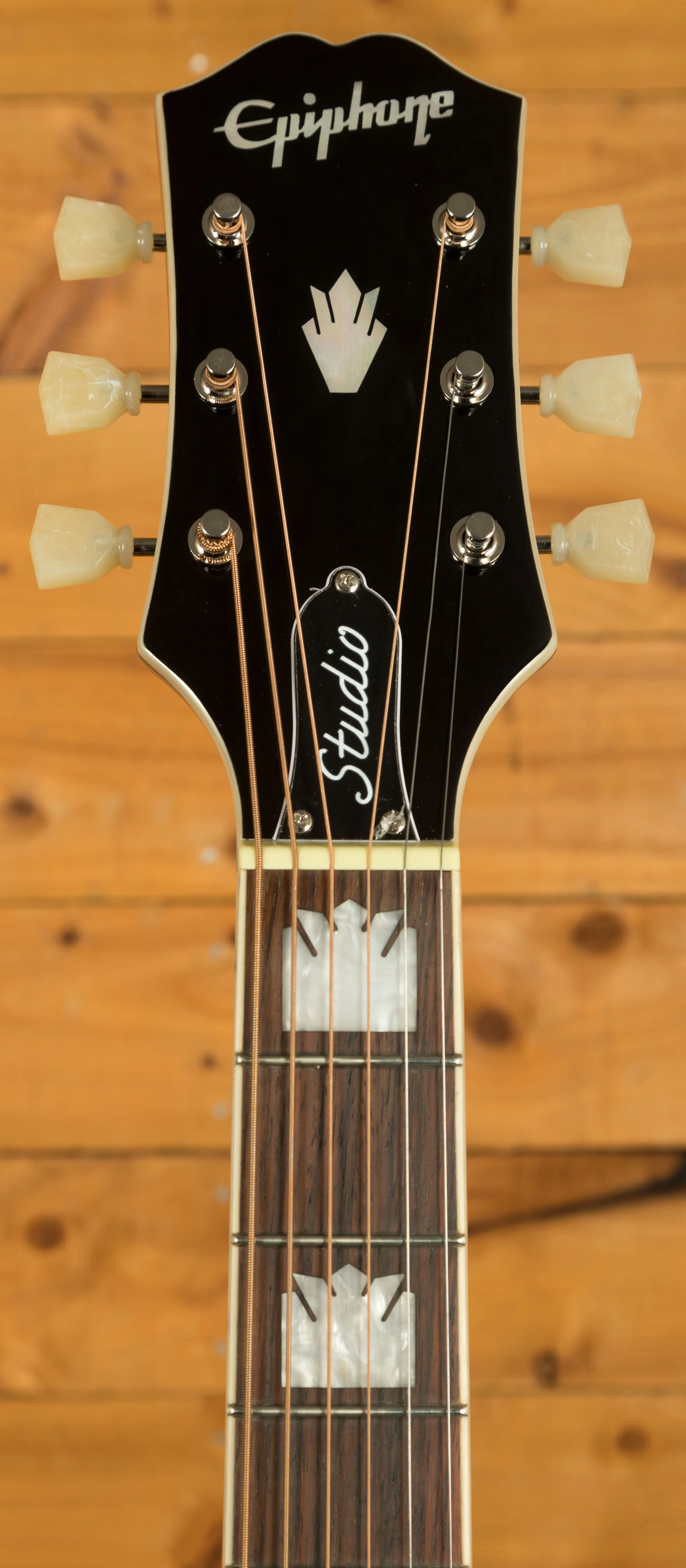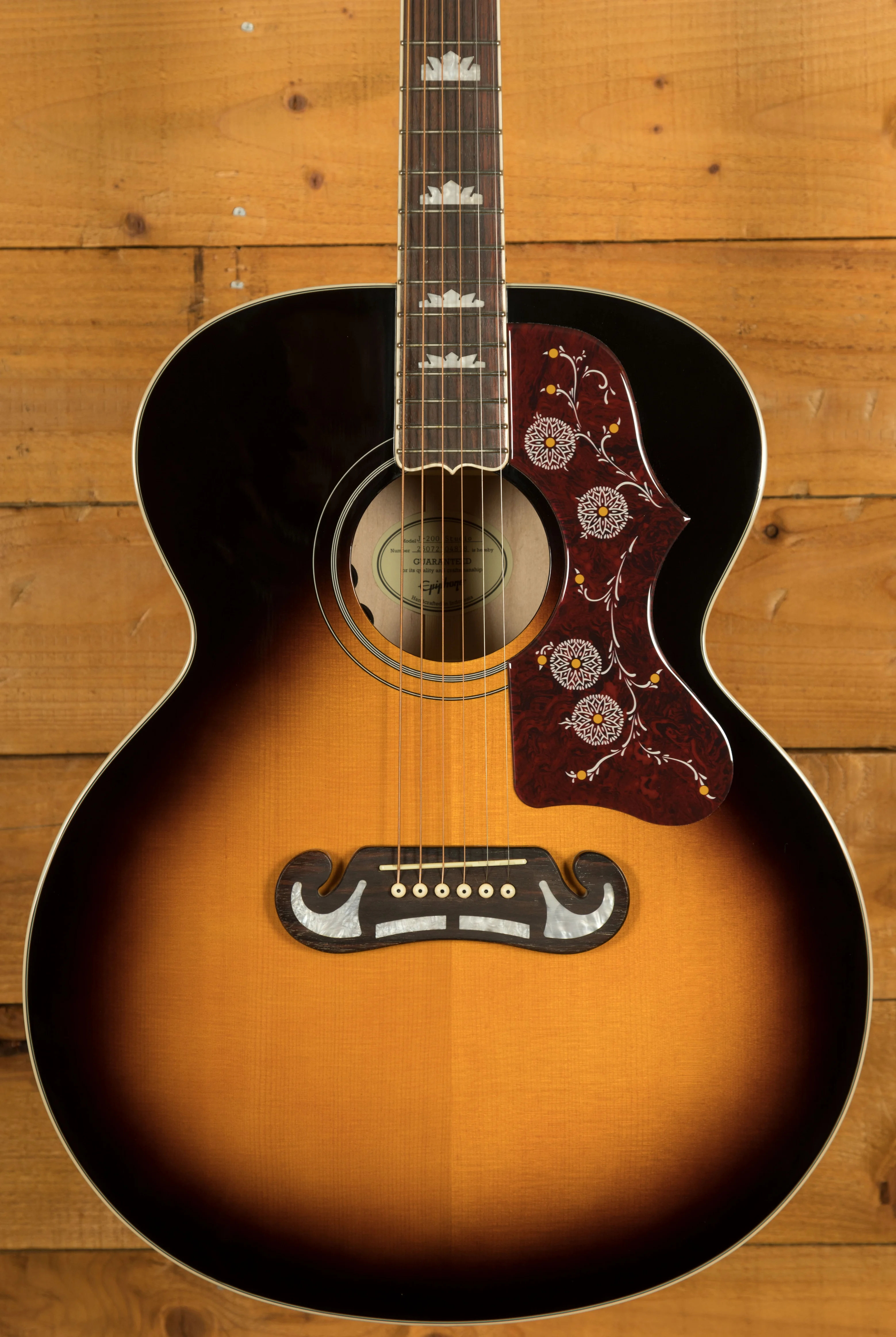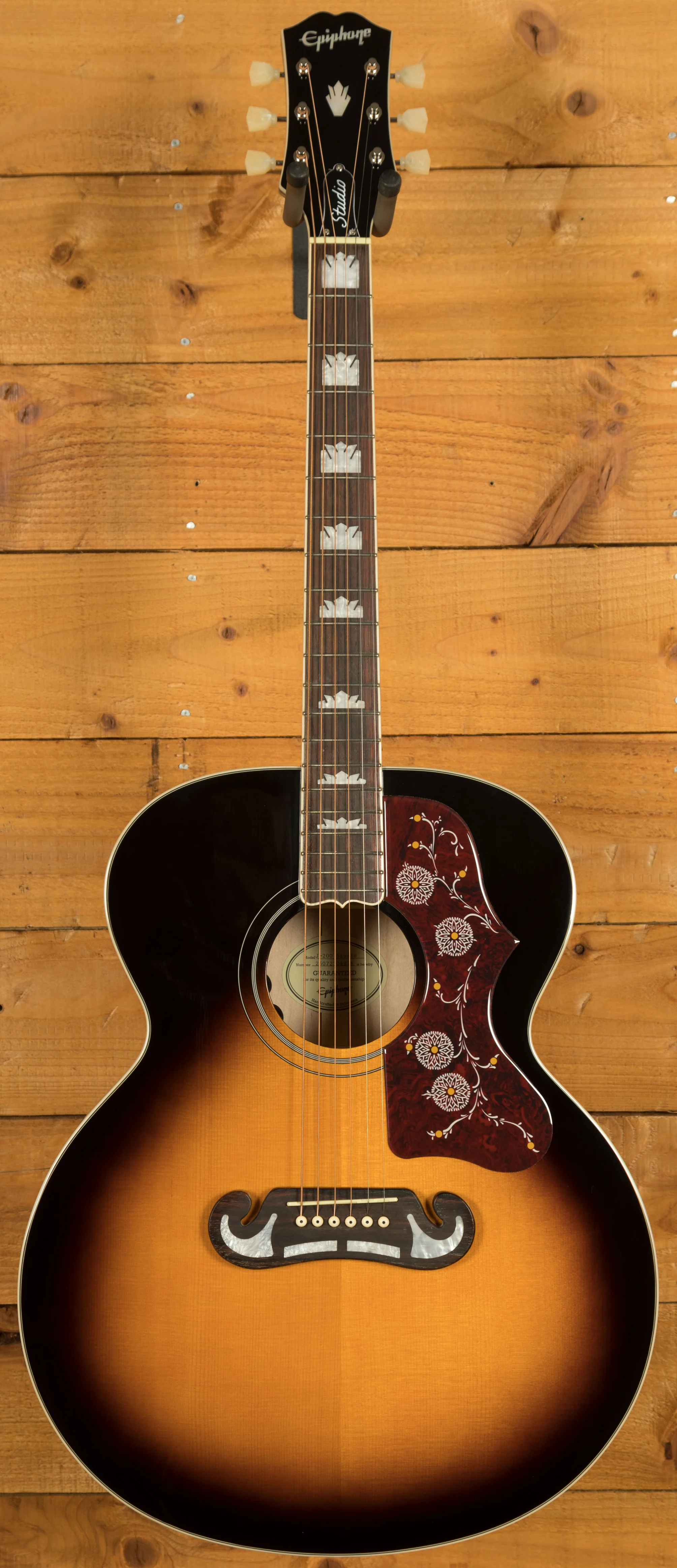 The Epiphone J-200 Studio in Vintage Sunburst brings a much loved Gibson acoustic design to players who want classic style and a bold, clear voice at an accessible price. As part of the new Epiphone Studio Acoustic Collection, it takes inspiration from the original Gibson SJ-200, a super jumbo known for its impressive projection.