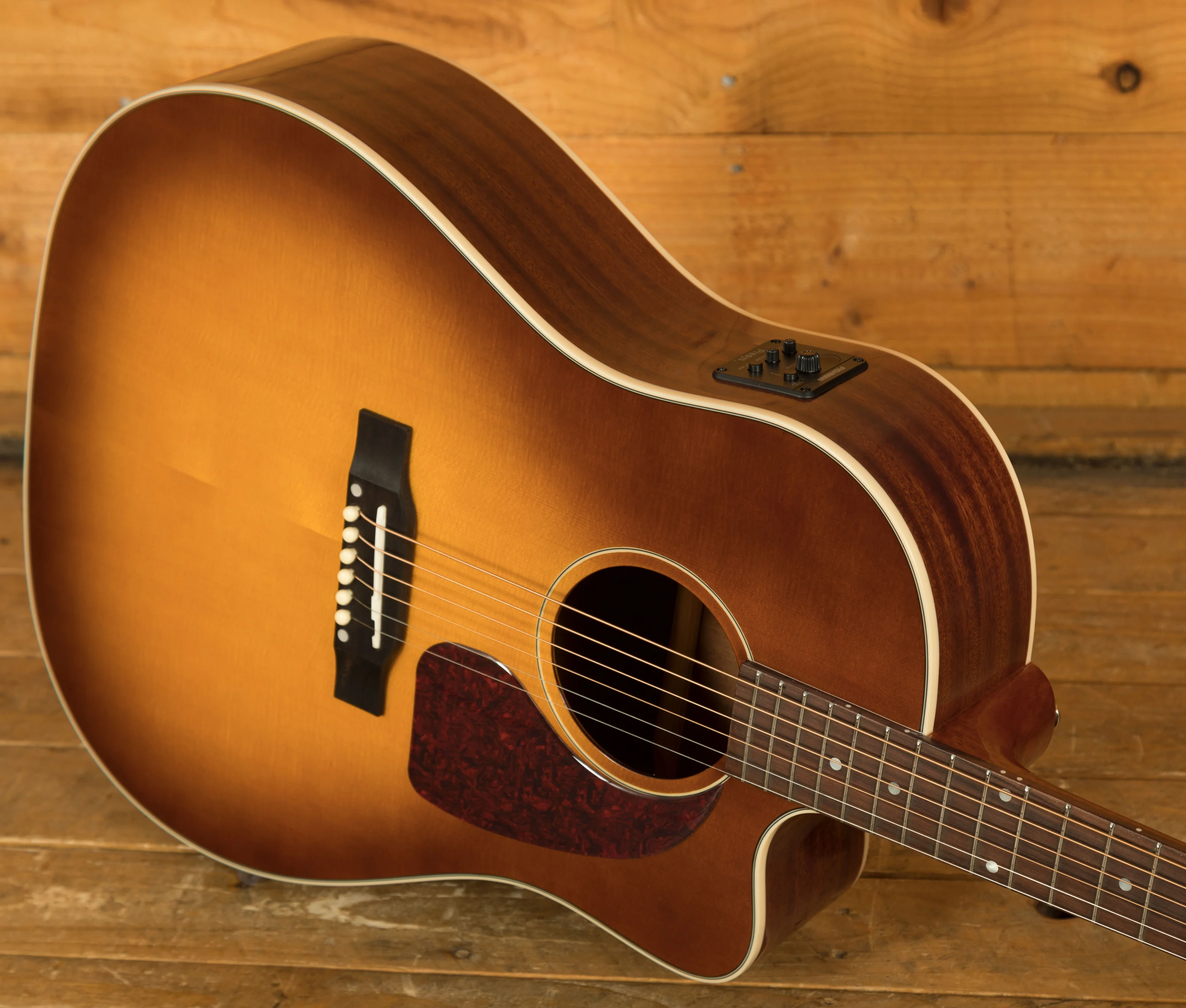 This J-45 EC features an all solid wood construction, which is great to see on an instrument at this price point, it really helps the overall tone and voice of the instrument. It features solid mahogany back & sides, paired up with a solid spruce top, both of which work together to deliver the iconic tone that the J-45 is known for. To make playability even easier, this version of the J-45 features a cutaway allowing for great upper fret access.