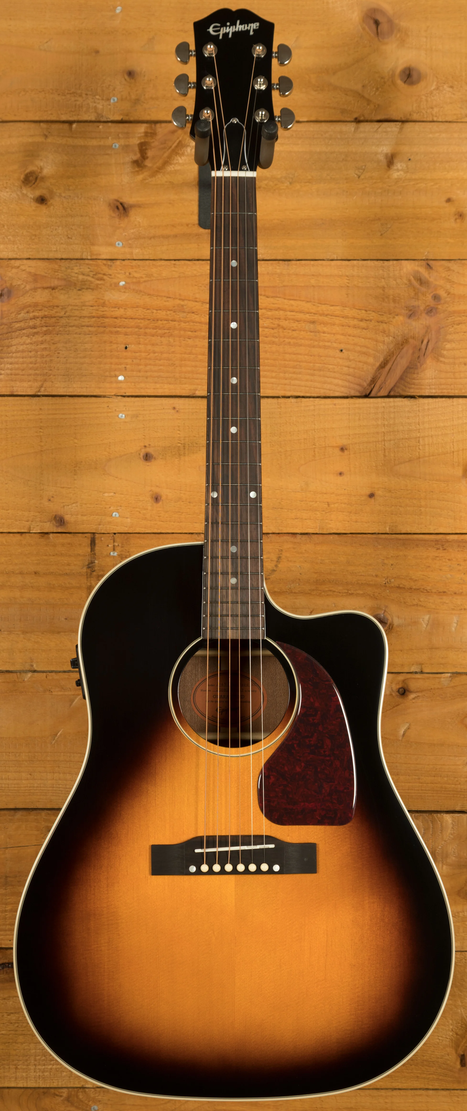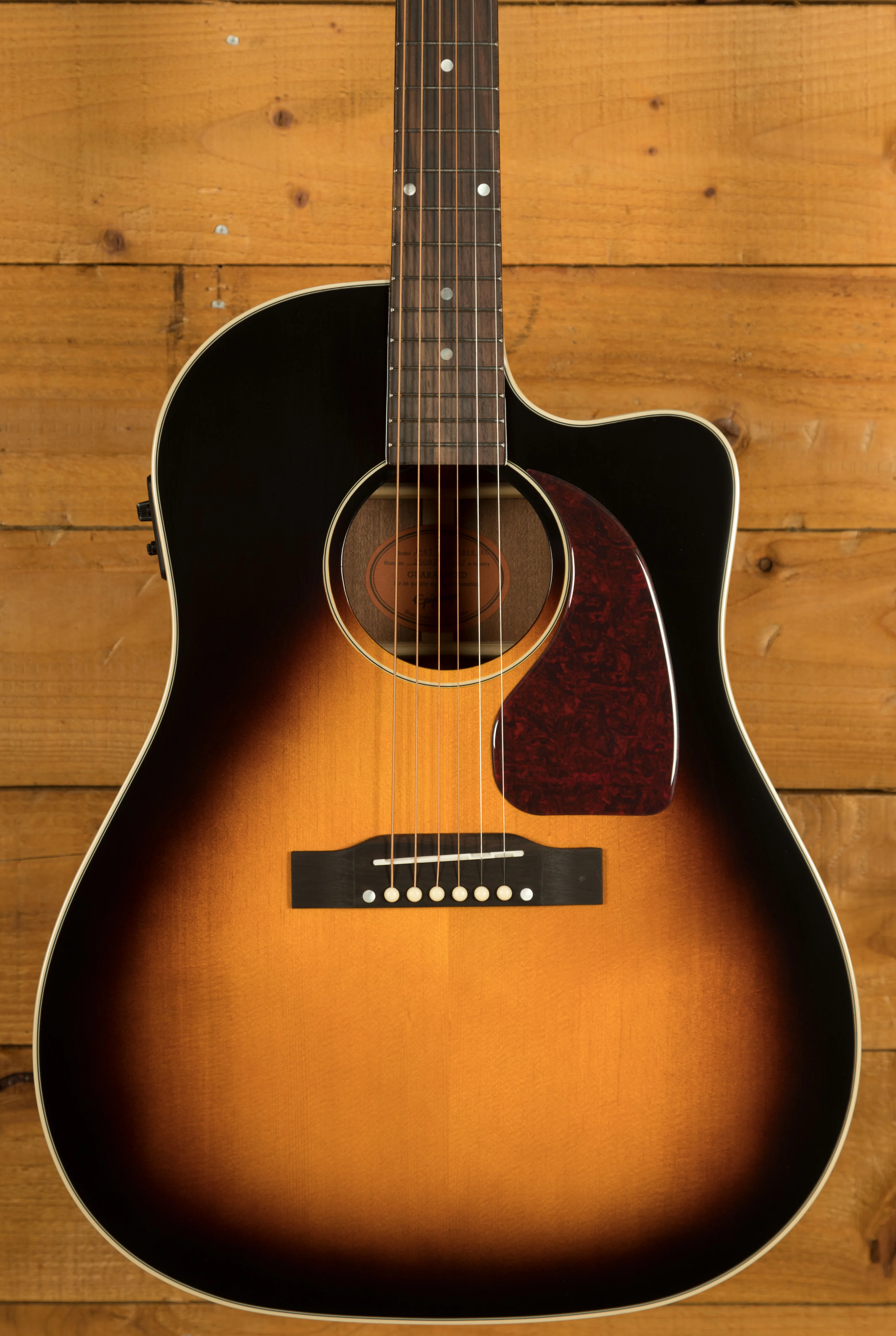 The Epiphone Inspired By Gibson J-45 EC pays tribute to one of Gibson’s most iconic round shouldered dreadnoughts. The J-45 is so popular amongst players that over the years it earned the nickname “the workhouse” because of its extreme versatility and tone! As part of Epiphone’s Inspired by Gibson range, it’s designed with value firmly in mind, delivering classic Gibson-style looks and feel at a far more accessible price. It’s a great way to experience an iconic design without the premium price tag.