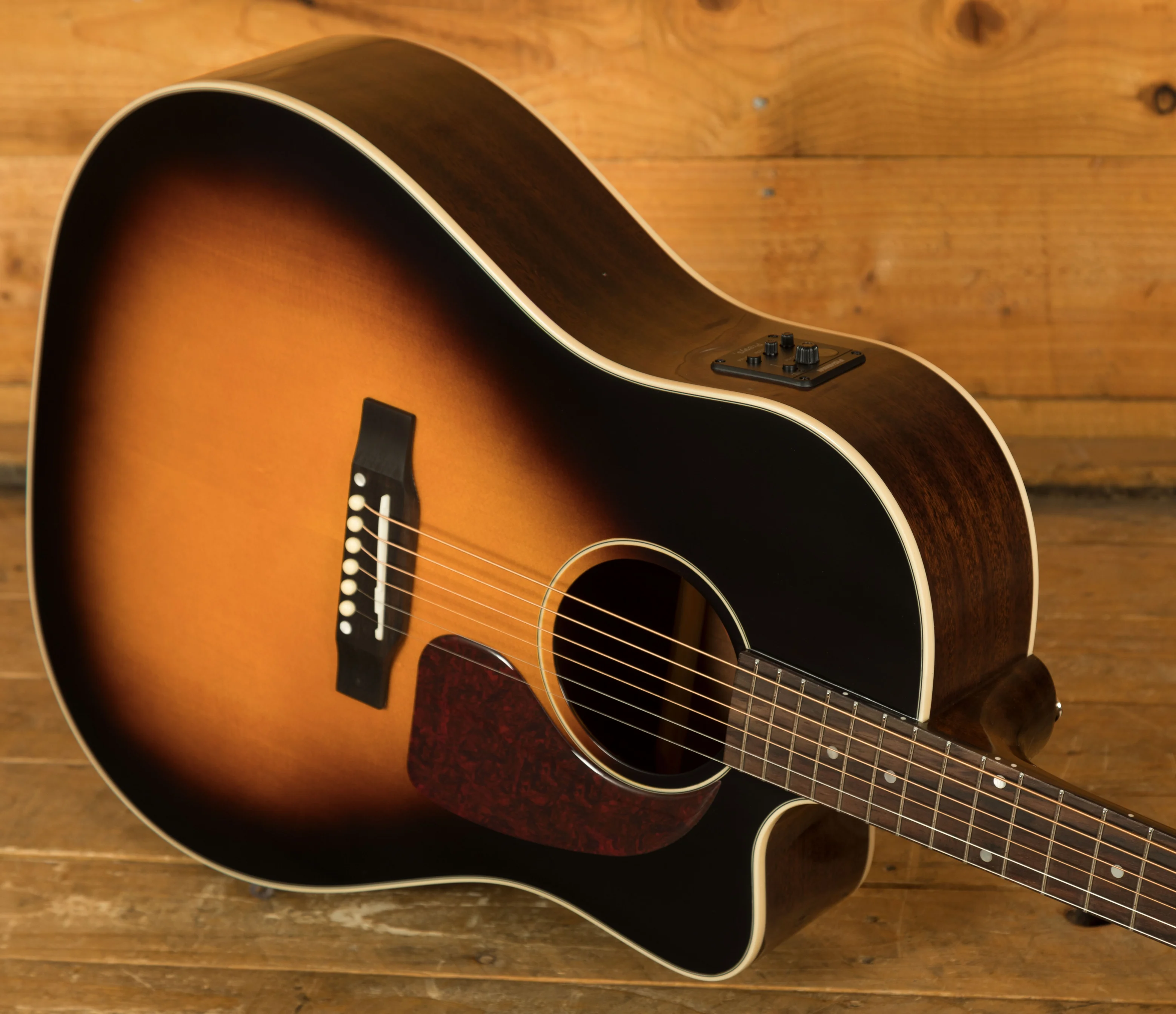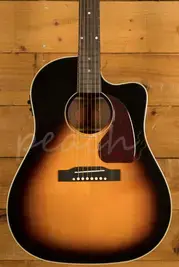 This J-45 EC features an all solid wood construction, which is great to see on an instrument at this price point, it really helps the overall tone and voice of the instrument. It features solid mahogany back & sides, paired up with a solid spruce top, both of which work together to deliver the iconic tone that the J-45 is known for. To make playability even easier, this version of the J-45 features a cutaway allowing for great upper fret access.
