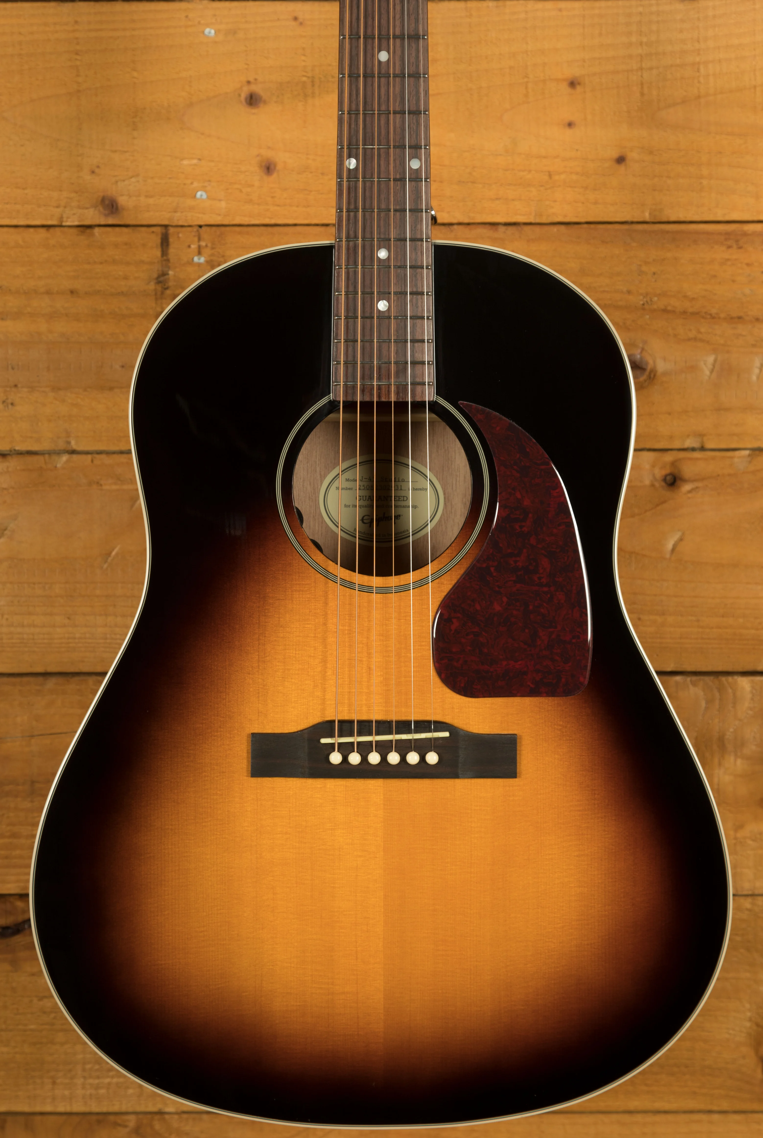 The Epiphone J-45 Studio in Vintage Sunburst brings a much loved Gibson acoustic design to players who want classic style and a bold, clear voice at an accessible price. As part of the new Epiphone Studio Acoustic Collection, it takes inspiration from the original Gibson J-45, a sloped shouldered dreadnought known for its warm, mid-rich tone.