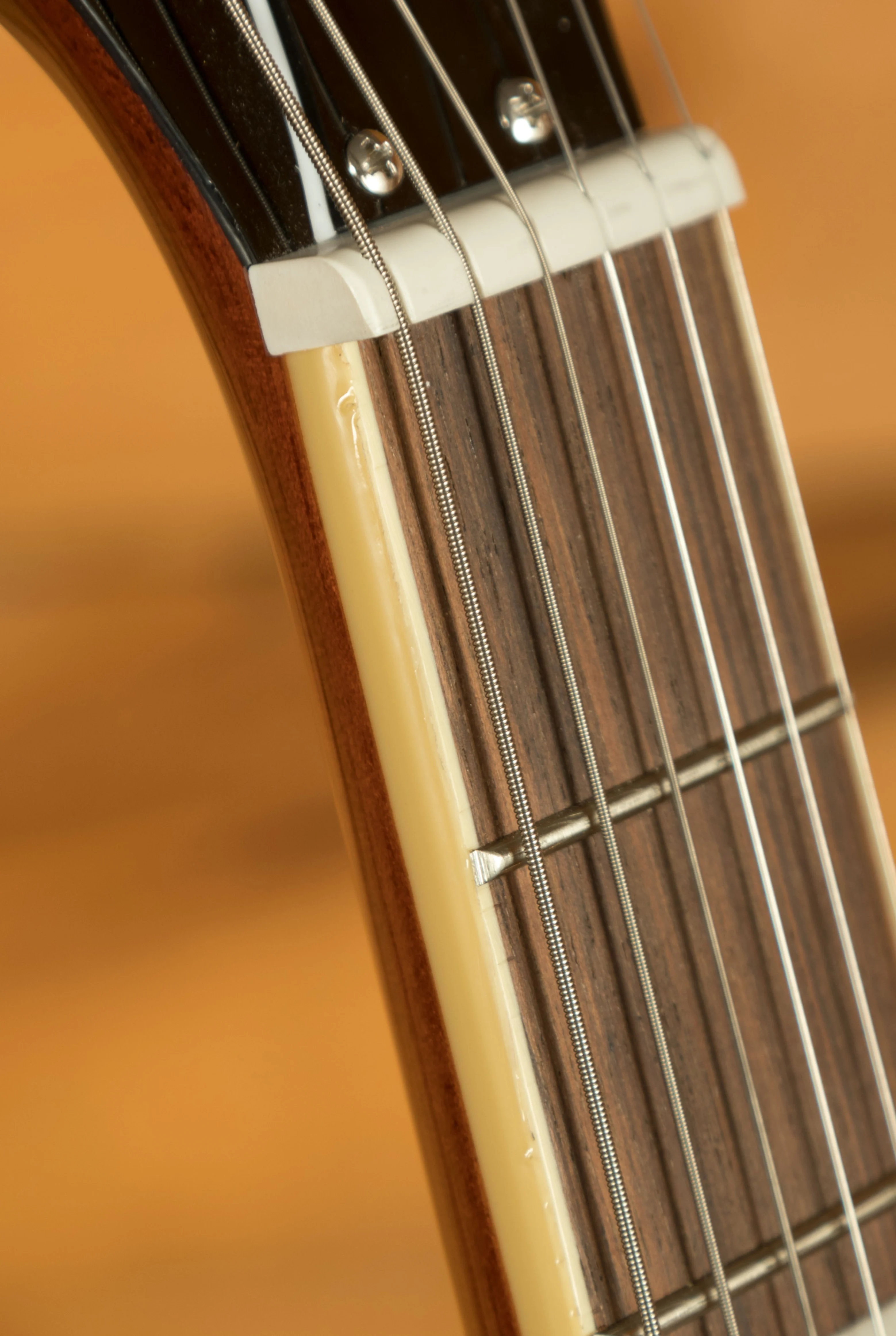 The traditional Mahogany neck really adds to this guitars vintage vibe. It features a custom 59 Rounded C neck shape, which feels great to play and move about on. The Laurel fingerboard features period correct Trapezoid inlays, alongside a 43mm nut width, 22 frets and a 24.75 scale length.