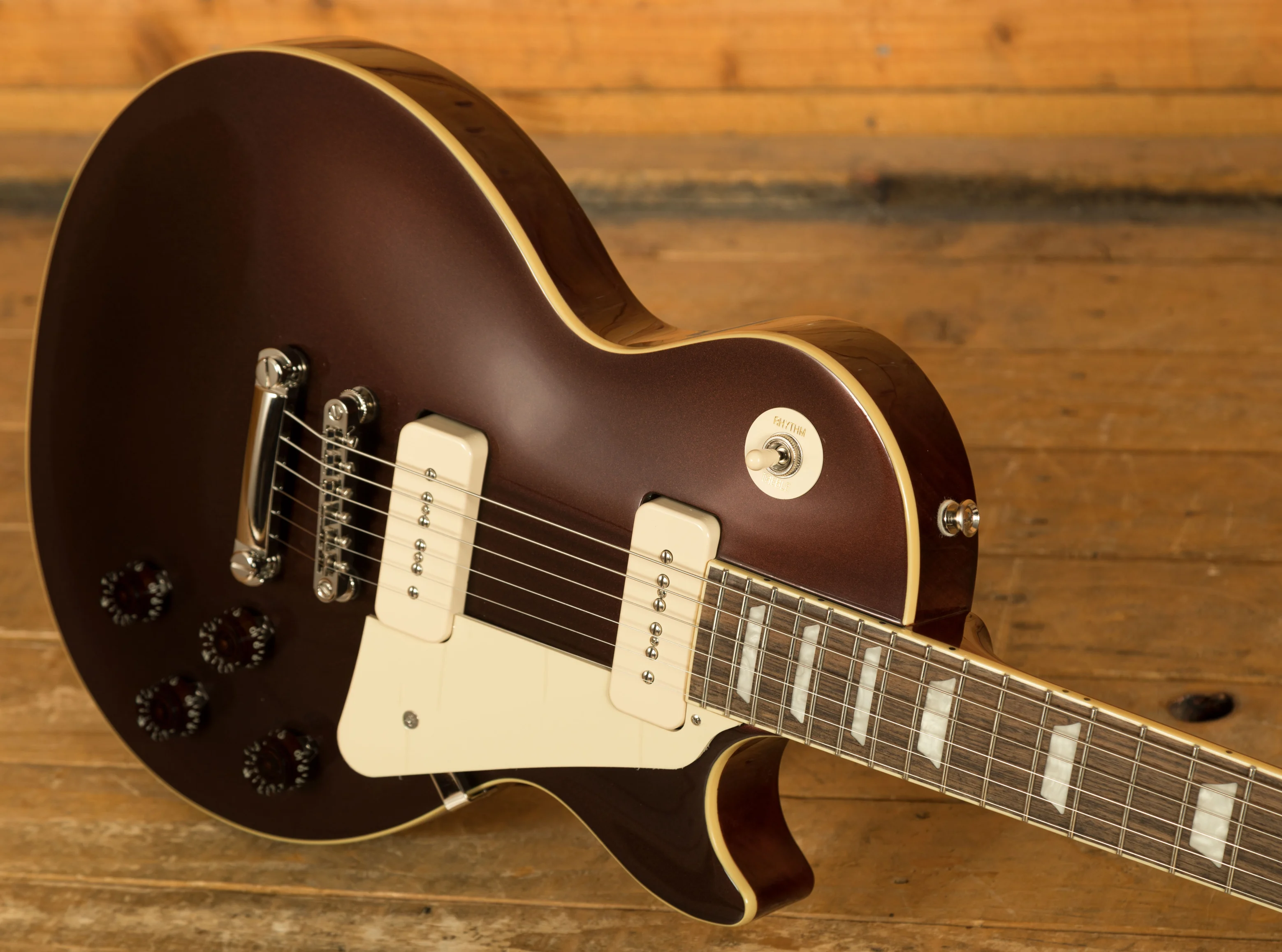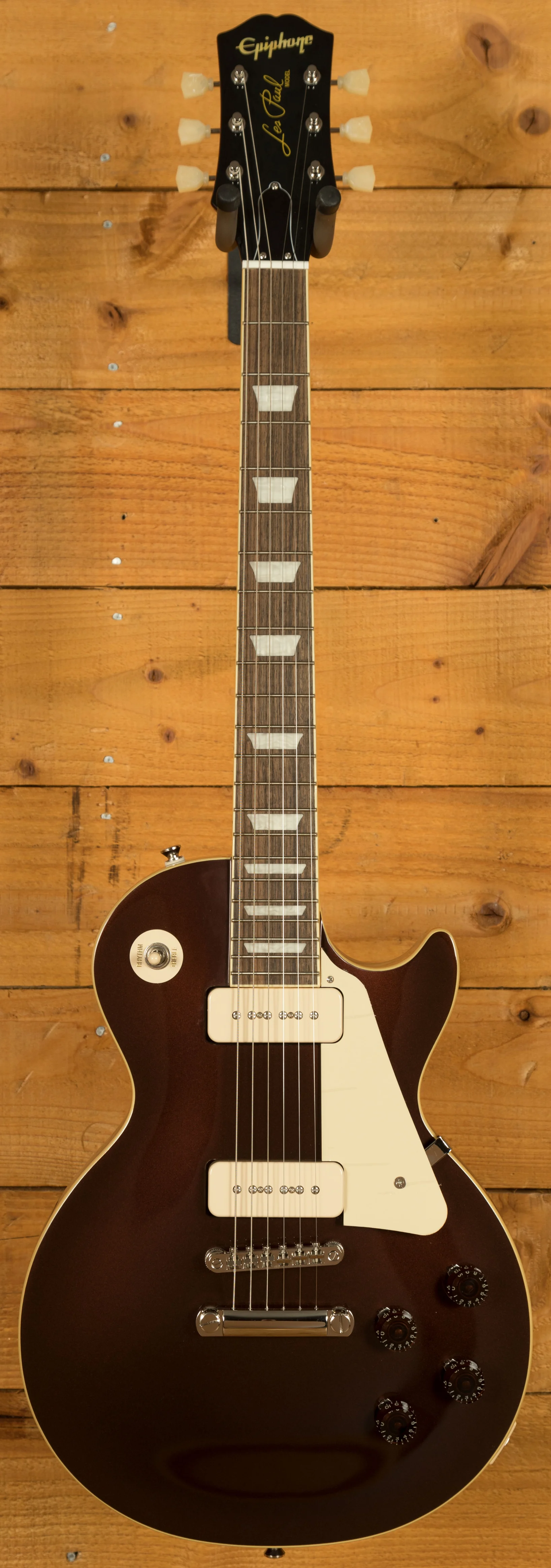 With a pair of Epiphone P-90 PRO Soapbar pickups, this Les Paul nails that early 50s Les Paul sound. Theyre super dynamic and respond beautifully to every nuance of your playing, this is the perfect pickup set for a guitar of this nature. Complete with a LockTone Tune-O-Matic bridge and a set of Epiphone Deluxe tuners.