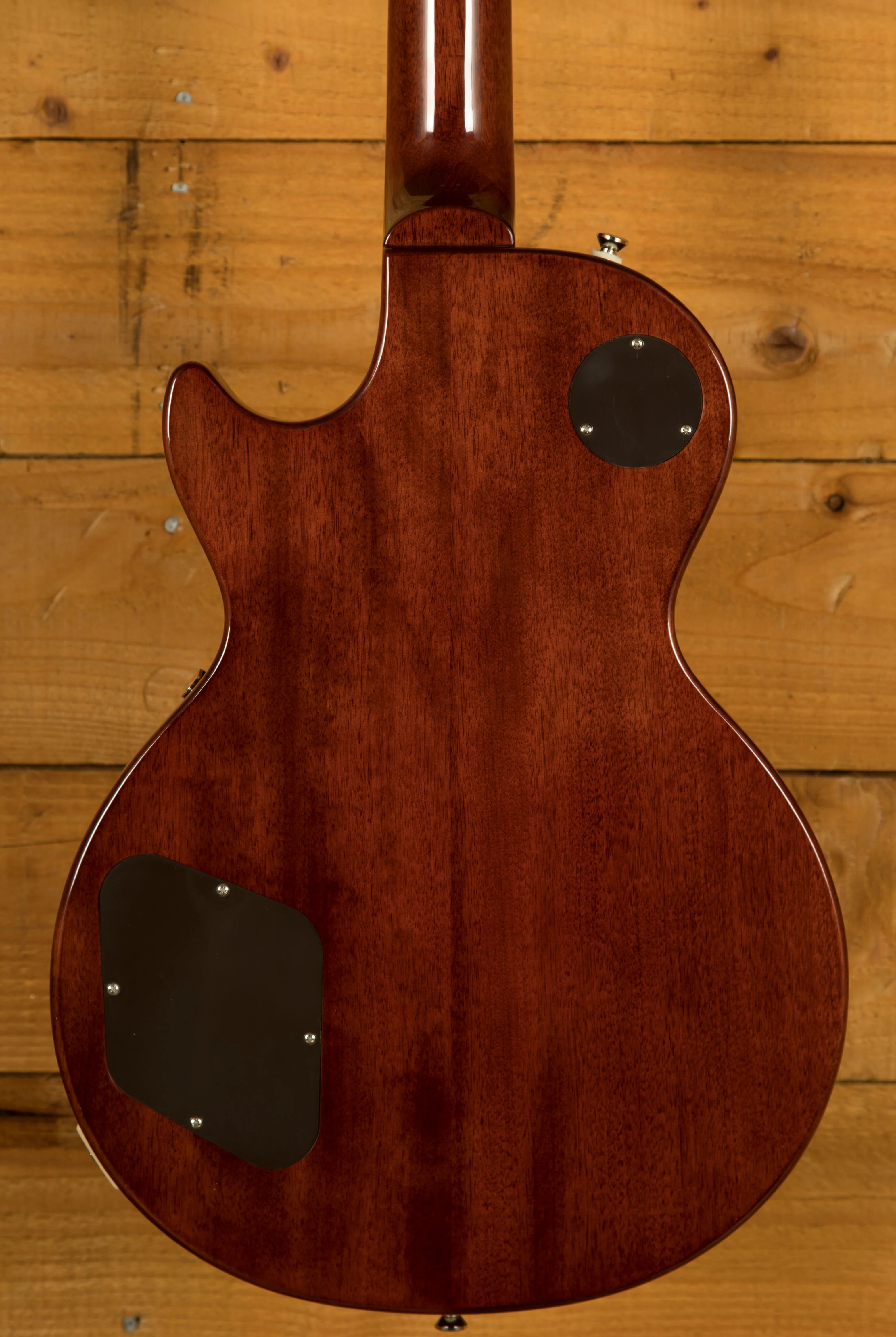 The Epiphone Joe Bonamassa 1955 Les Paul Standard brings the magic of this truly legendary instrument to the masses! It features a resonant Mahogany body topped with a period correct Plain Grain Maple top/cap. Complete with a rare Copper Iridescent finish it beautifully replicates the unique visuals of Joes rare instrument. From a distance, the finish appears dark brown, but as you move closer, the gold flak becomes much more apparent.