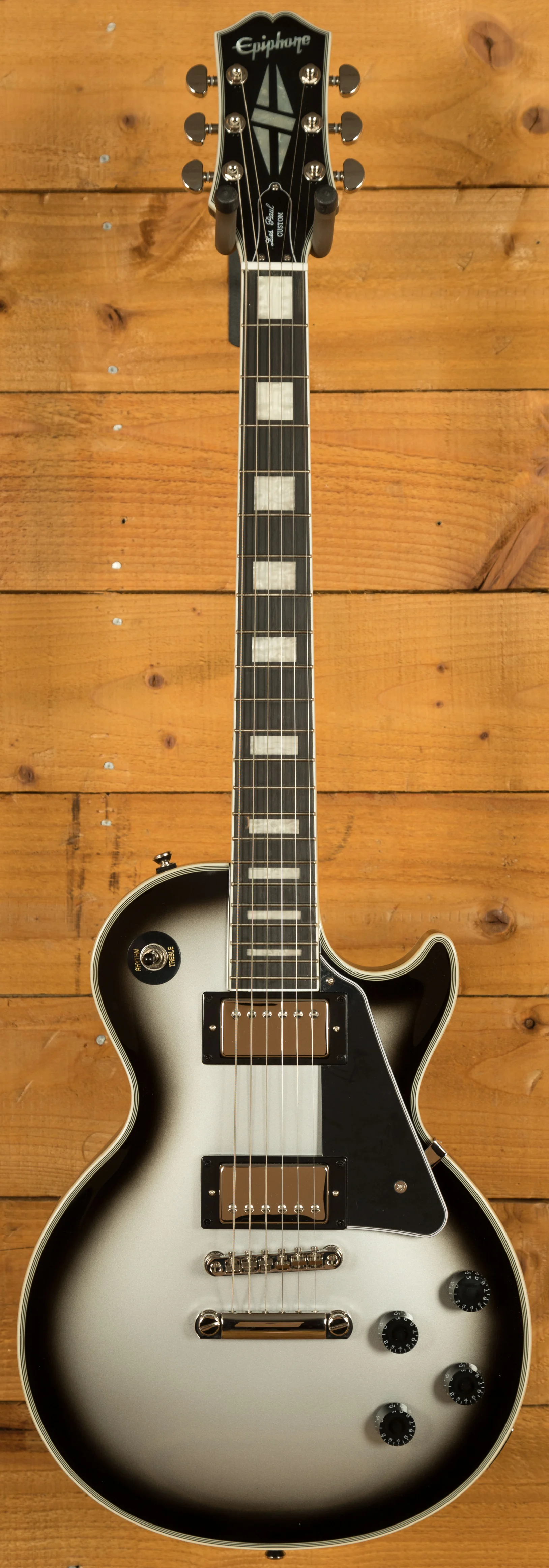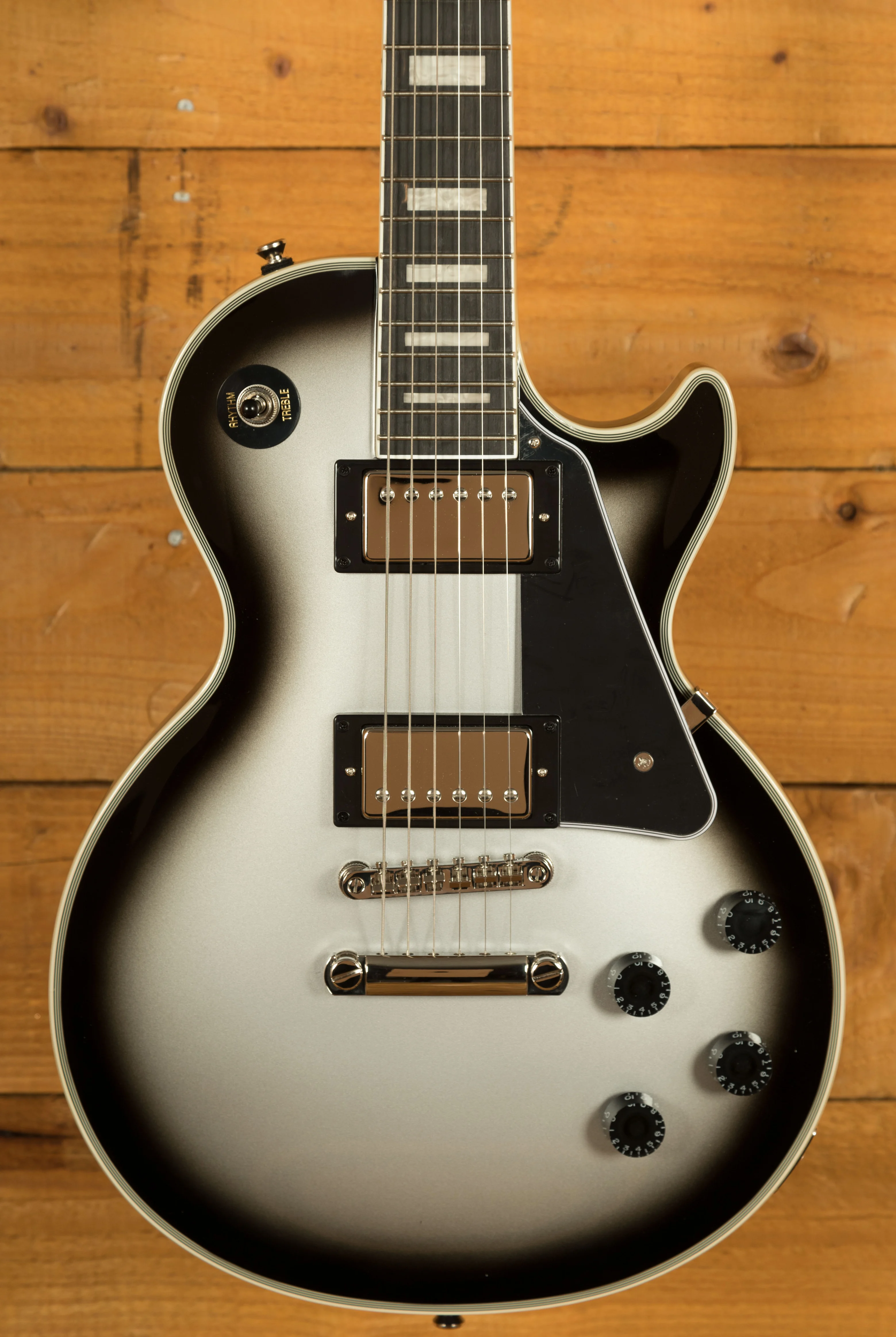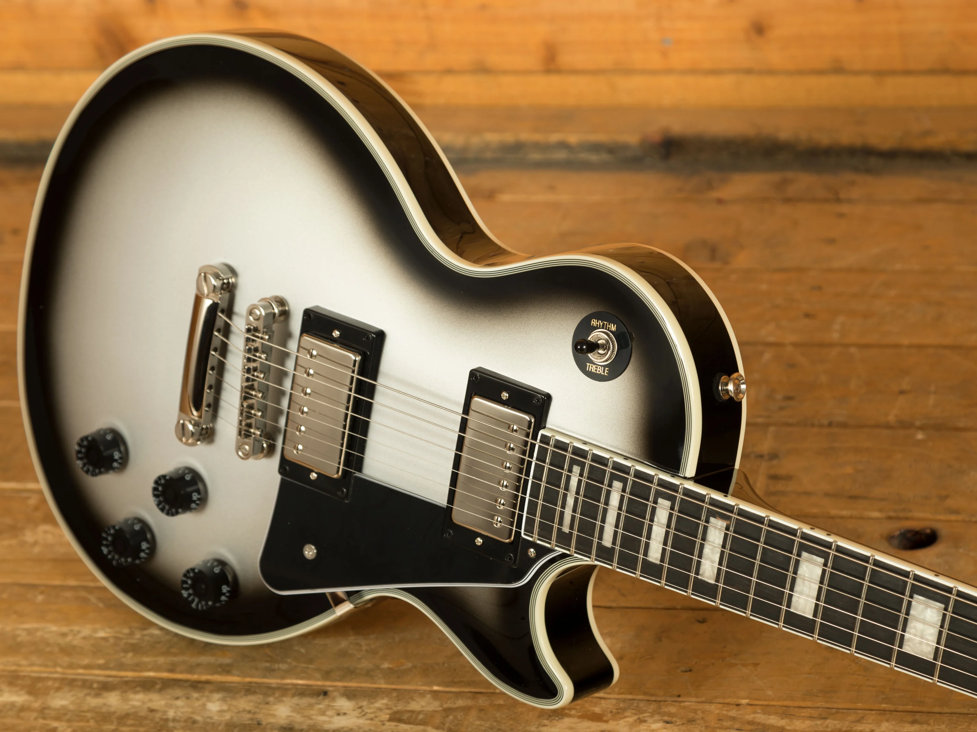 The body of this Les Paul Custom is constructed from solid mahogany, a tonewood known for its warm, resonant sound, providing a solid foundation for rich, sustained tones. It also features a Maple top, which helps to add a touch of brightness to the tone. Silverburst is one of the most popular and highly requested Gibson colours, it’s great to see it appear on a guitar at this price point.